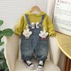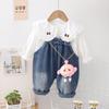Conjunto de dos piezas para niña 2023 de peto para niños estilo occidental ropa infantil otoño bebé peto de mezclilla traje de pantalones otoño