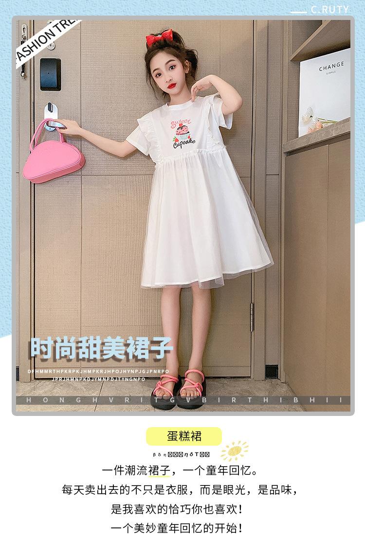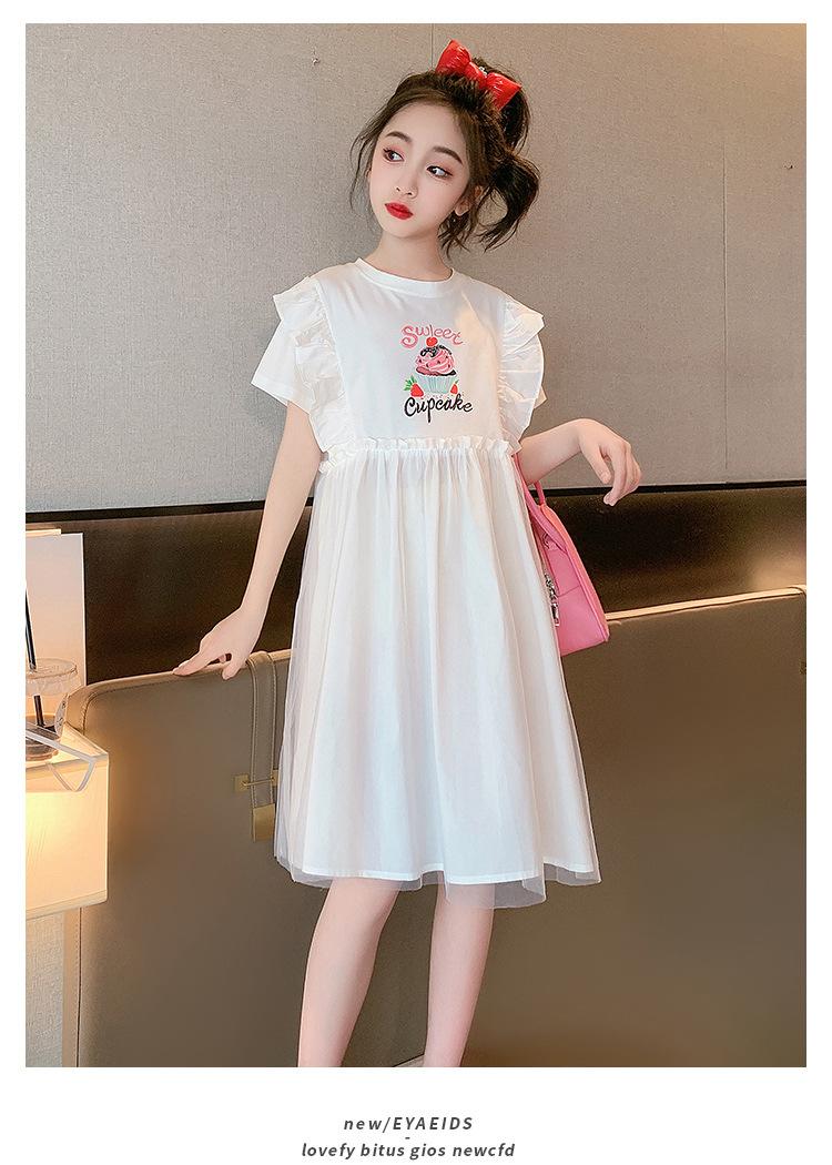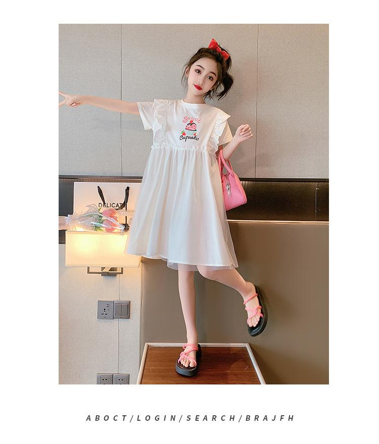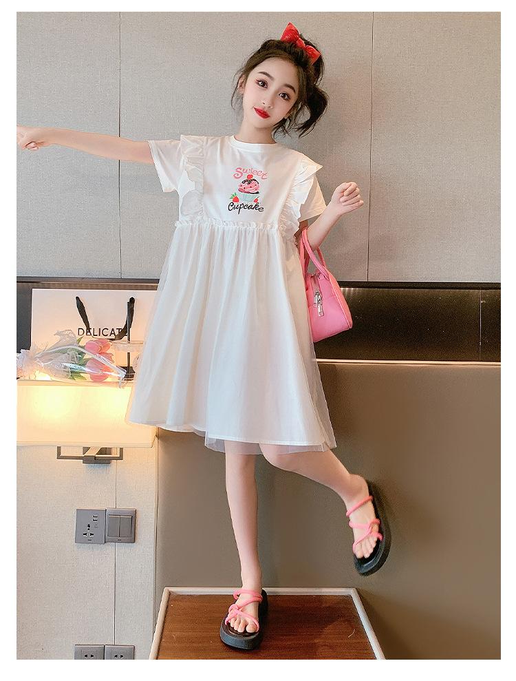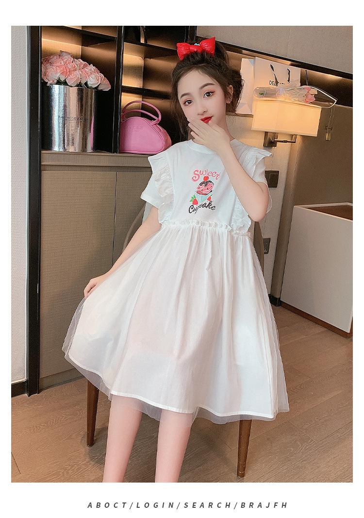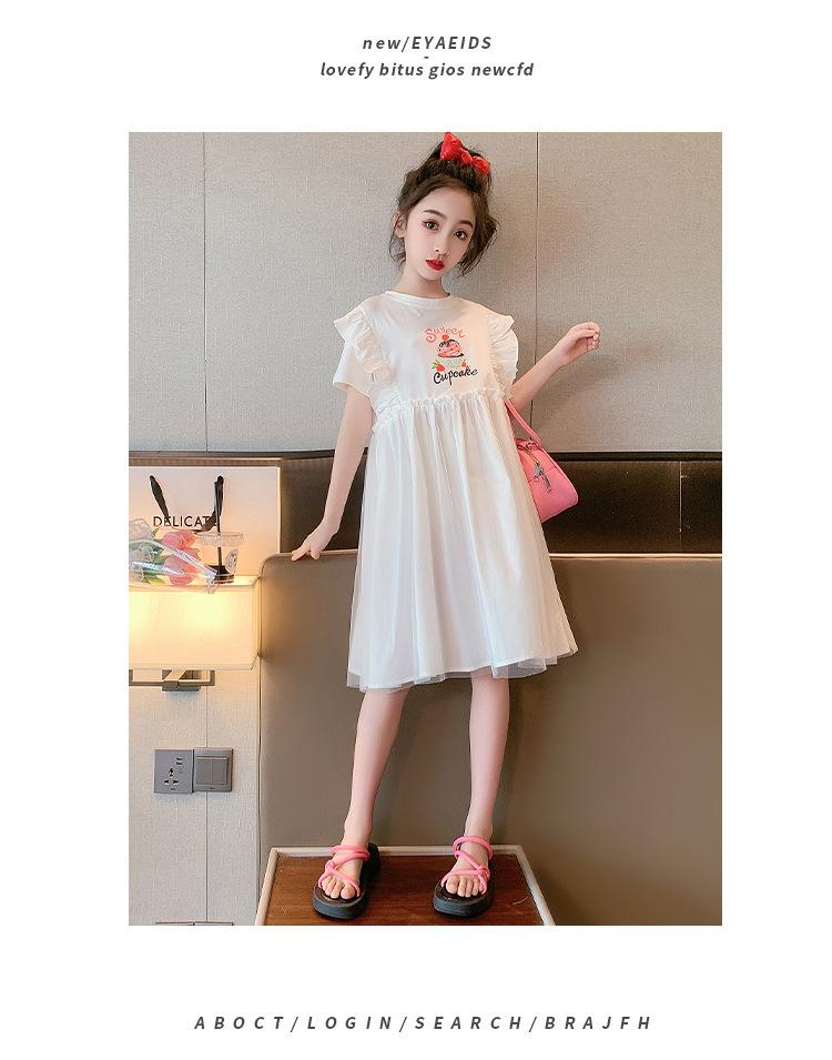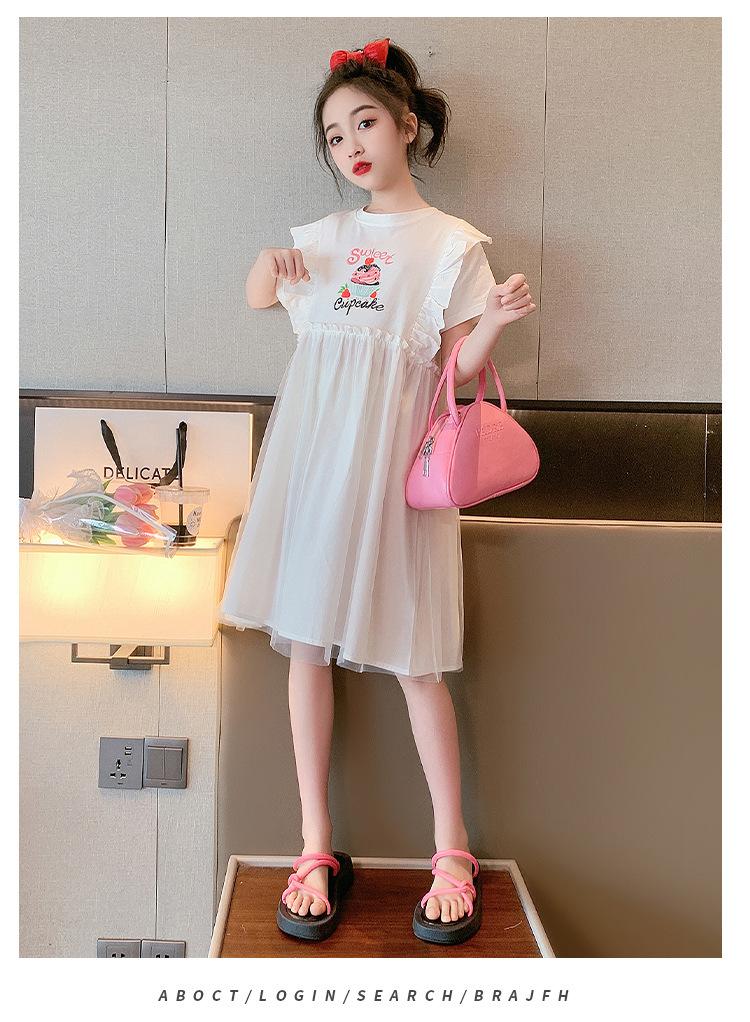Vestido de verano de manga corta para niña, elegante y bonito, de princesa, con costuras de malla.