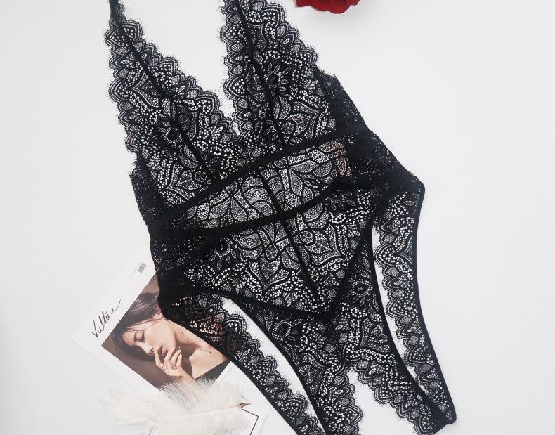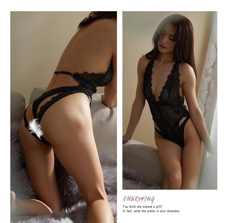 Mono de verano transpirable con entrepierna abierta, encaje, cuello colgante, espalda descubierta, lencería sexy para mujer 71084