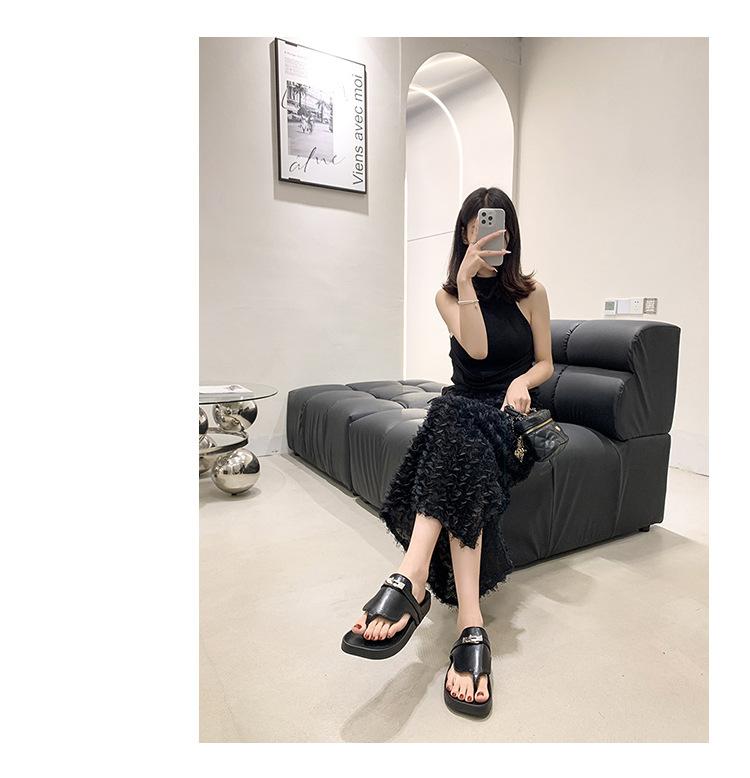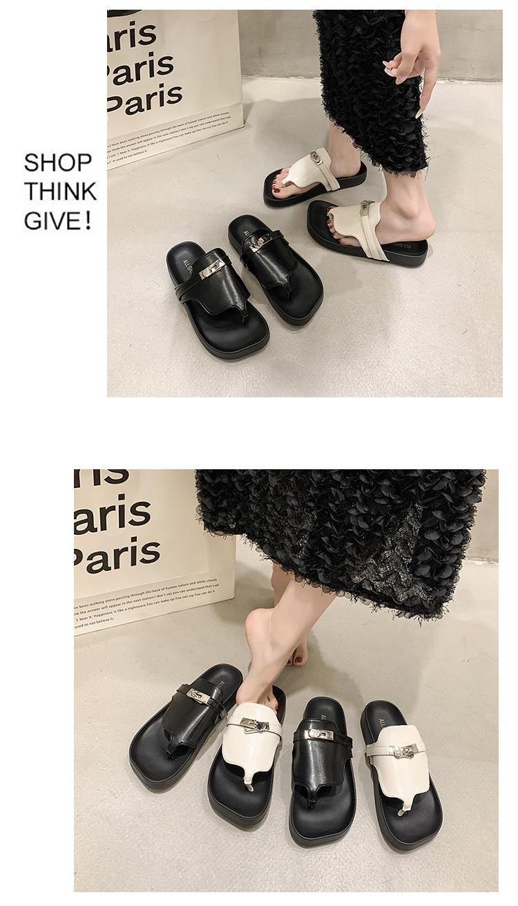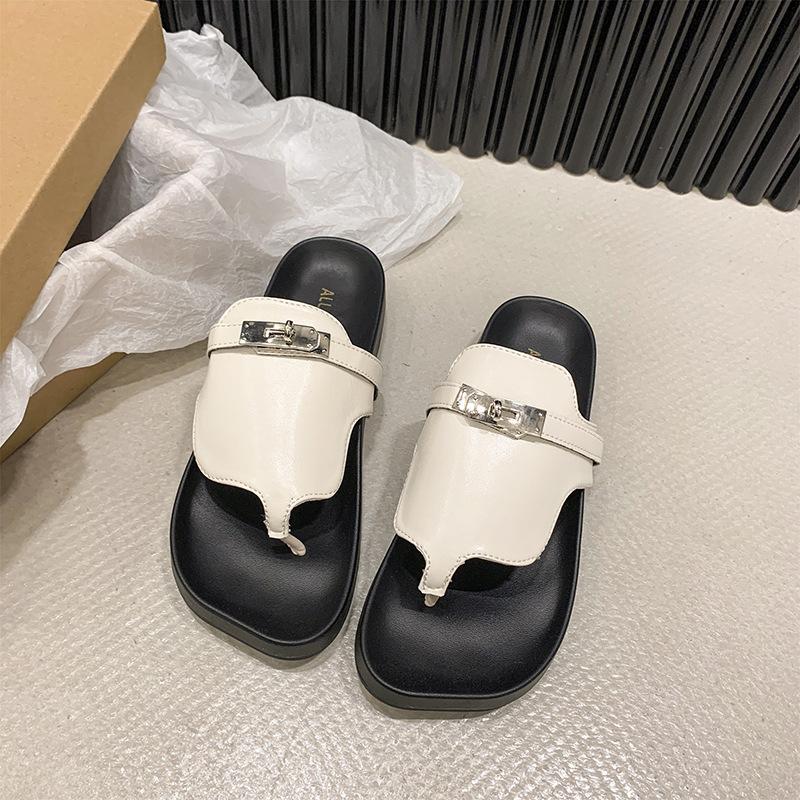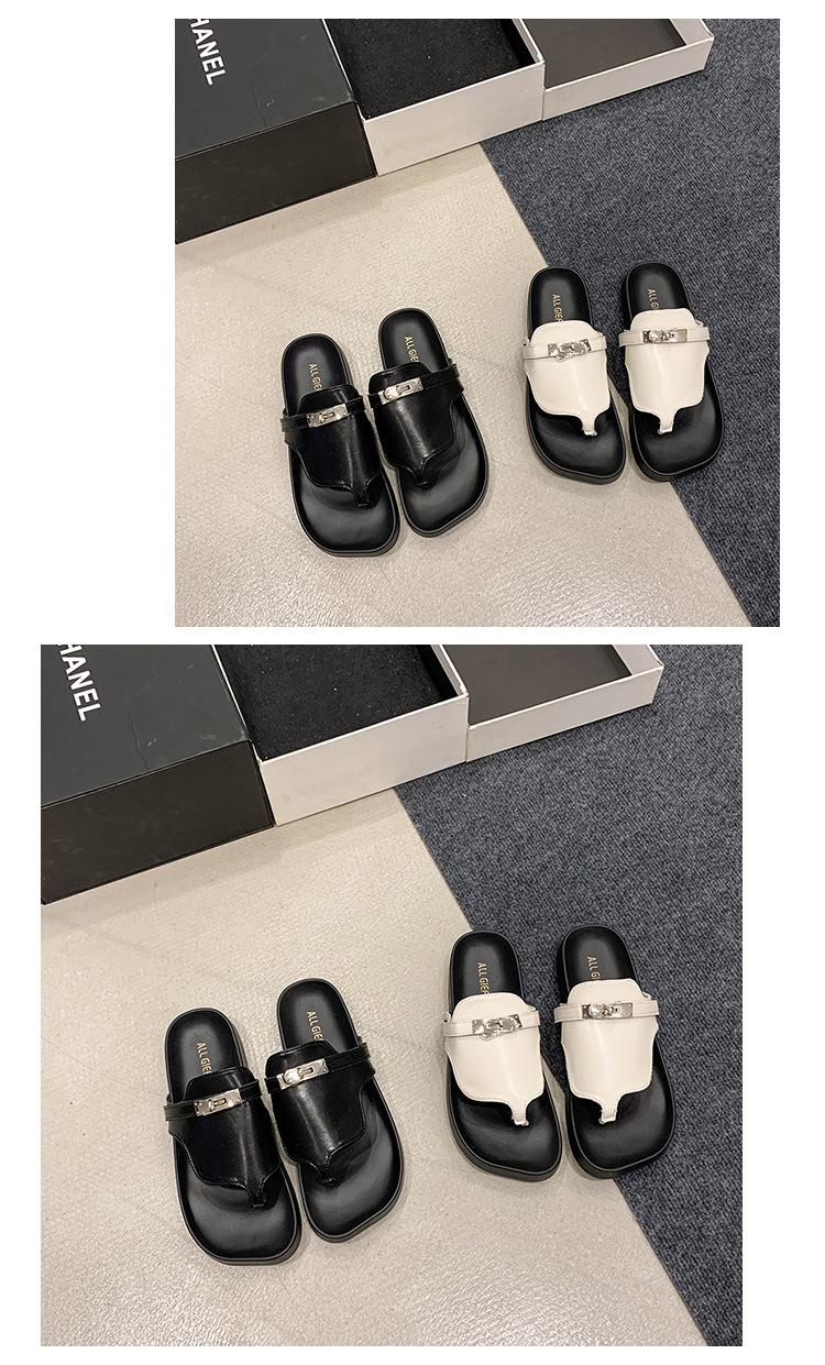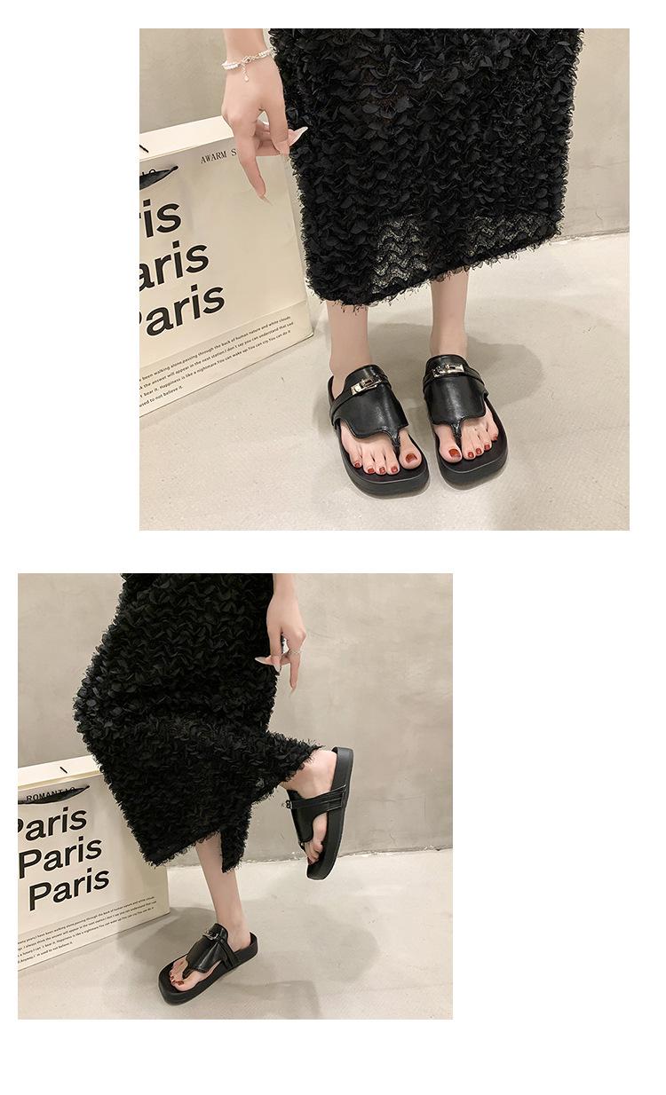 Novedad 2024 Chanclas de Tanga Retro Estilo Francés con Hebilla Plateada Pantuflas Gruesas Sandalias de Verano Casuales para Mujer
