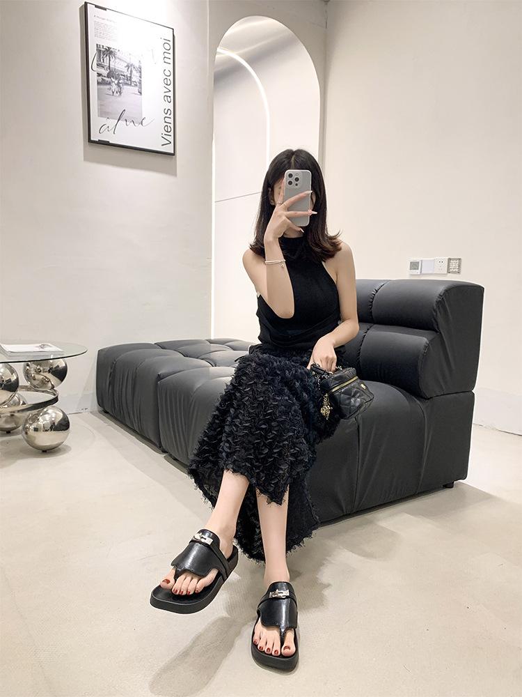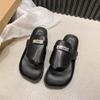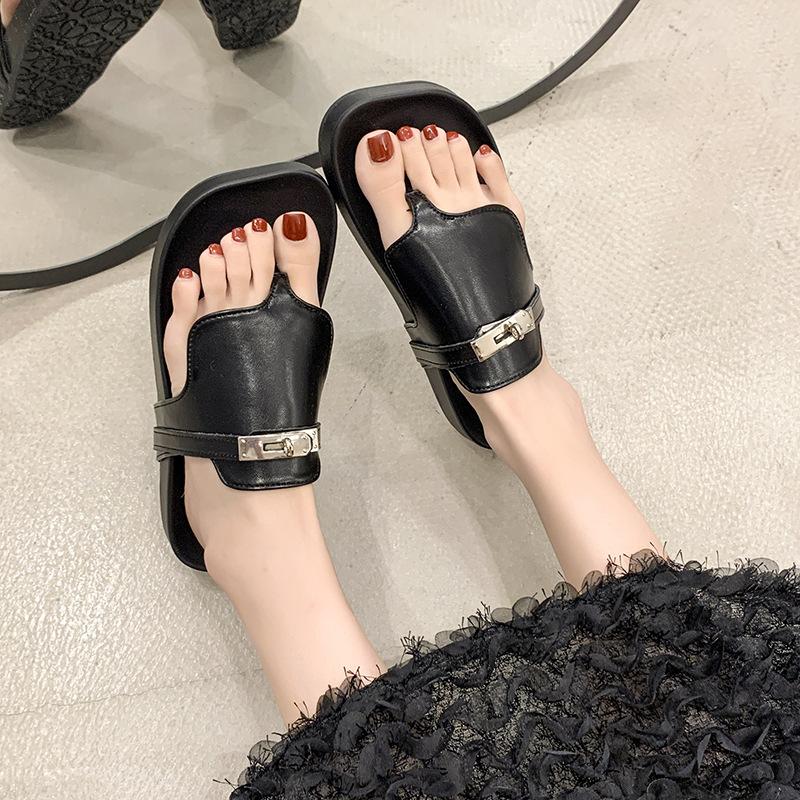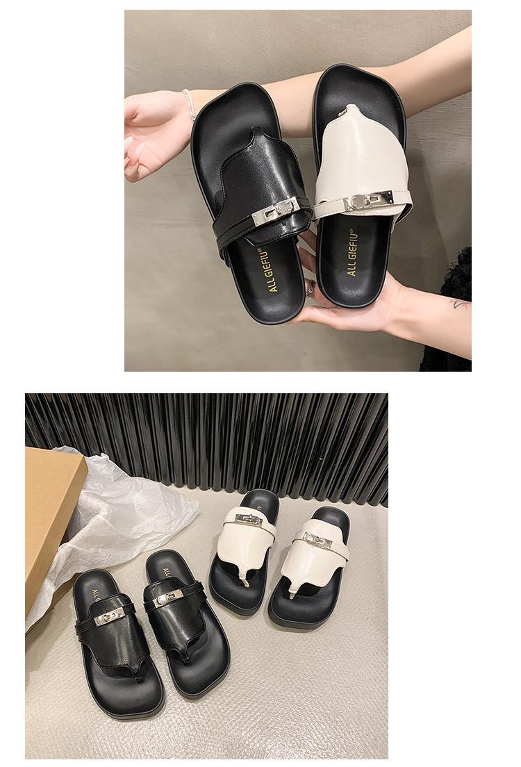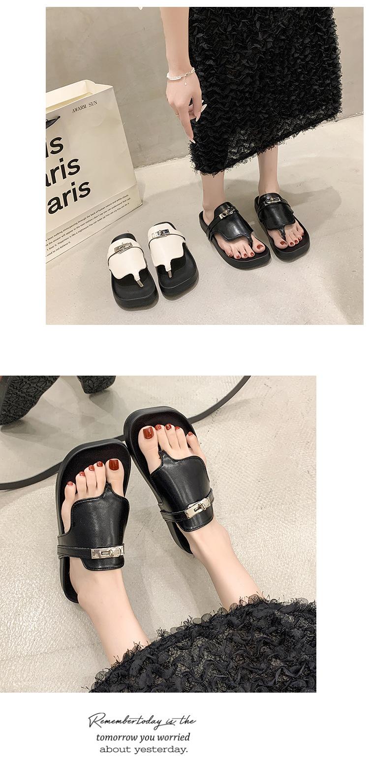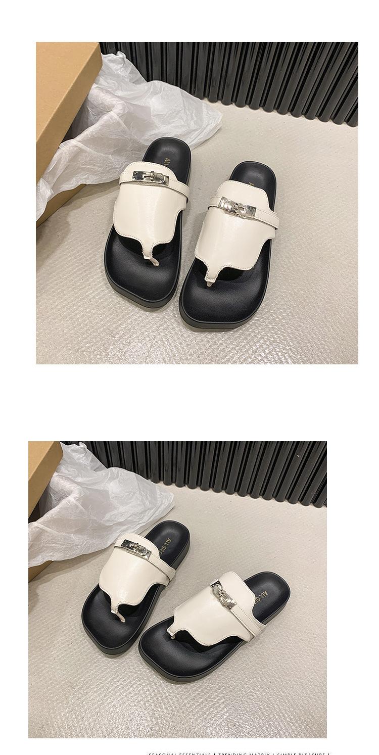 Novedad 2024 Chanclas de Tanga Retro Estilo Francés con Hebilla Plateada Pantuflas Gruesas Sandalias de Verano Casuales para Mujer