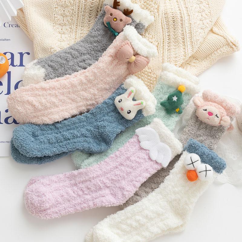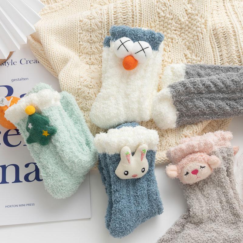 Compra Calcetines de lana coral antilana para mujer, divertidos y creativos, con dibujos animados, bonitos y dulces, para el suelo, gruesos para el hogar. al por mayor en Joom.pro