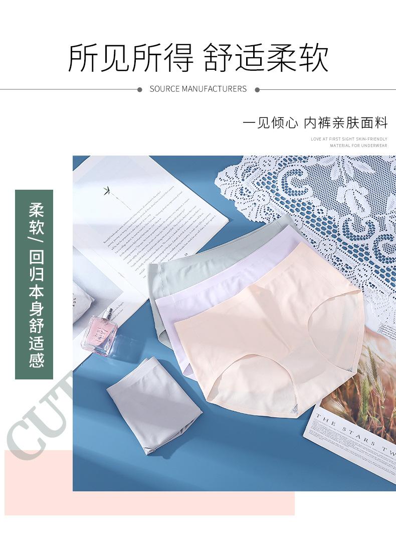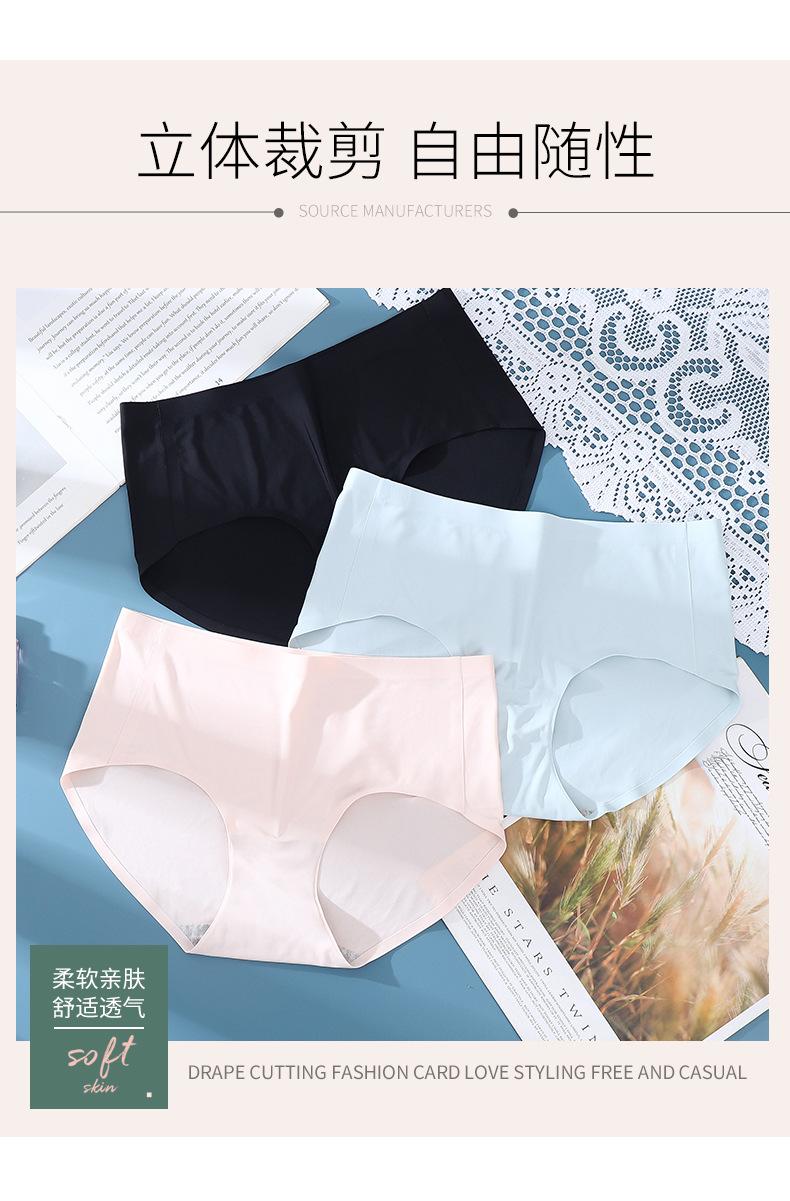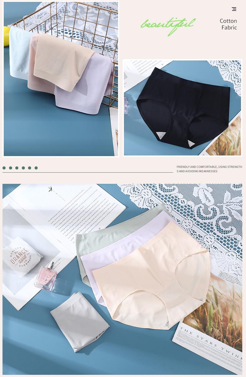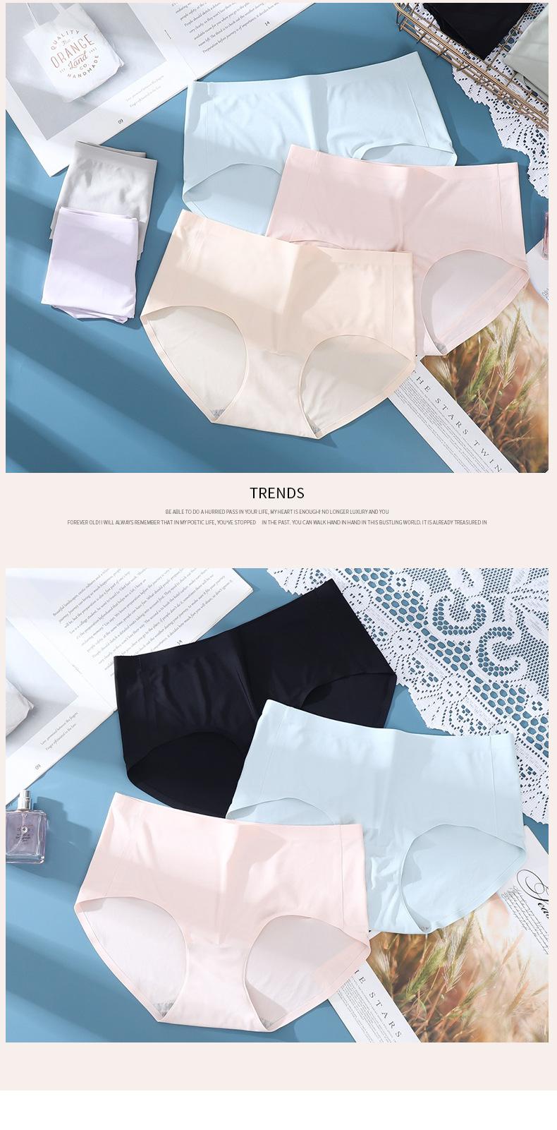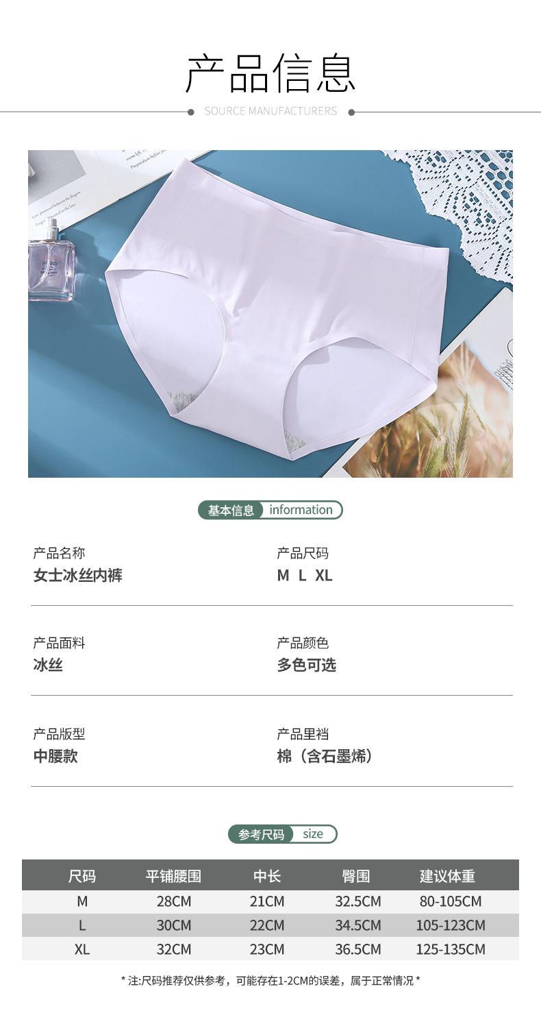Braguitas de Verano Transpirables Sensación Desnuda de Seda de Hielo, Color Sólido Cintura Media Antibacterianas Graphene Sin Costuras Delgadas con Entrepierna de Algodón Puro