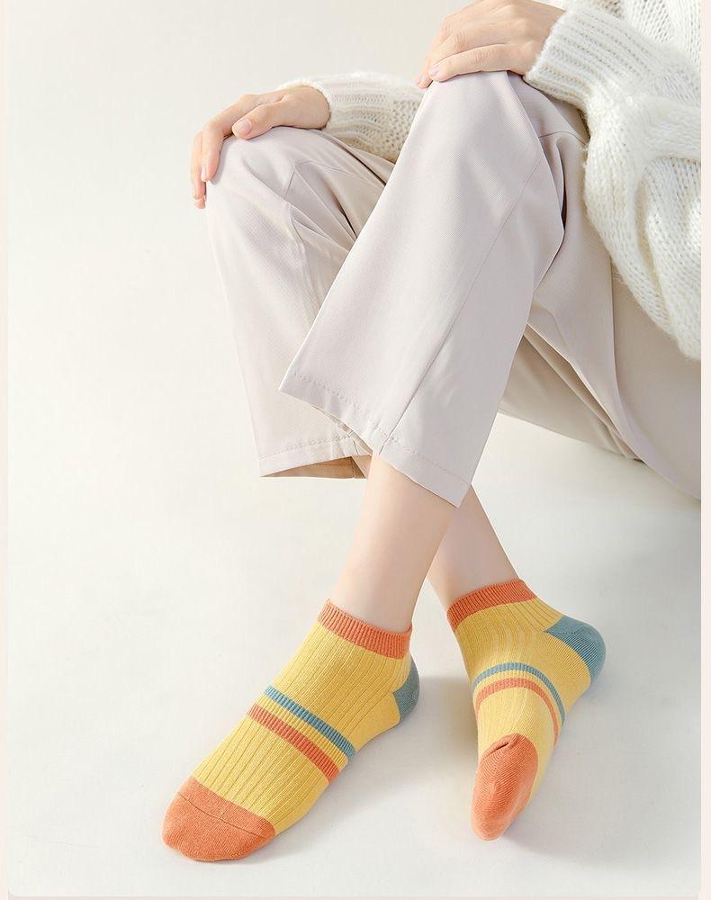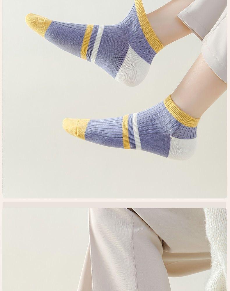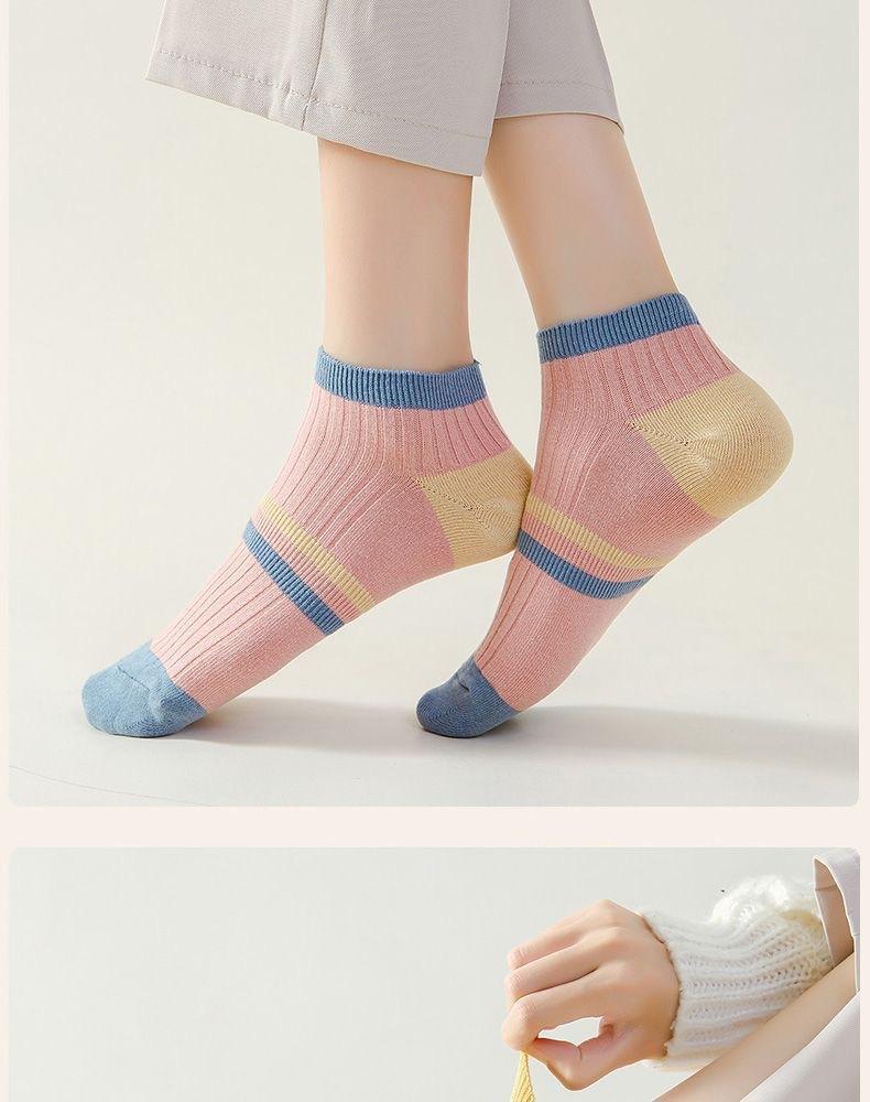 Calcetines Calcetines Cortos de Mujer Primavera y Verano Delgados Transpirables Absorbentes de Sudor Boca Baja Sin Caer Combinación de Colores Combinable Calcetines Cortos a Rayas de Barco