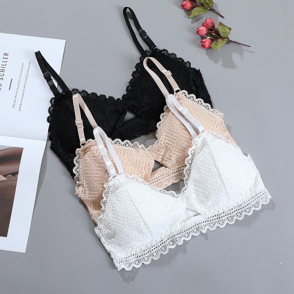 Ropa interior hueca sin costuras estilo francés para mujer, realce para busto pequeño, colección de senos, sexy, anti-flacidez, sujetador inalámbrico para mujer 2836