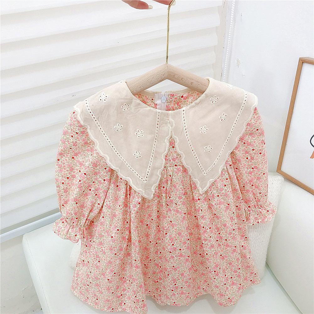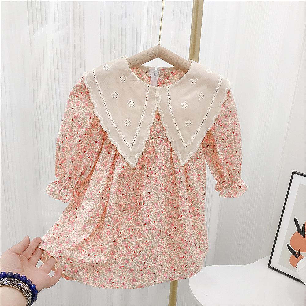 Compra Vestido elegante de manga larga con estampado floral para niña, estilo occidental, estilo coreano, con encaje y cuello de princesa para comercio exterior. al por mayor en Joom.pro