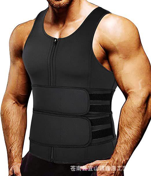 Chaleco de entrenamiento de cintura con cremallera y doble cinturón para hombre, ropa moldeadora abdominal, reductor de cintura.