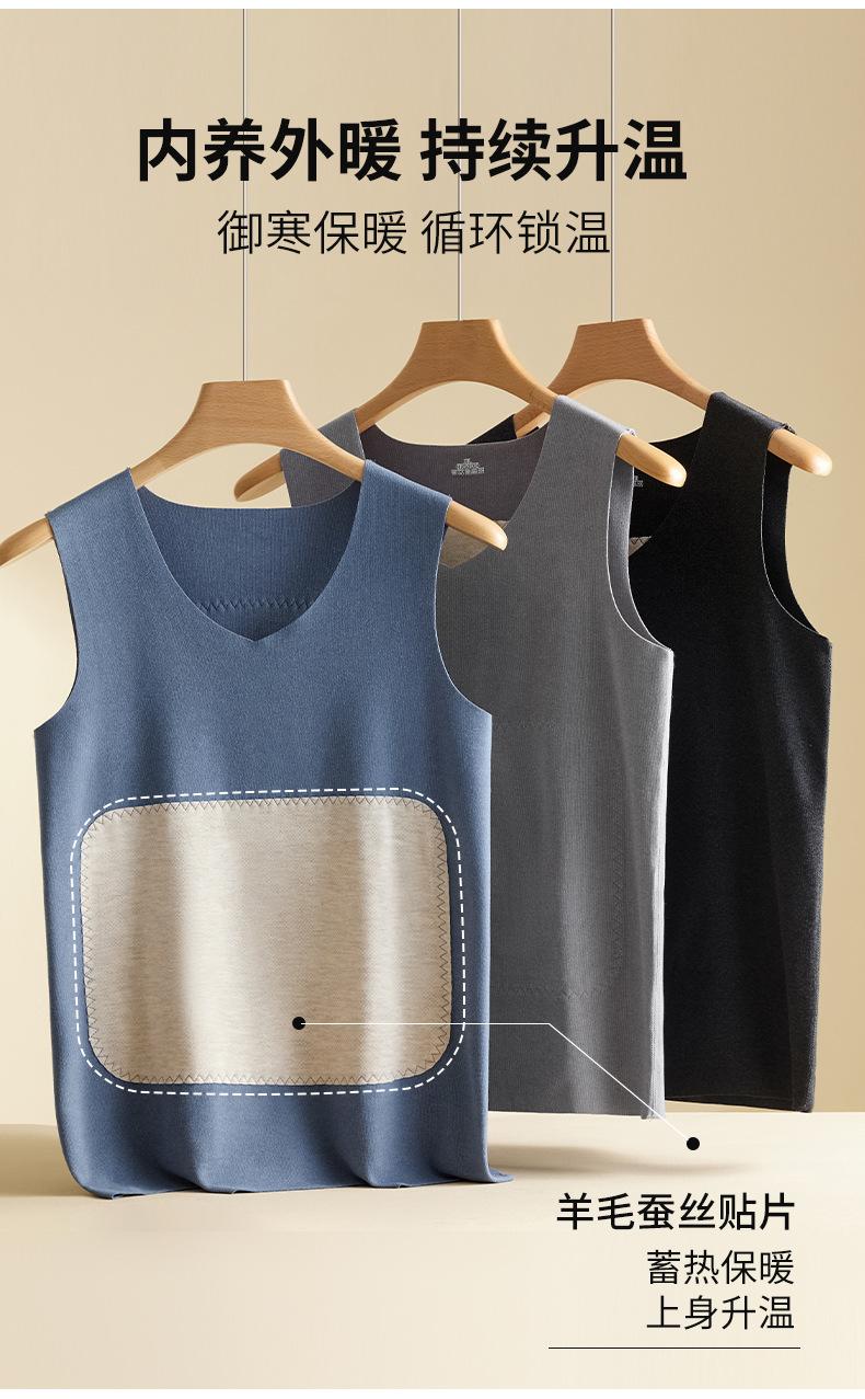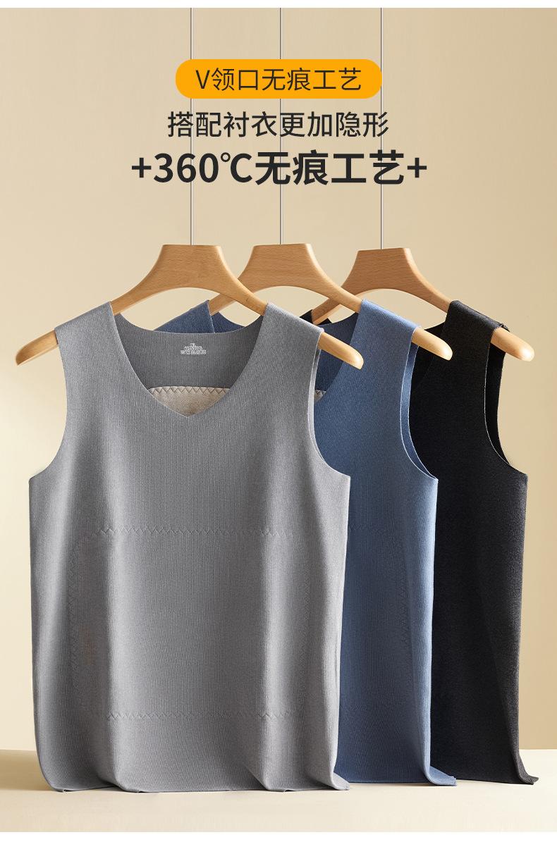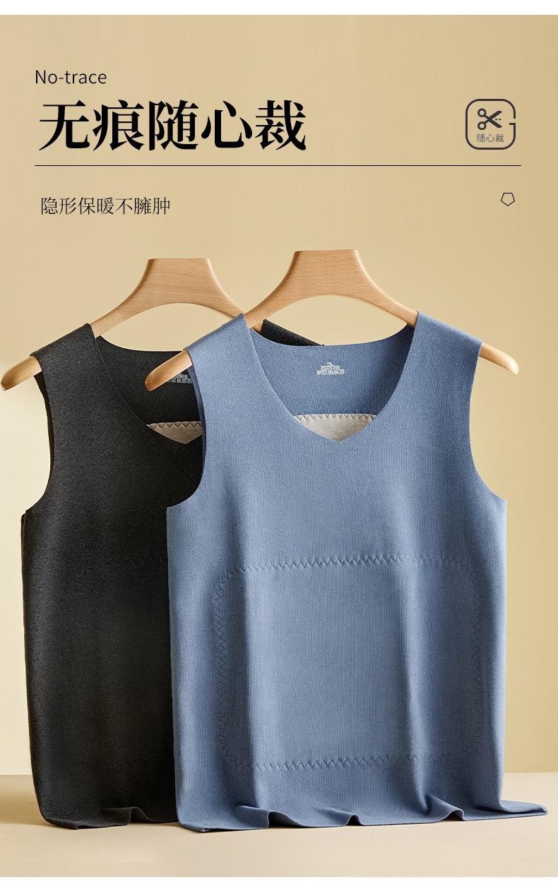 Chaleco térmico para hombre, forro polar de seda de cachemira, cuello redondo grueso, terciopelo, cintura sin costuras, ropa interior térmica, parte superior inferior