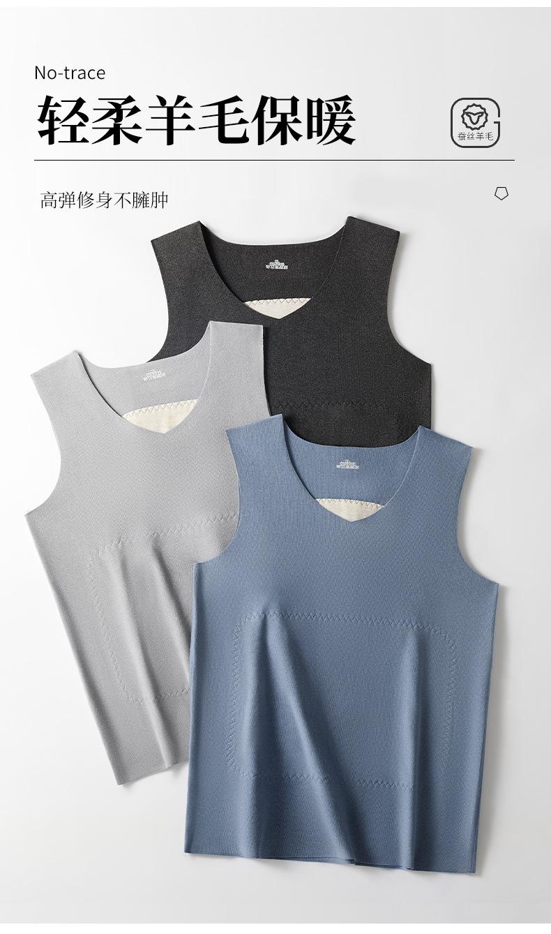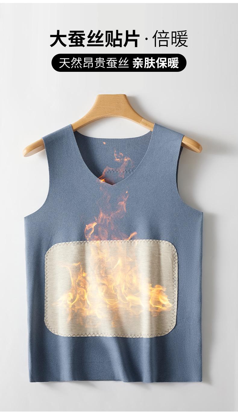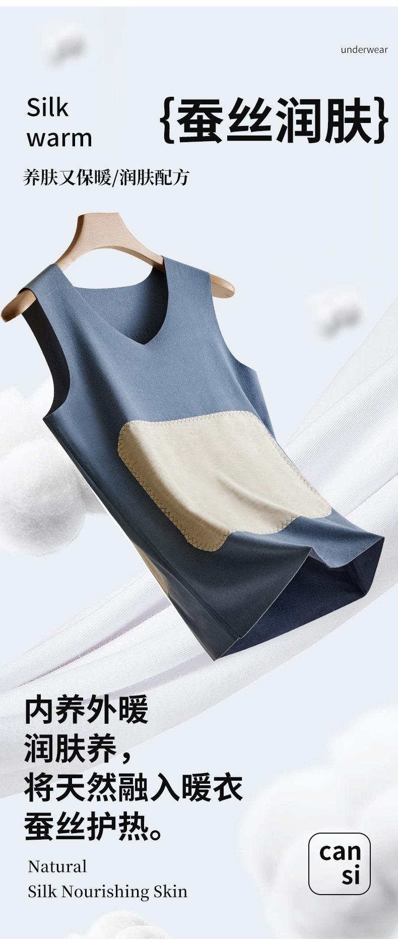 Chaleco térmico para hombre, forro polar de seda de cachemira, cuello redondo grueso, terciopelo, cintura sin costuras, ropa interior térmica, parte superior inferior