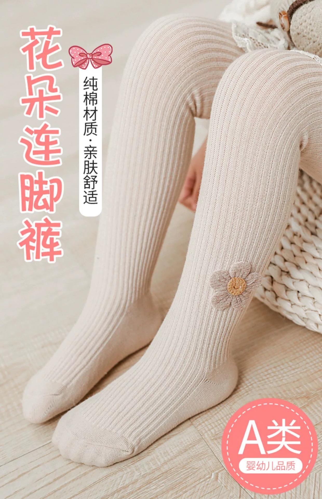 Pantimedias para niños primavera y otoño finas rayas verticales flores estilo coreano leggings para bebés ropa exterior pantimedias para niñas