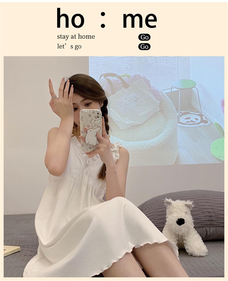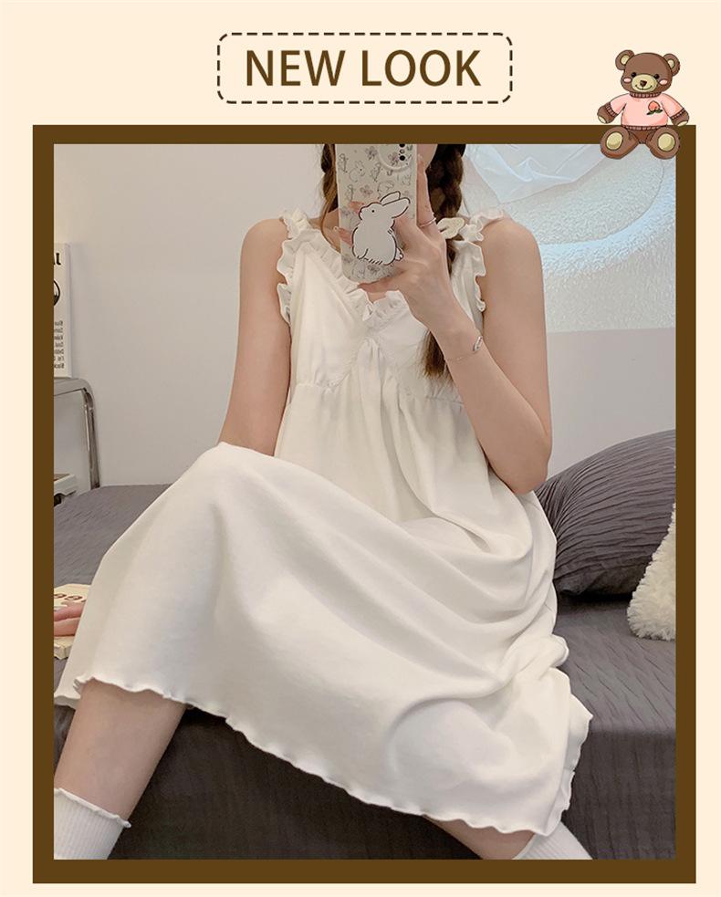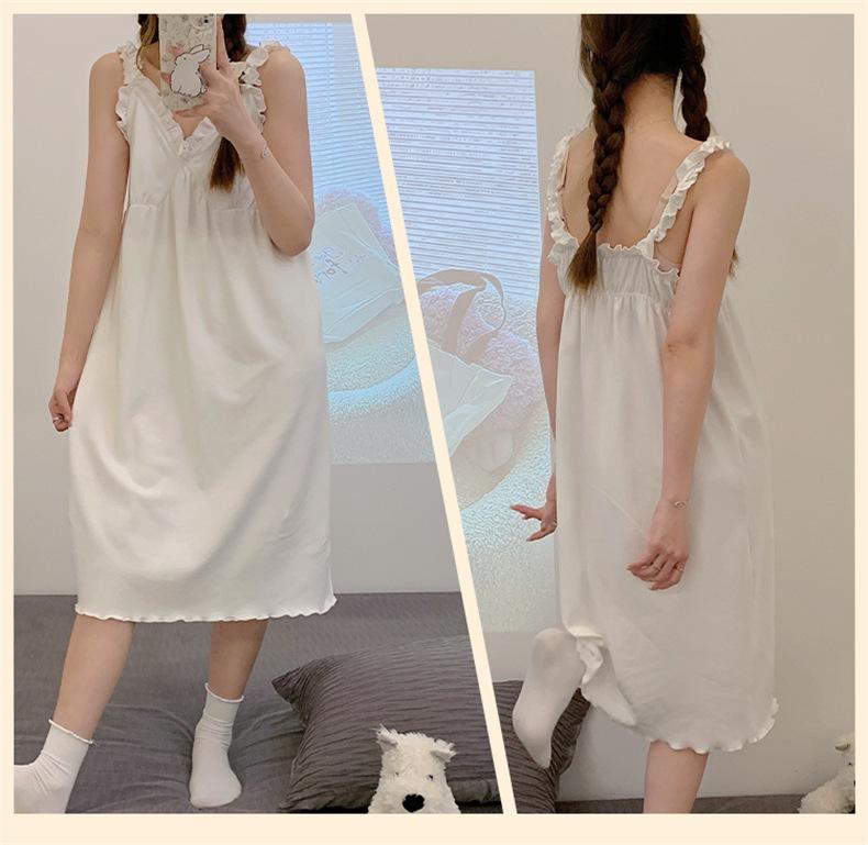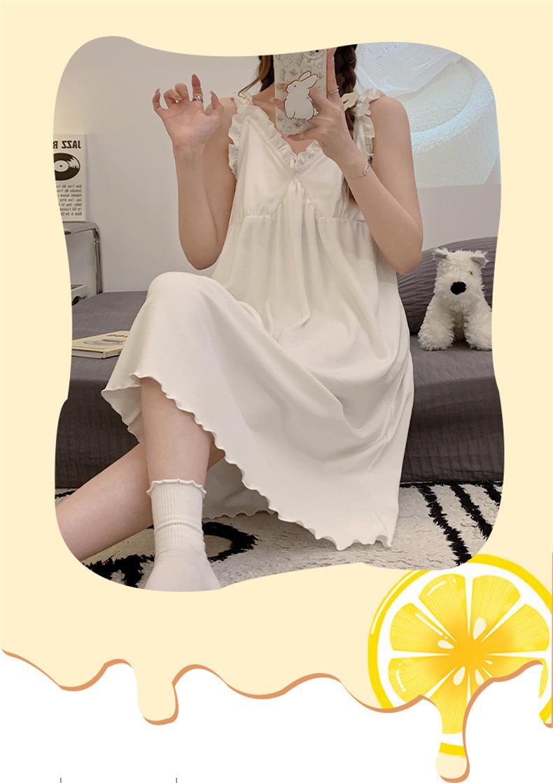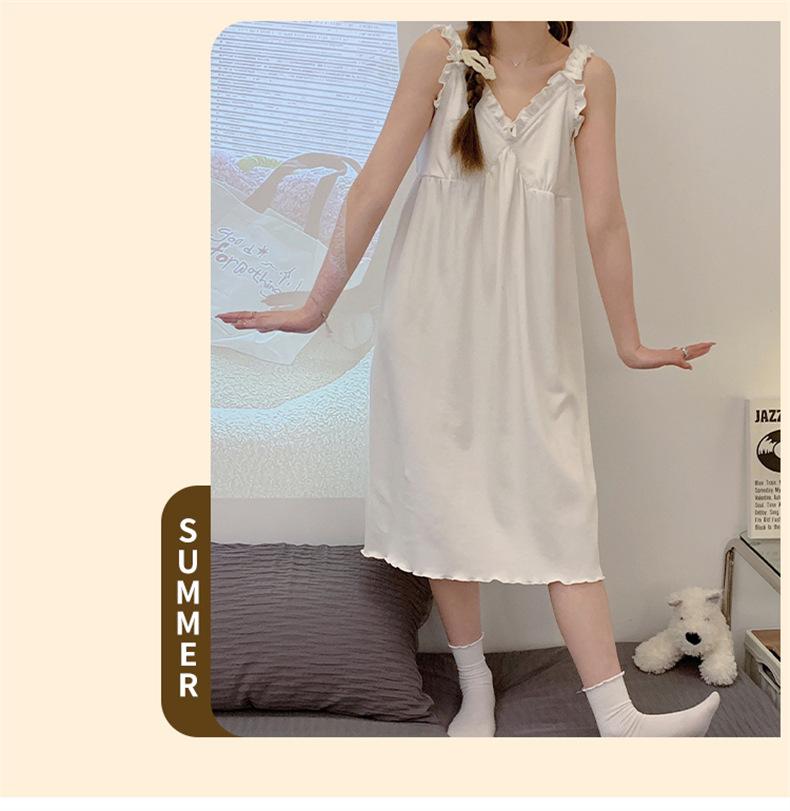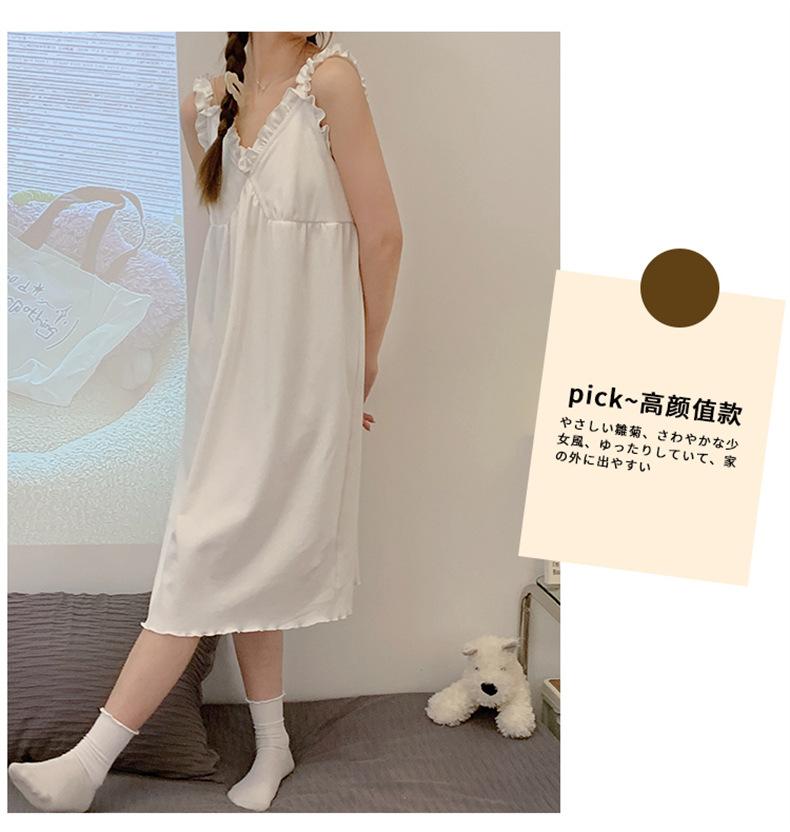 Camisón de exterior para mujer, nuevo estilo, sexy, de verano, con tirantes, color liso, escote en V, estilo Pure Desire Ins, ropa de casa