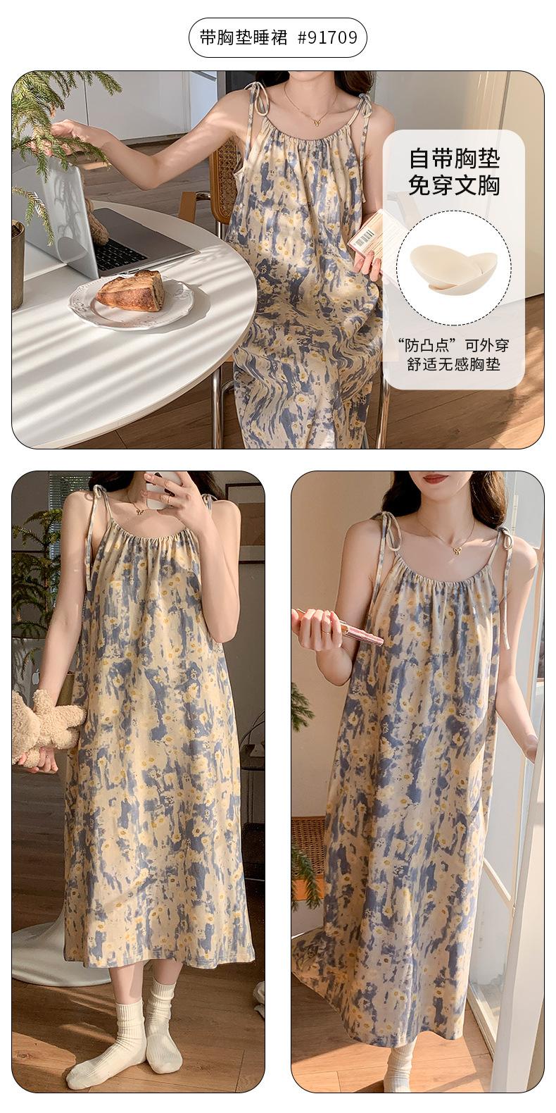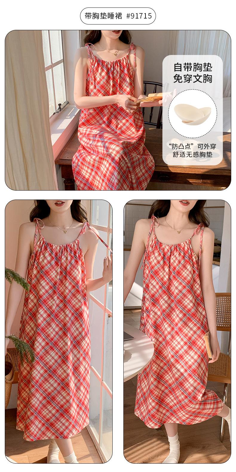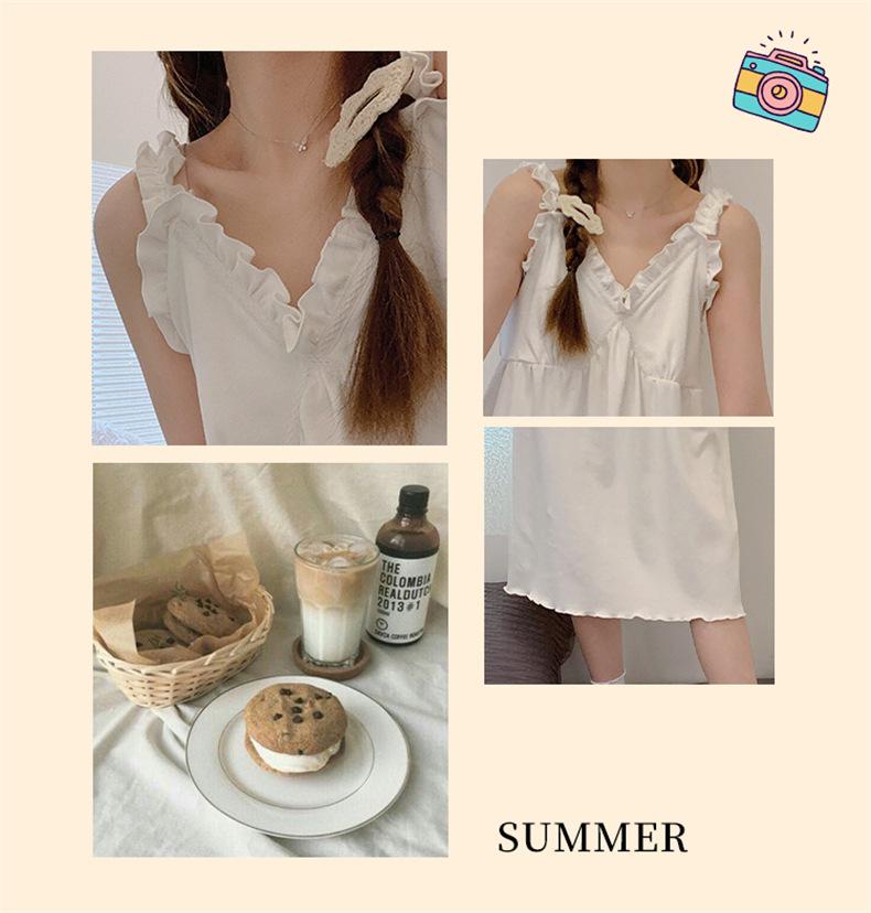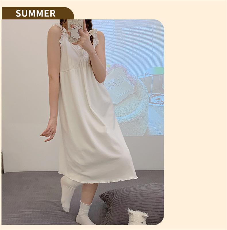 Camisón de exterior para mujer, nuevo estilo, sexy, de verano, con tirantes, color liso, escote en V, estilo Pure Desire Ins, ropa de casa