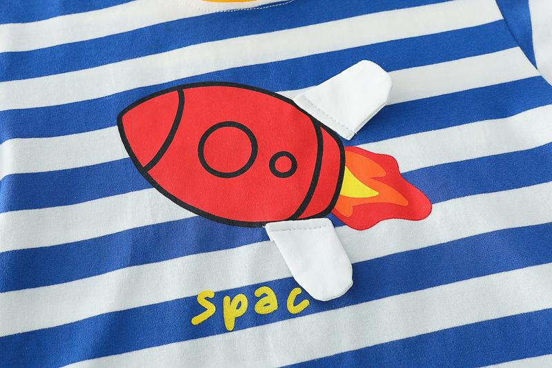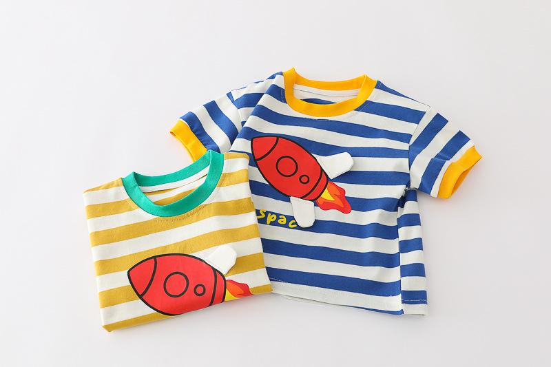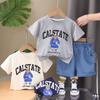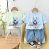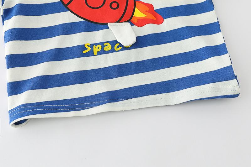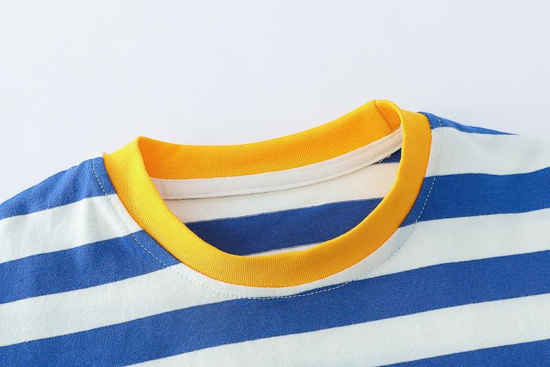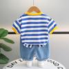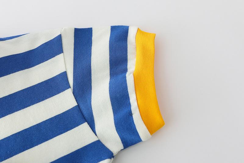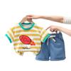 Nuevo Verano 2024 Traje de Manga Corta con Cuello Redondo de Dibujos Animados a Rayas para Niños Traje de Dos Piezas Casual Shorts de Mezclilla para Niños y Bebés