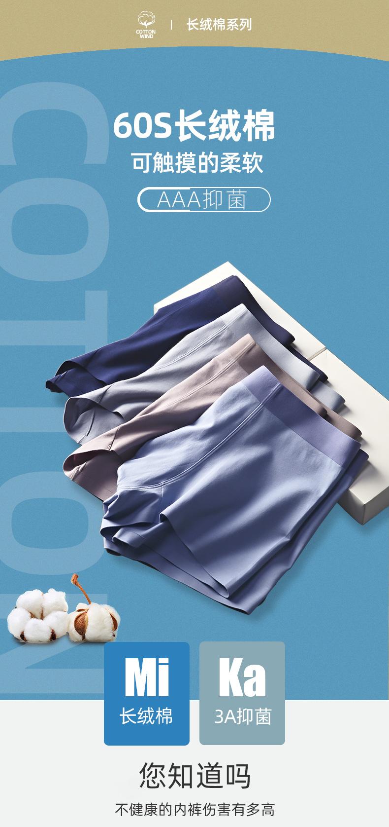 60 piezas de ropa interior masculina de algodón de fibra larga Xinjiang, calzoncillos tipo bóxer transpirables con interior de seda antibacteriana, pantalones sin costuras para hombre