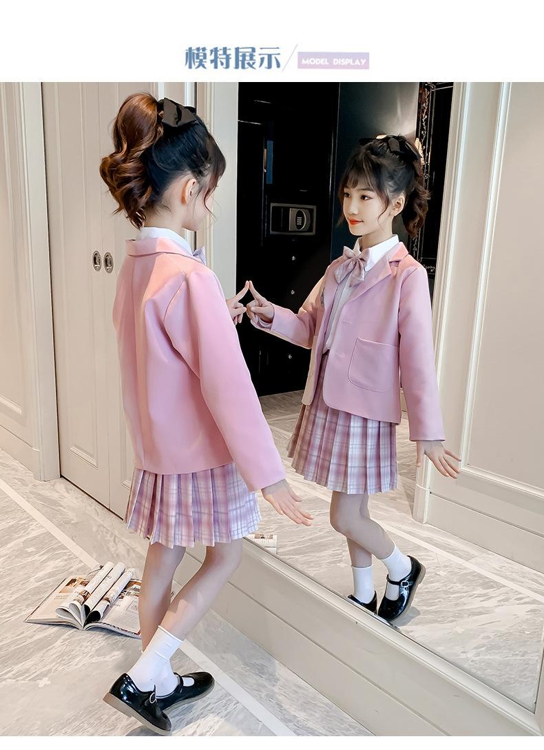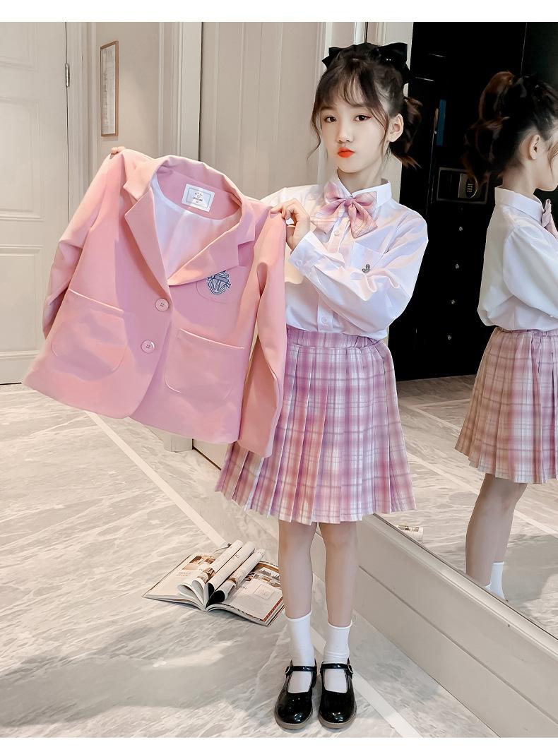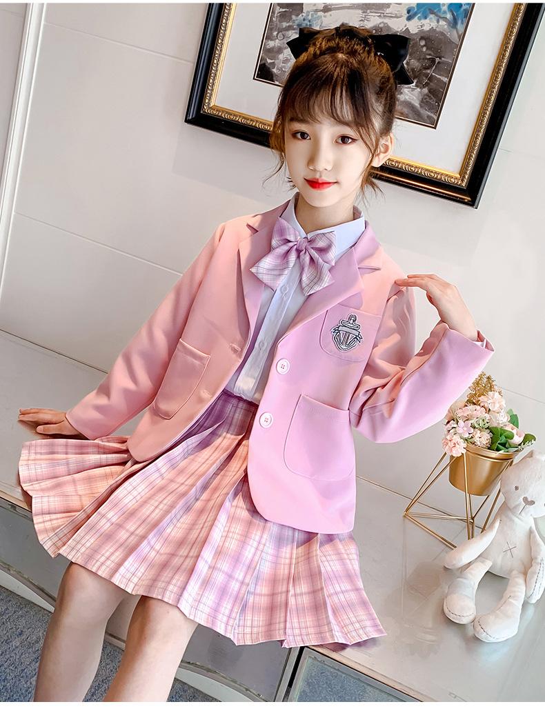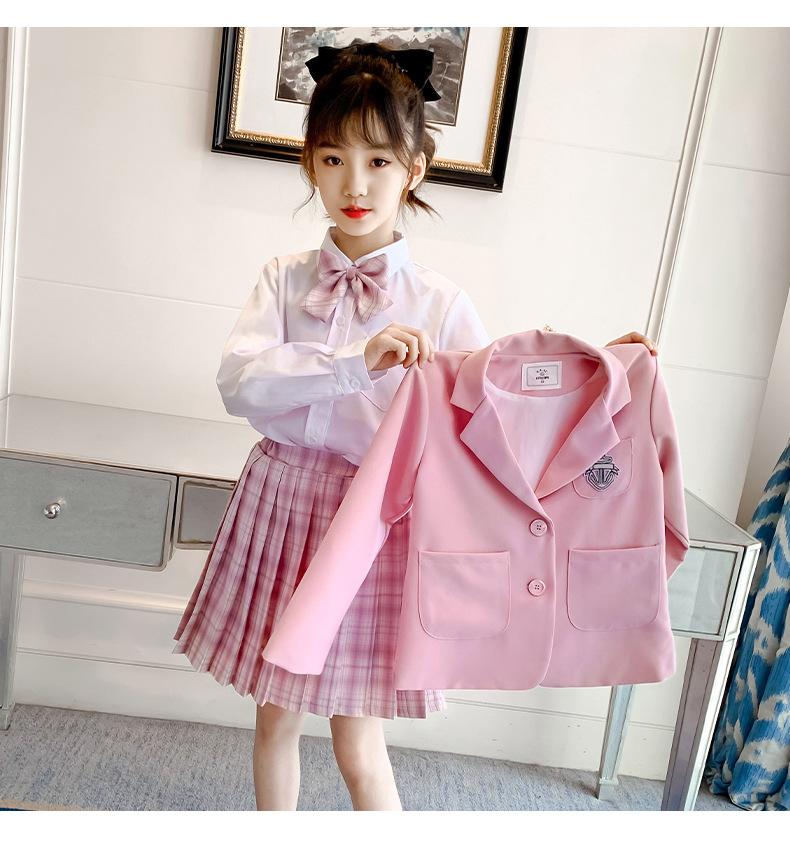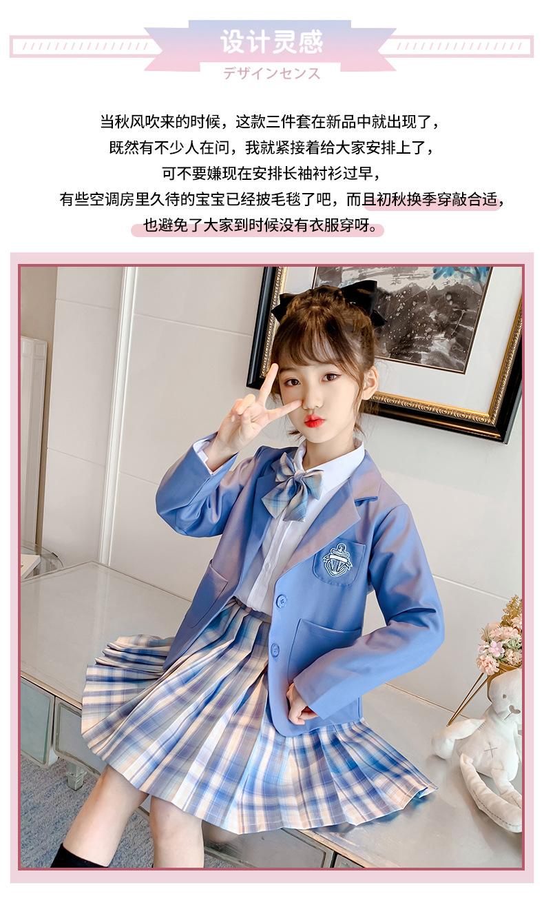Conjunto de uniforme JK para niñas, traje de primavera y otoño, conjunto de tres piezas, falda Prellis de estilo académico para niñas pequeñas, vestido de otoño de estilo occidental para estudiantes de primaria.