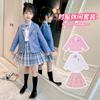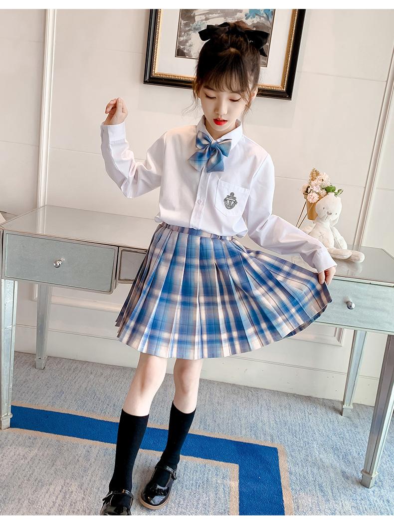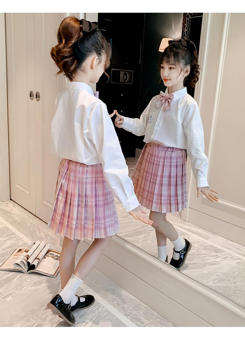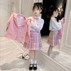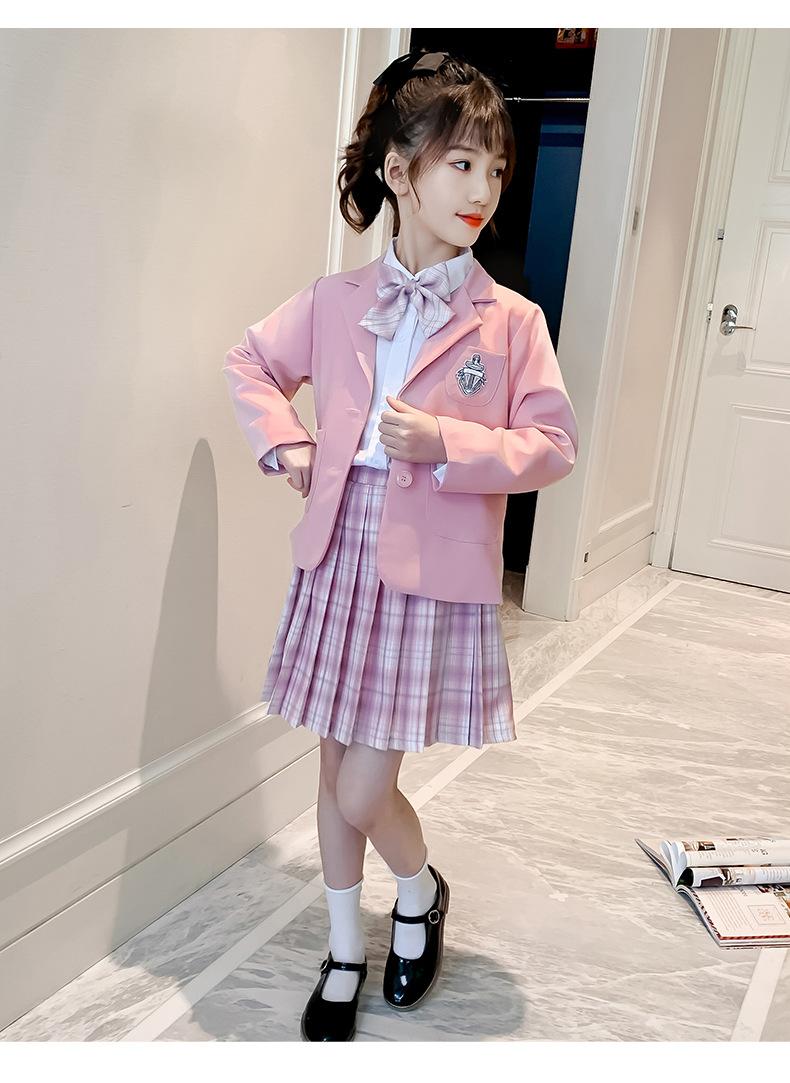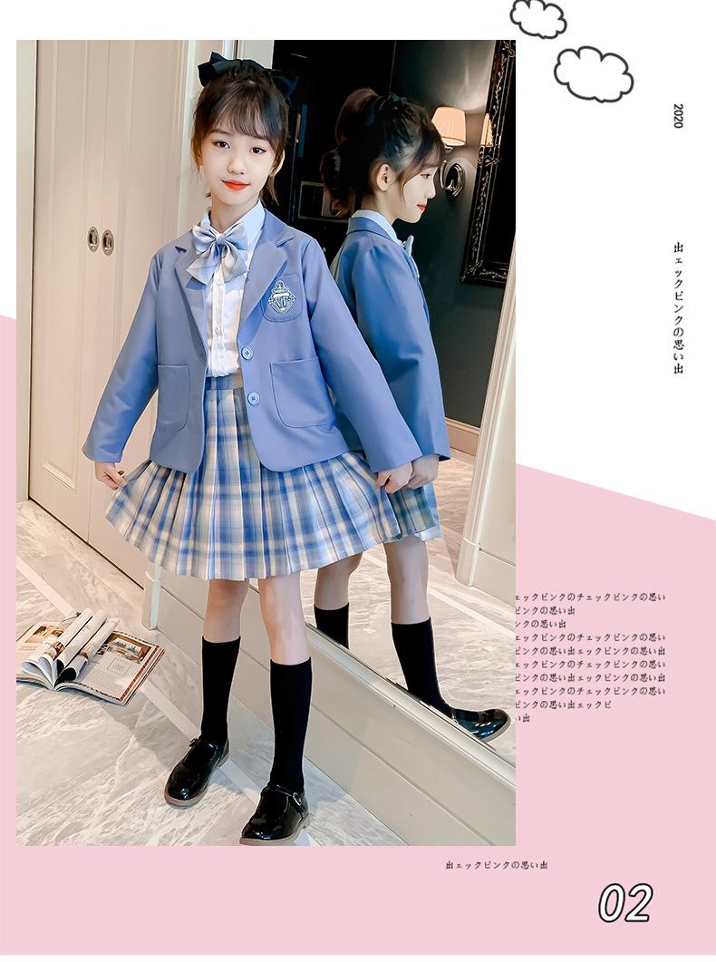 Conjunto de uniforme JK para niñas, traje de primavera y otoño, conjunto de tres piezas, falda Prellis de estilo académico para niñas pequeñas, vestido de otoño de estilo occidental para estudiantes de primaria.