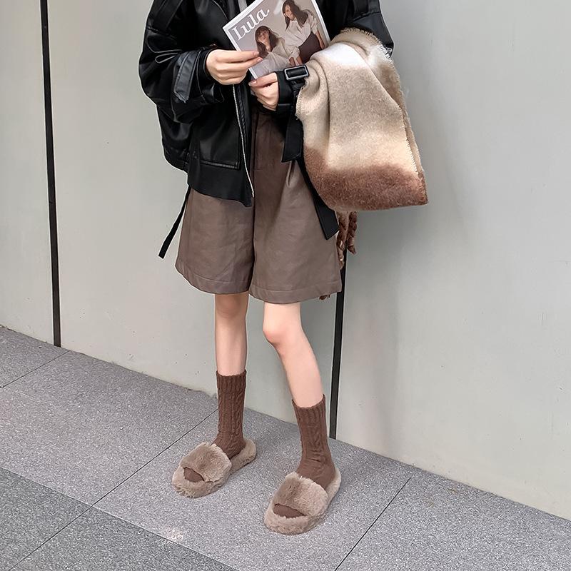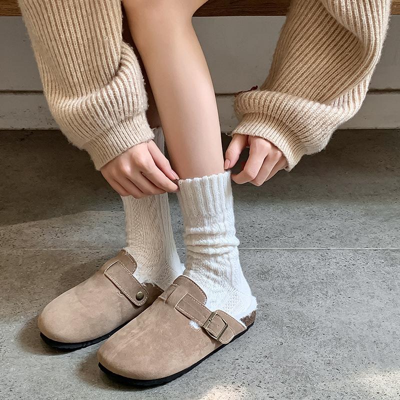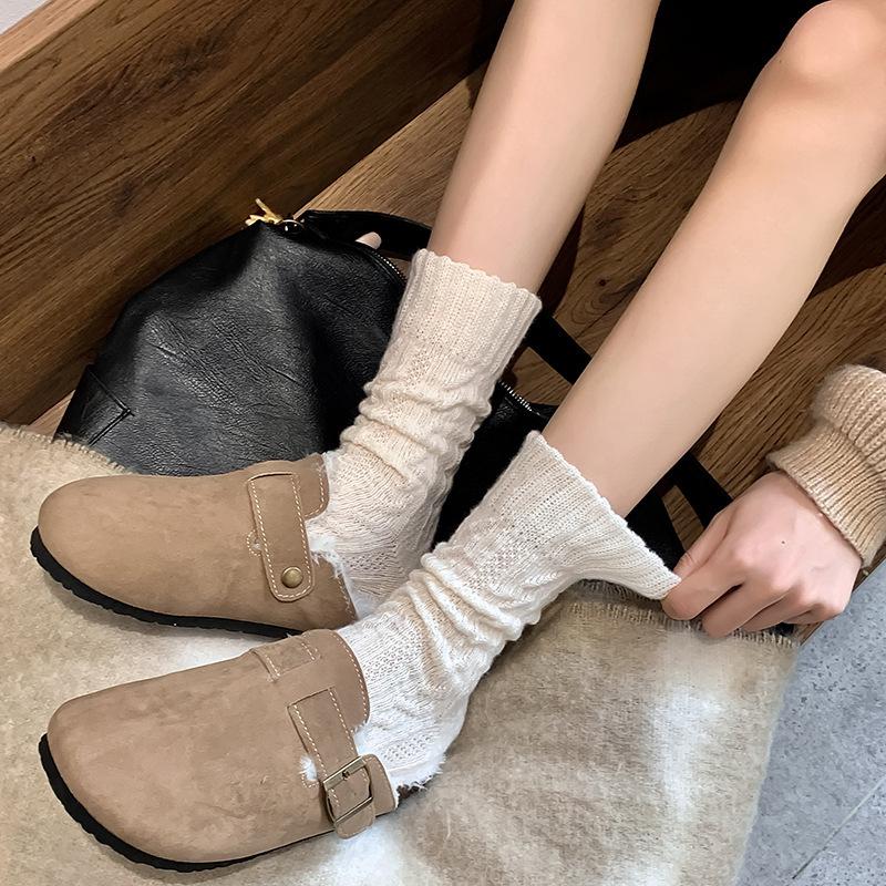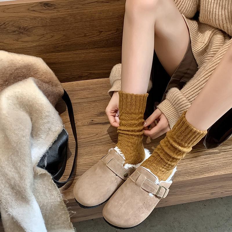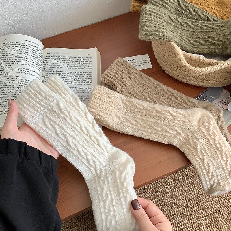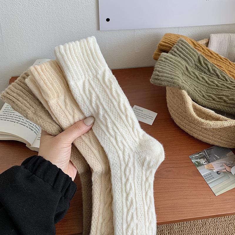 Calcetines de cachemira para mujer, otoño e invierno, forrados de vellón, gruesos, cálidos, japoneses, retro, marrones, hasta media pantorrilla, medias torcidas