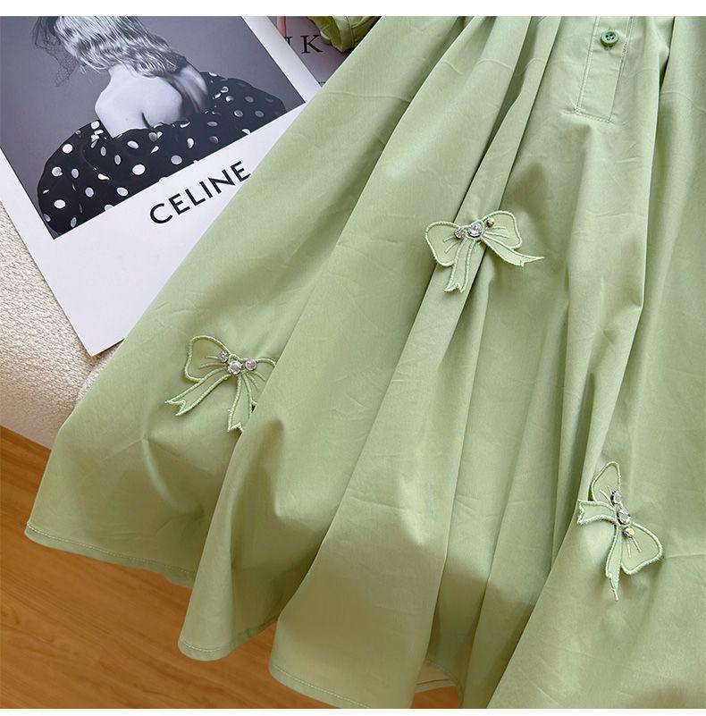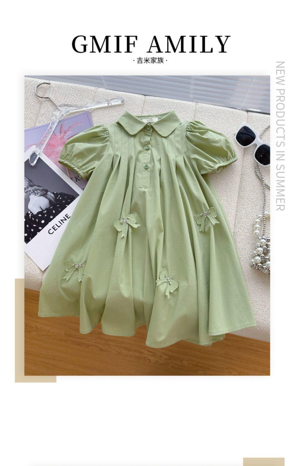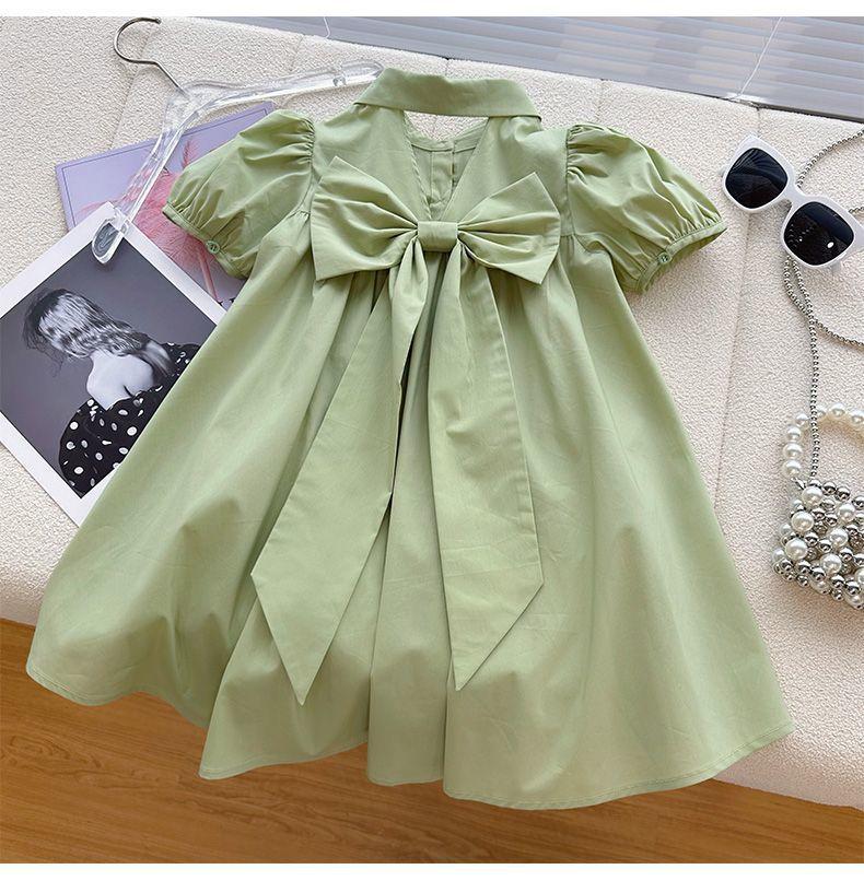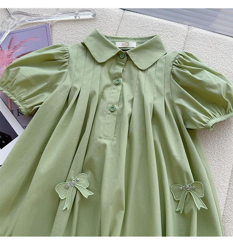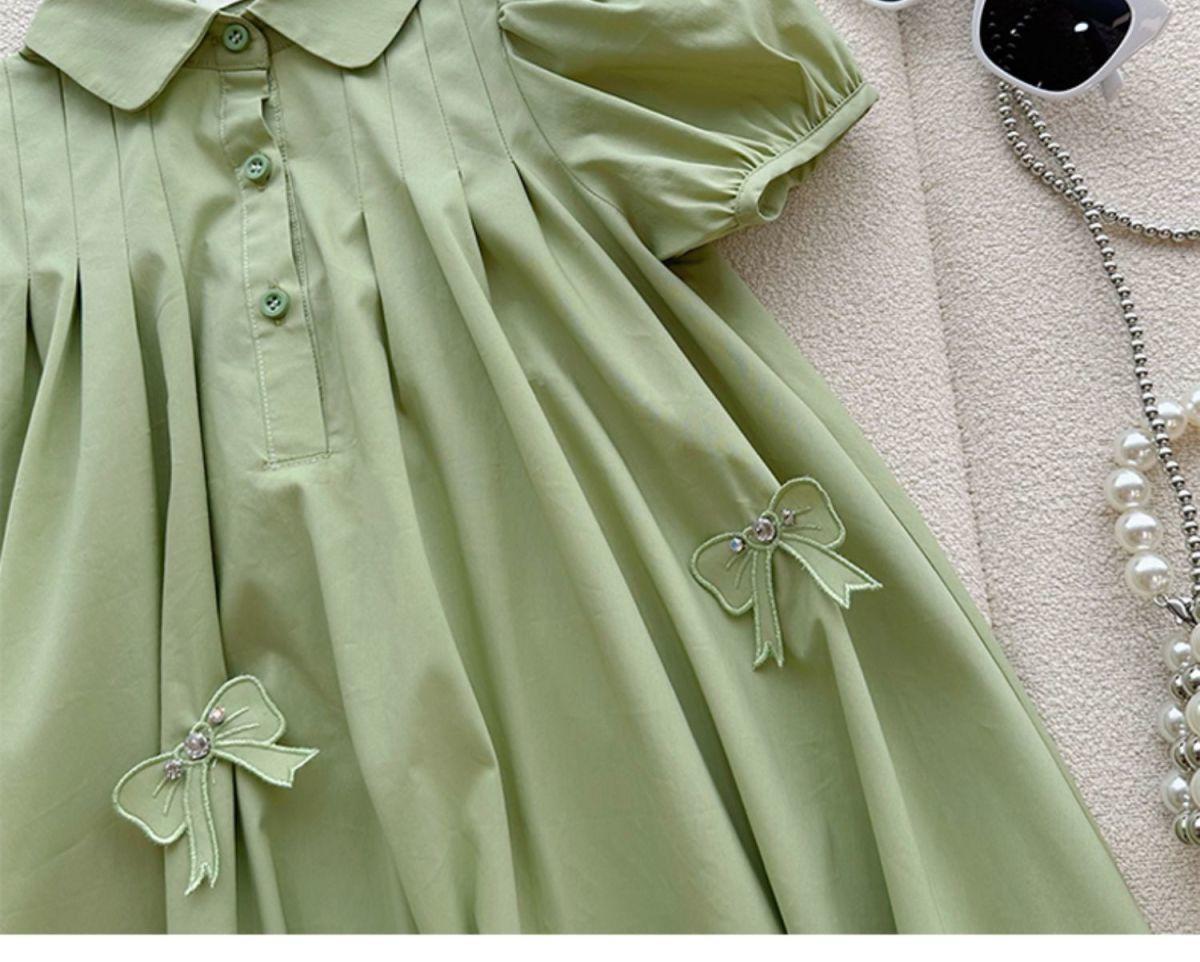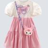 Vestido Nuevo de Verano para Niñas Estilo Coreano 2024, Vestido de Princesa de Manga Abullonada Lindo de Dibujos Animados a la Moda para Niños Medianos y Grandes