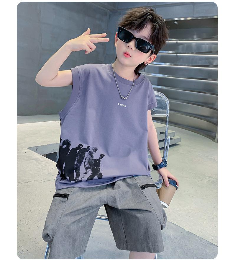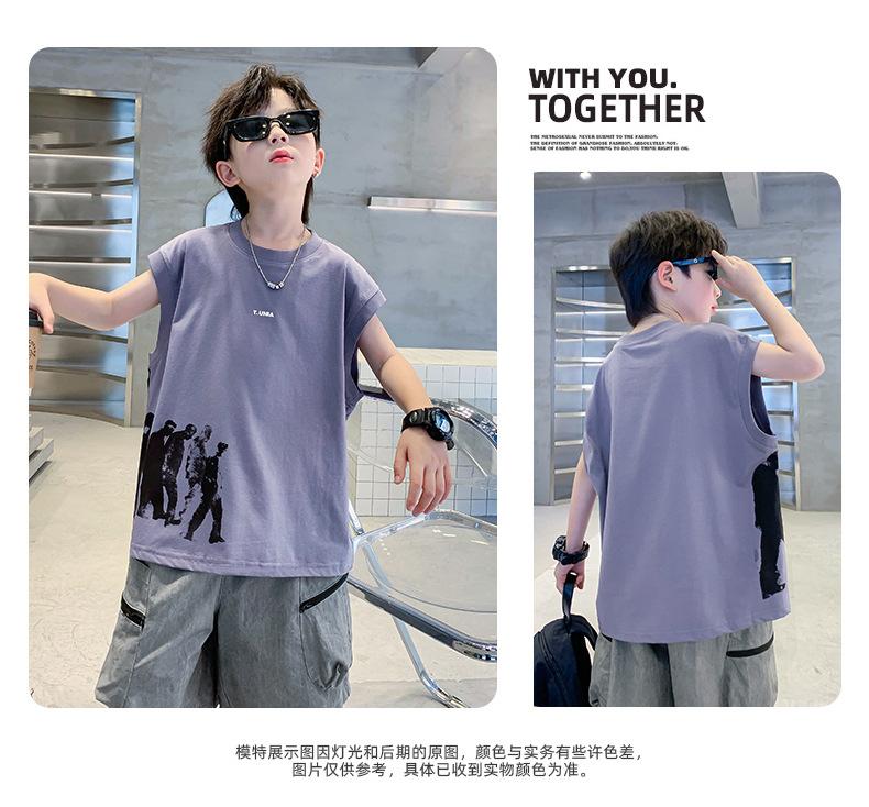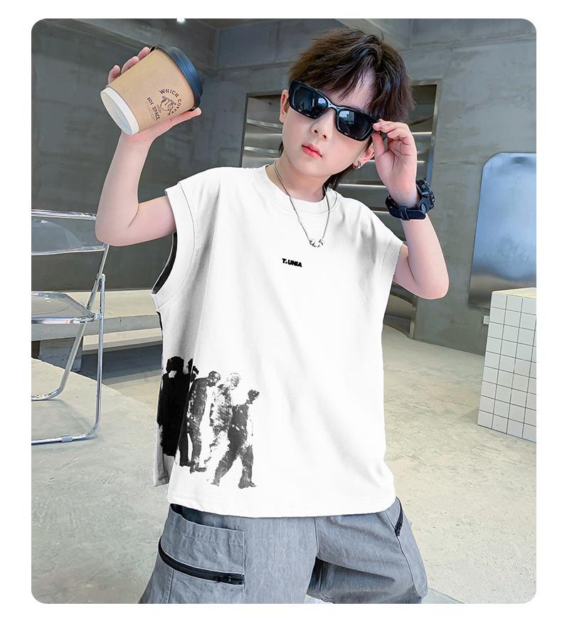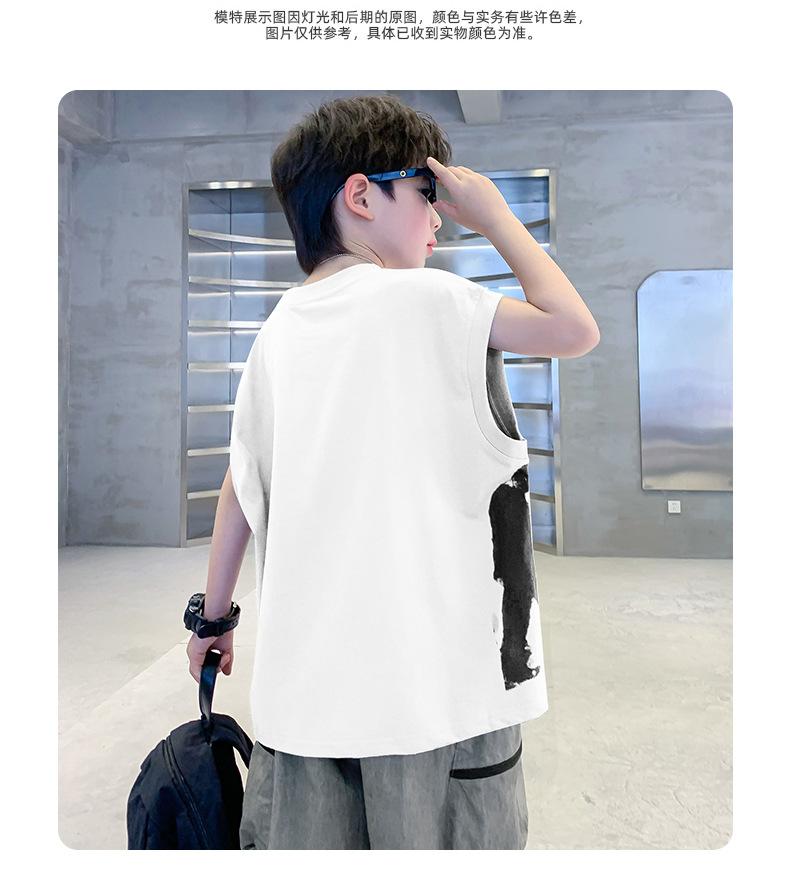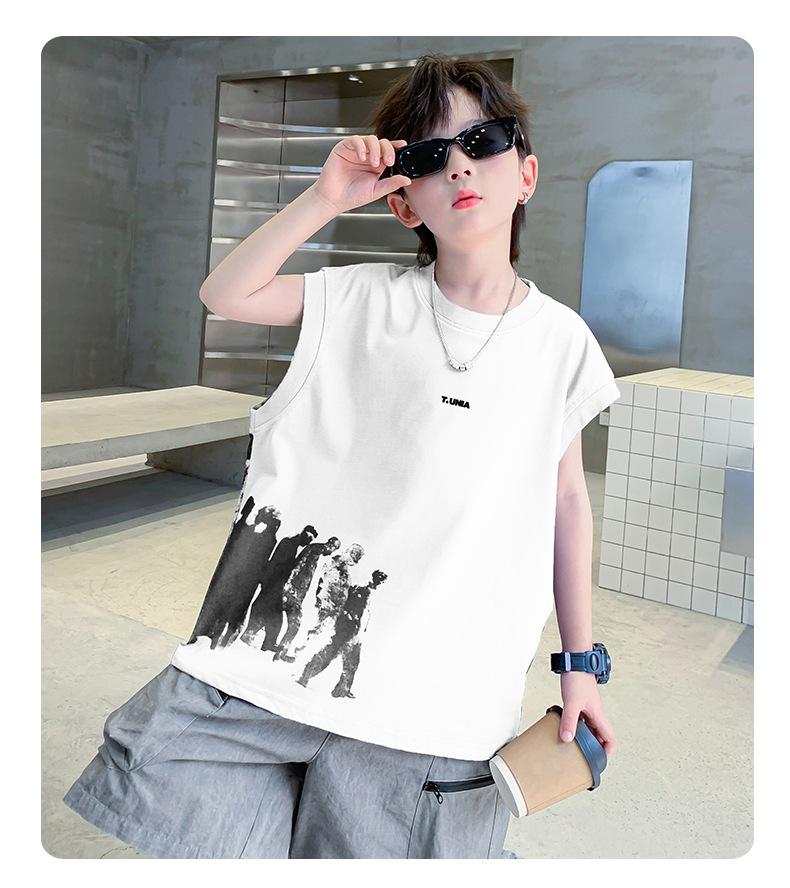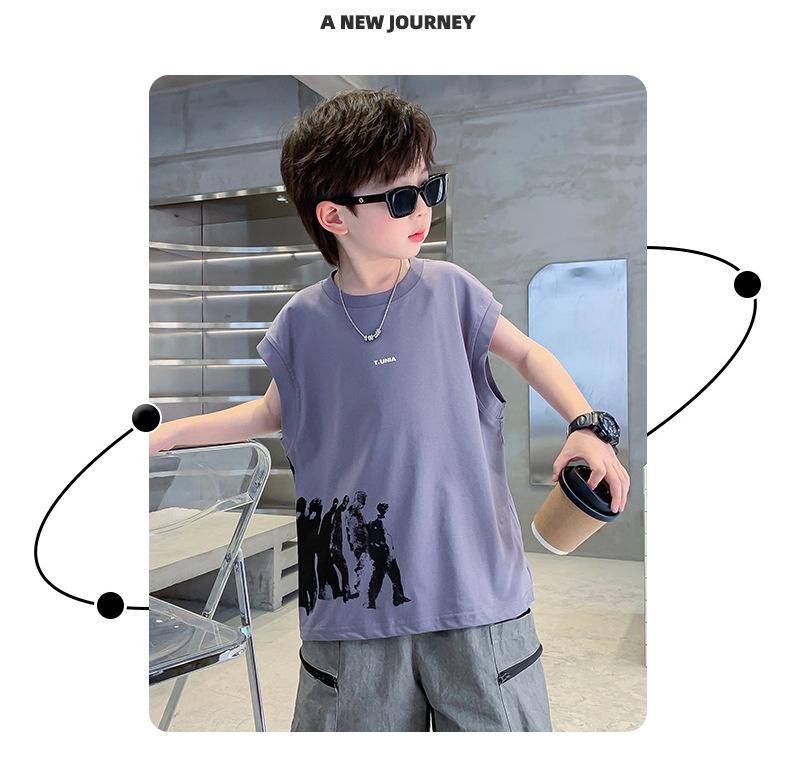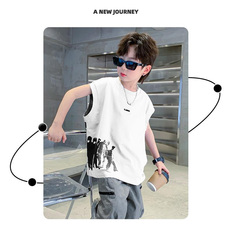 Camiseta de Verano para Niño Algodón Puro 2025 Nuevo Estilo Top de Verano para Niños Medianos-Grandes Moderno Chaleco T de Verano para Niños Holgado sin Mangas