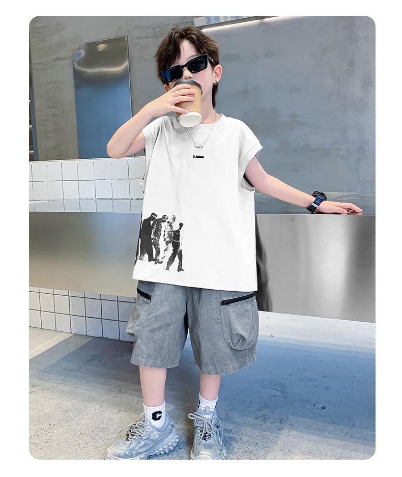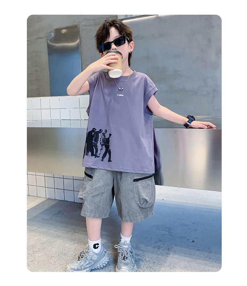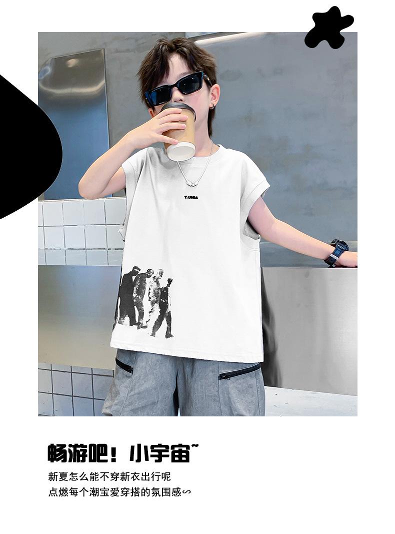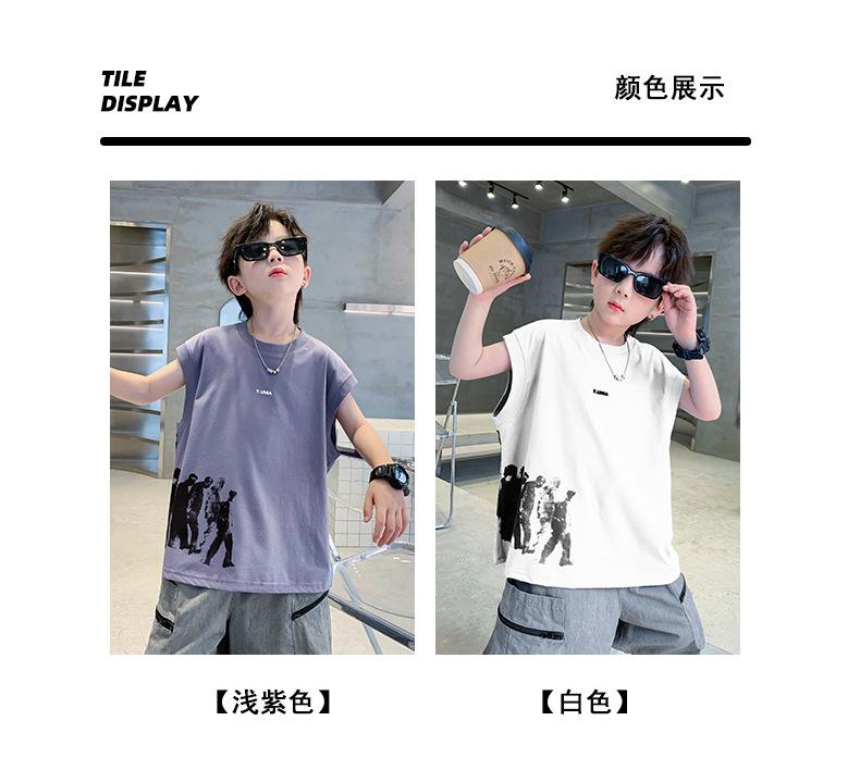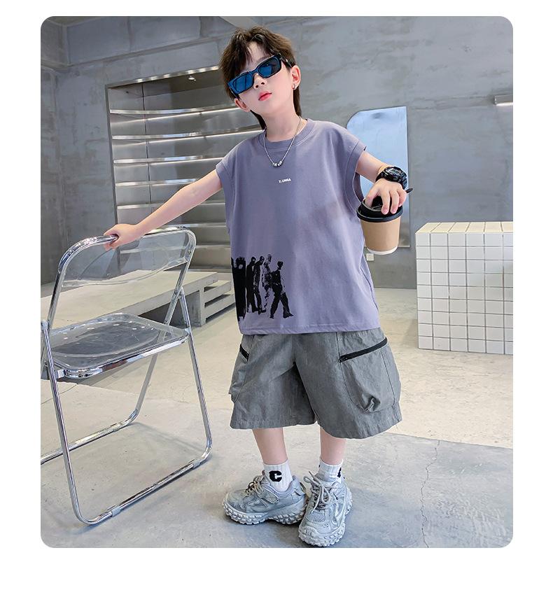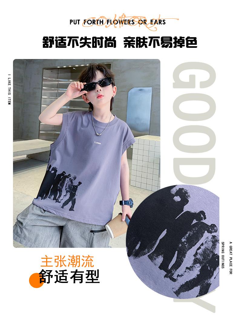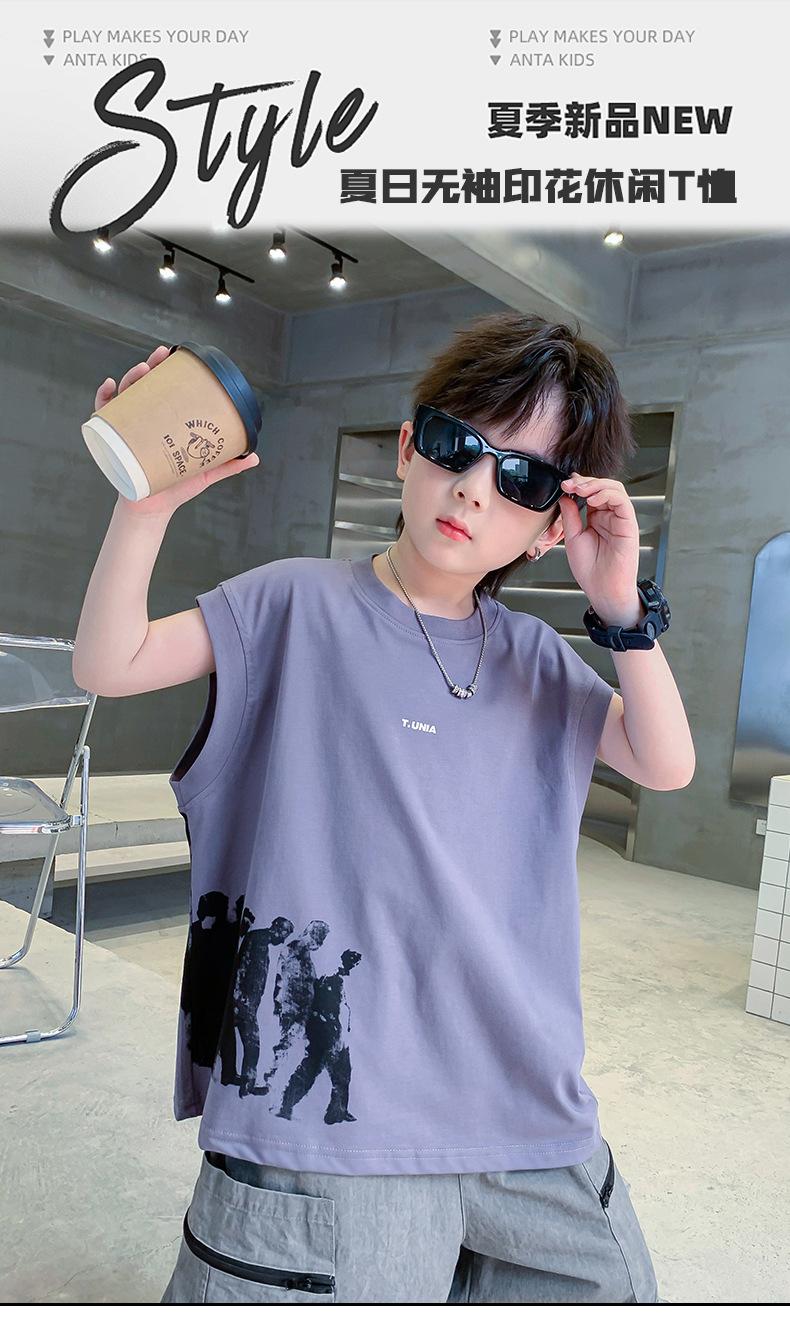 Camiseta de Verano para Niño Algodón Puro 2025 Nuevo Estilo Top de Verano para Niños Medianos-Grandes Moderno Chaleco T de Verano para Niños Holgado sin Mangas