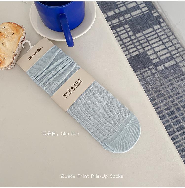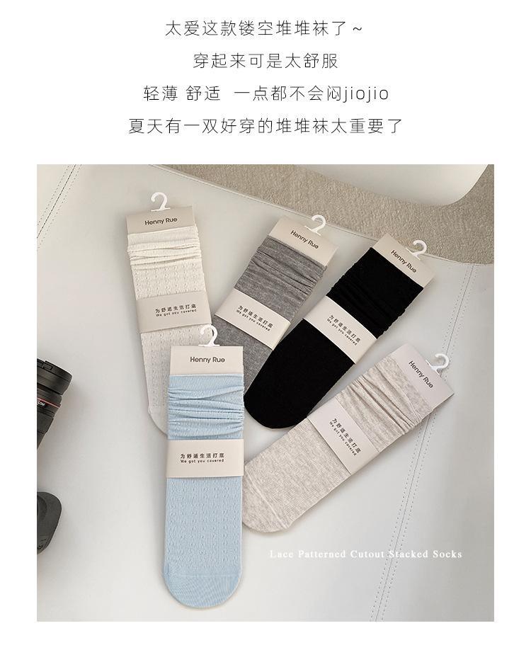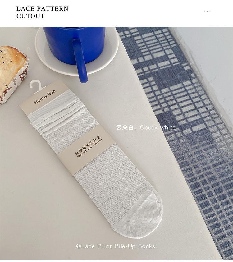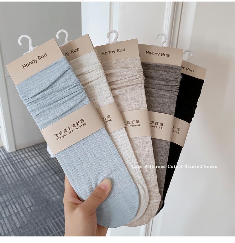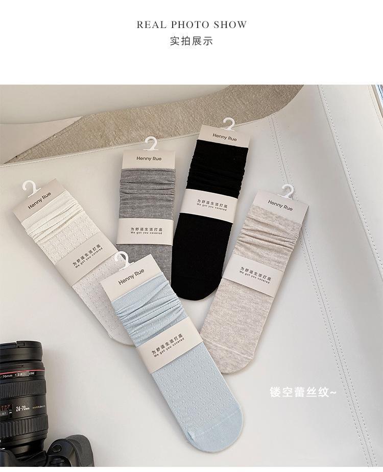 Goodfa Calcetines Nuevos Verano para Mujer Encaje Calados Color Puro Calcetines a la Pantorrilla Primavera y Verano Calcetines para Mujer Algodón Media Pantorrilla Calcetines de Rizo para Mujer