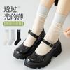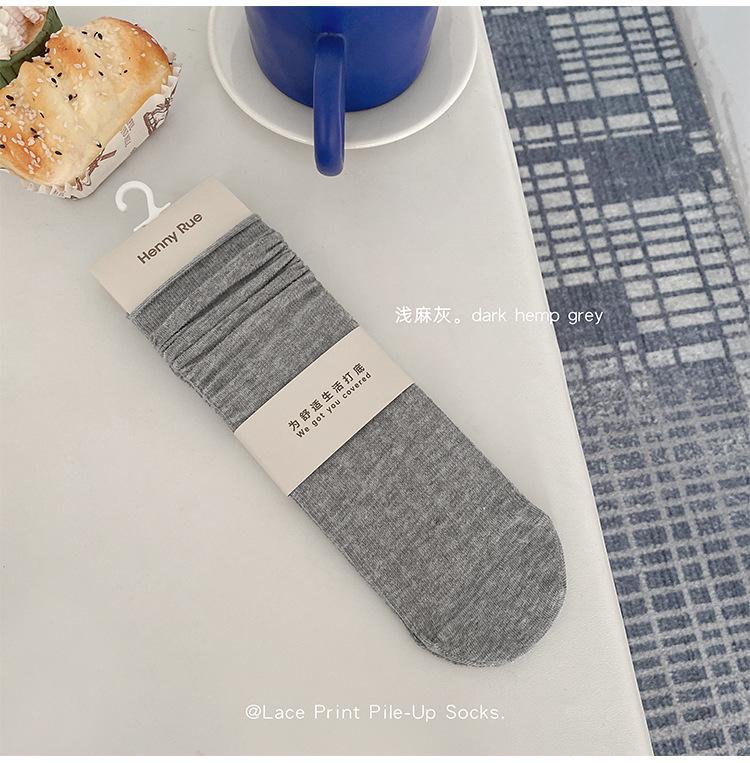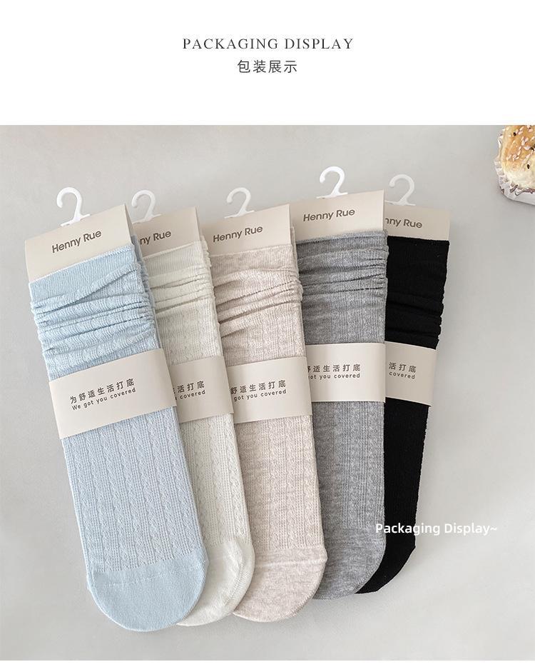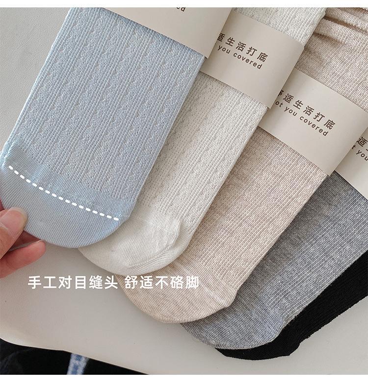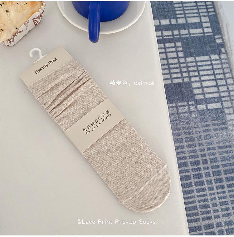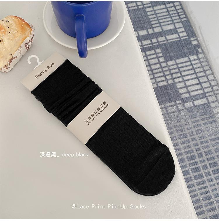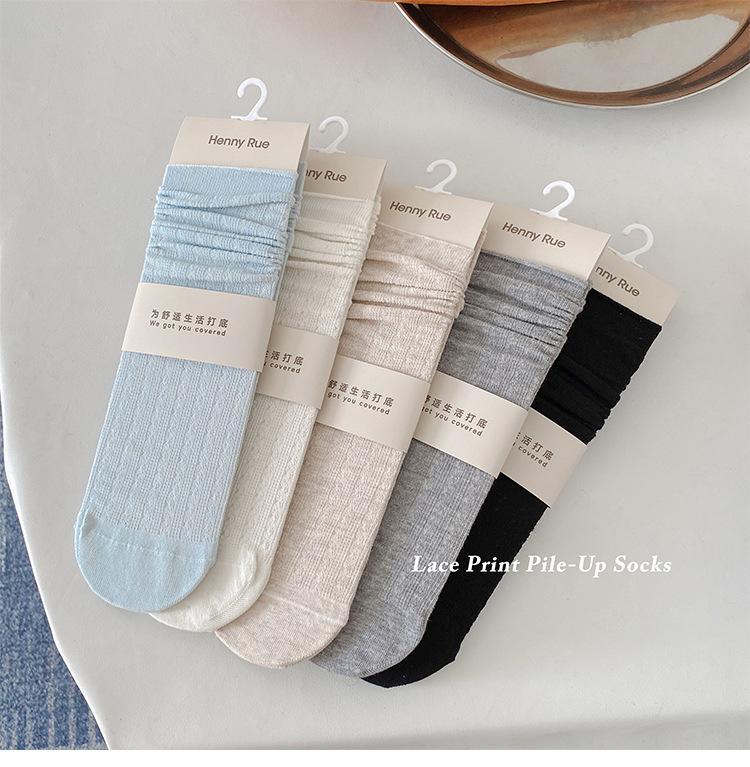 Goodfa Calcetines Nuevos Verano para Mujer Encaje Calados Color Puro Calcetines a la Pantorrilla Primavera y Verano Calcetines para Mujer Algodón Media Pantorrilla Calcetines de Rizo para Mujer
