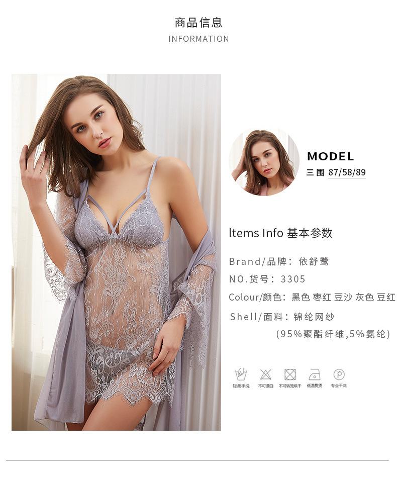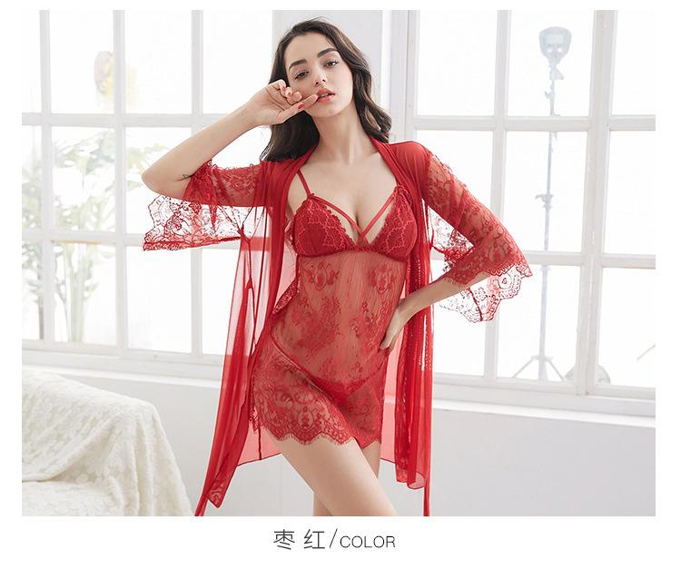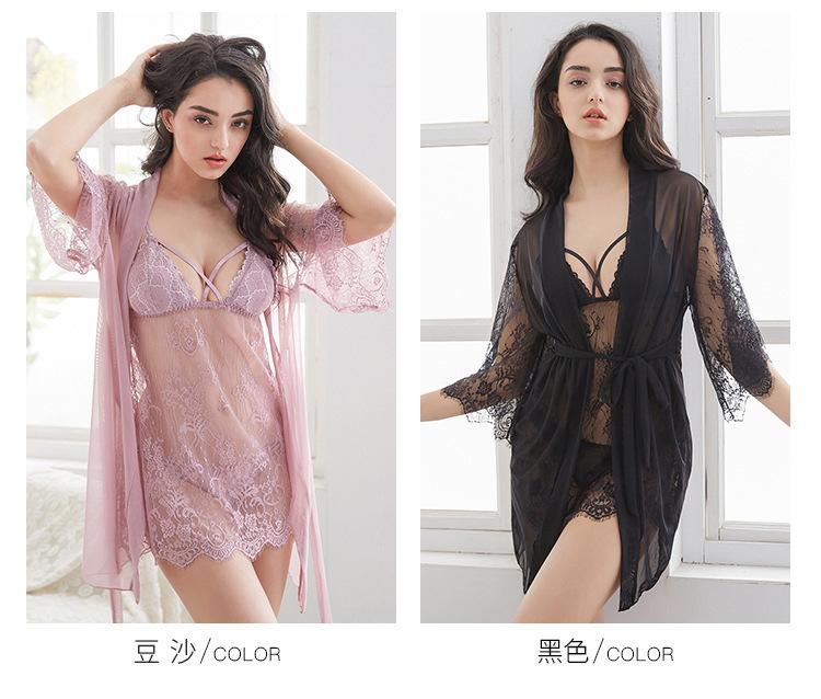 Nueva ropa interior sexy europea y americana de encaje de verano, pijama fino y sexy con almohadilla para el pecho, camisón de tres piezas con cinturón de condole, fabricantes al por mayor