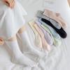 Calcetines de mujer de otoño e invierno de media pantorrilla de algodón sin hueso, calcetines de confinamiento, absorbentes de sudor, transpirables, de color sólido, medias japonesas de boca suelta