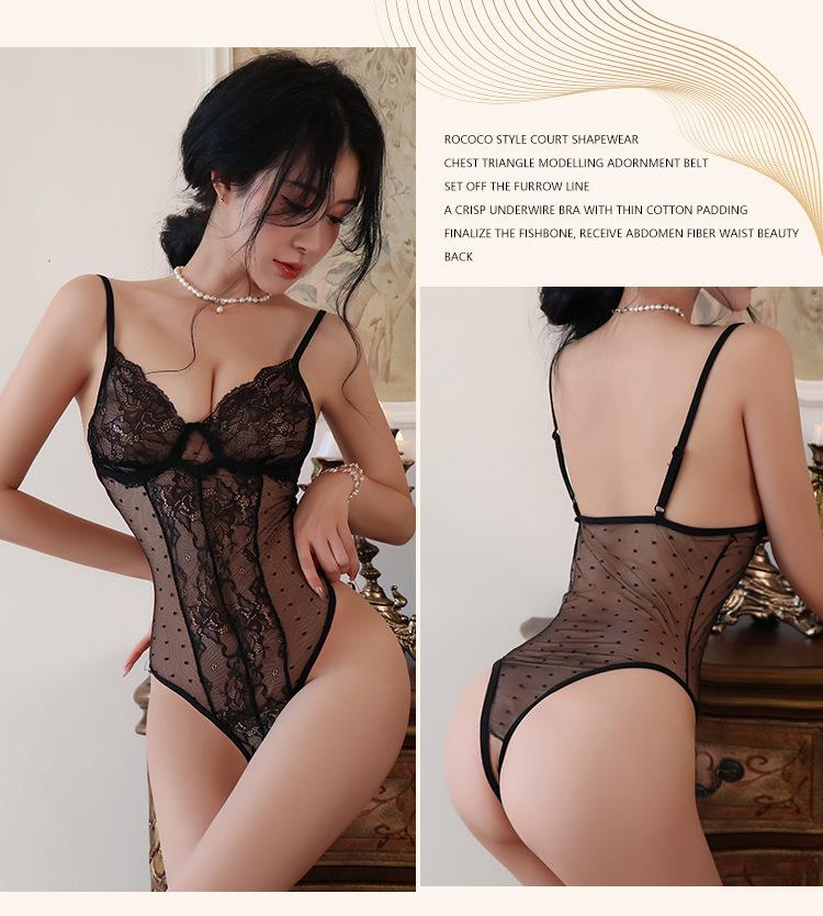Pijama de encaje sexy de noche larga con entrepierna abierta y perspectiva tentadora para mujer 2012