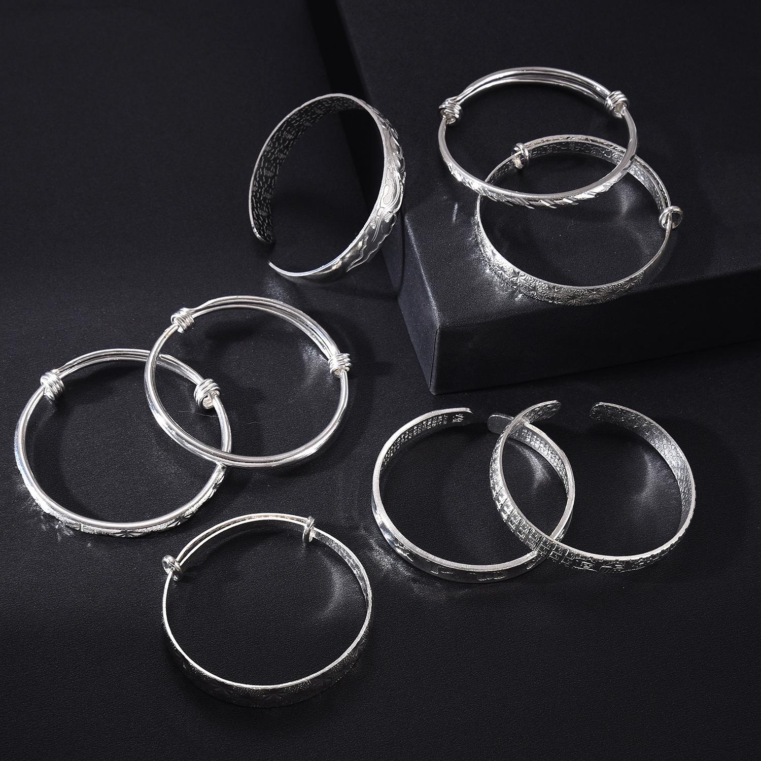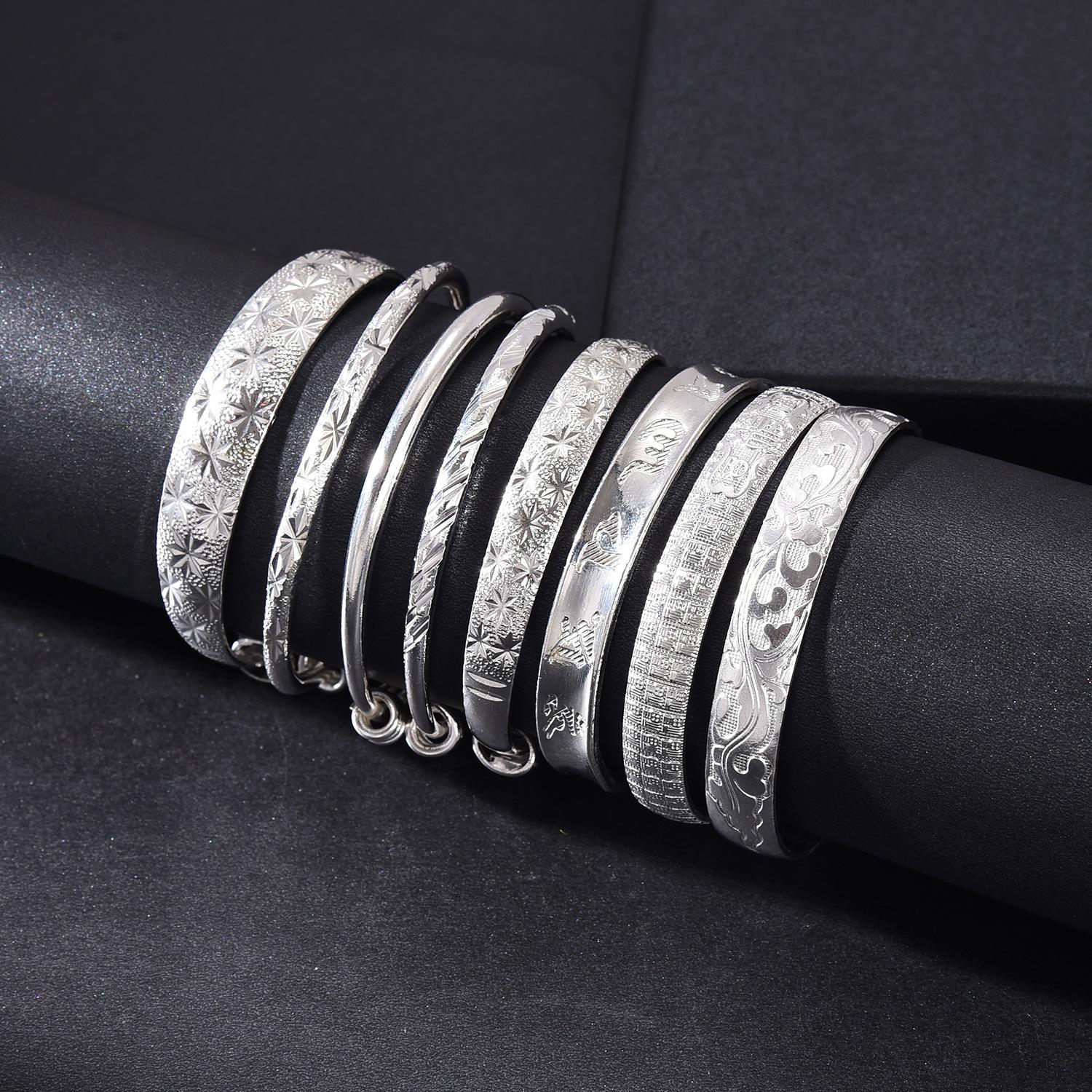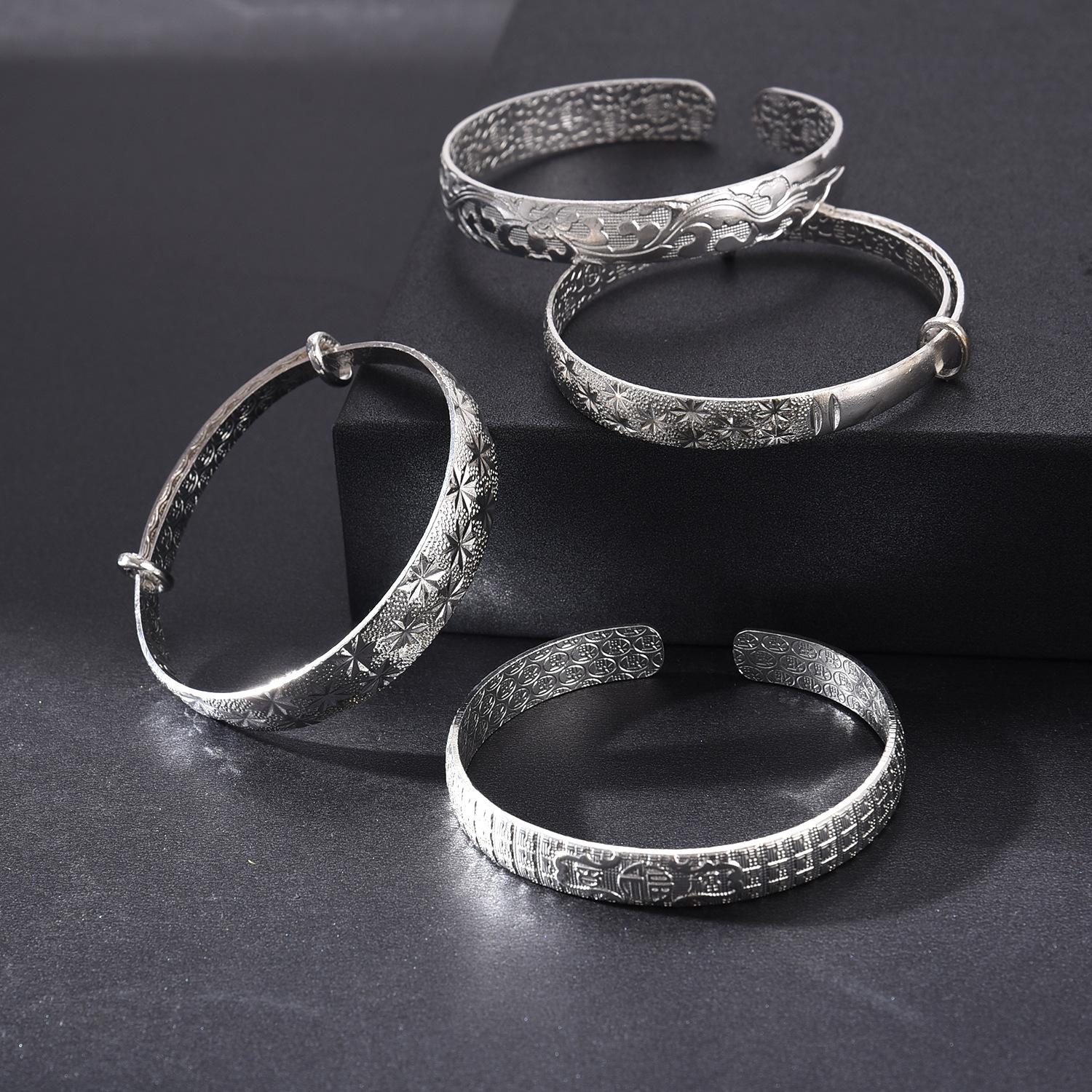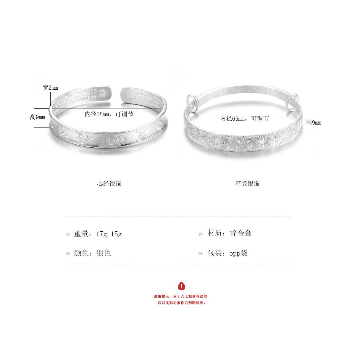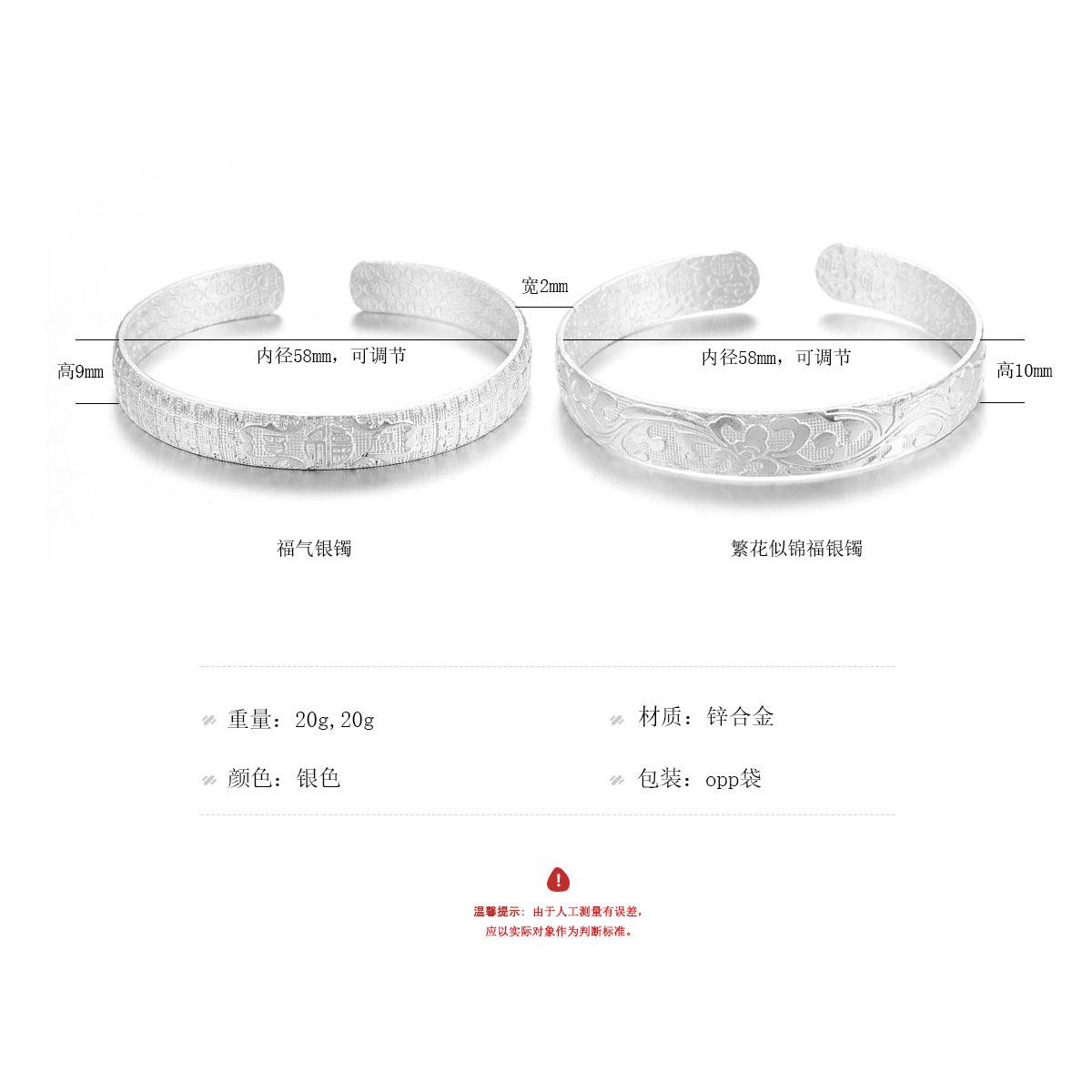 Pulsera plateada Guofeng, pulsera de gypsophila con flores y brocado, pulsera con apertura, pulsera de meteorito de la felicidad familiar Sutra del Corazón 100
