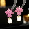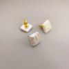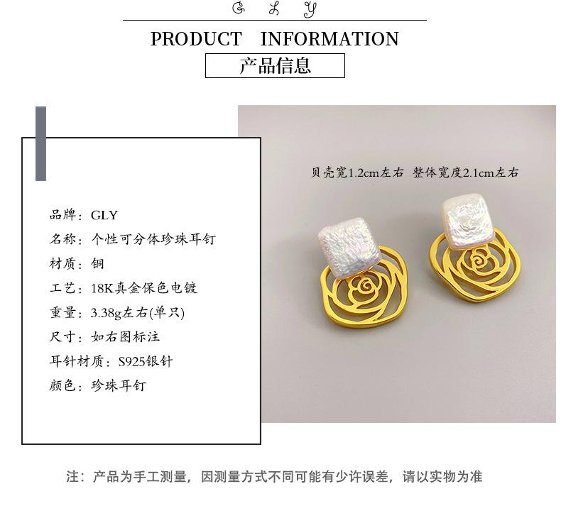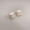 Pendientes de perlas cultivadas cuadradas irregulares estilo barroco europeo y americano, con forma de flor pequeña, pendientes divididos de moda para mujer