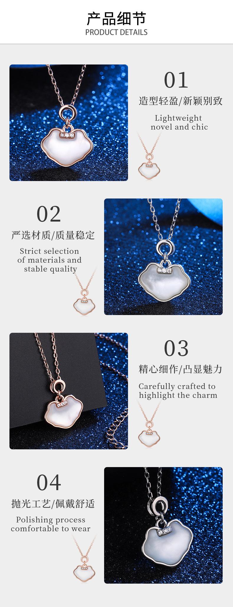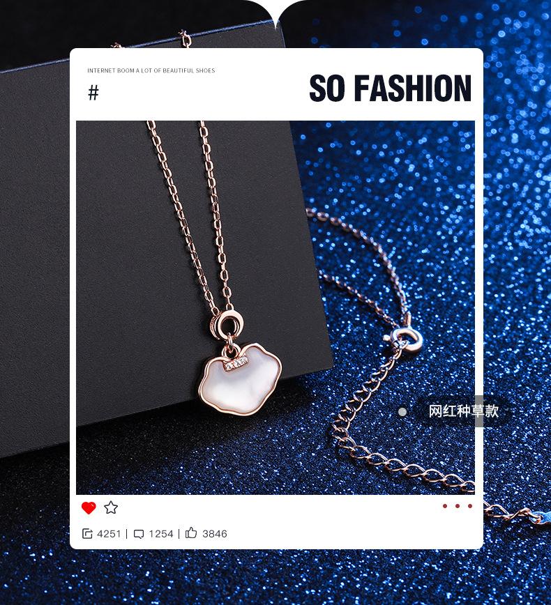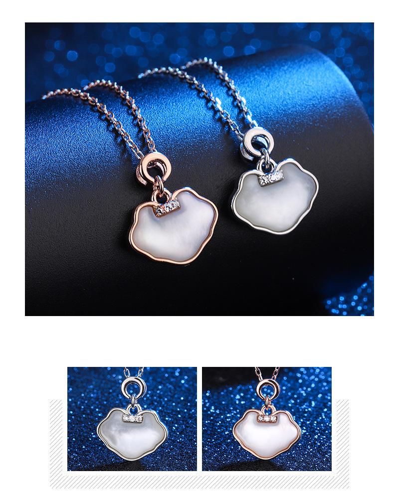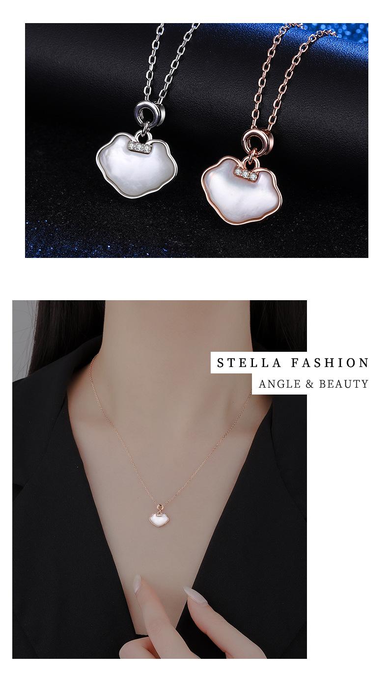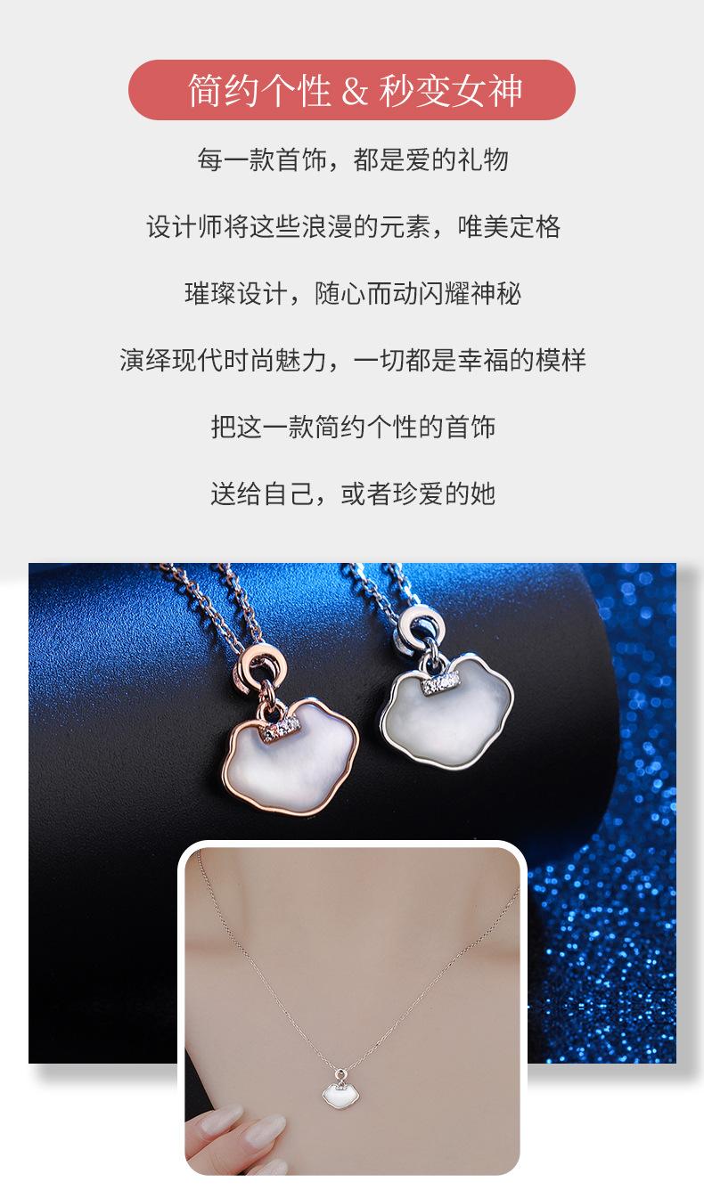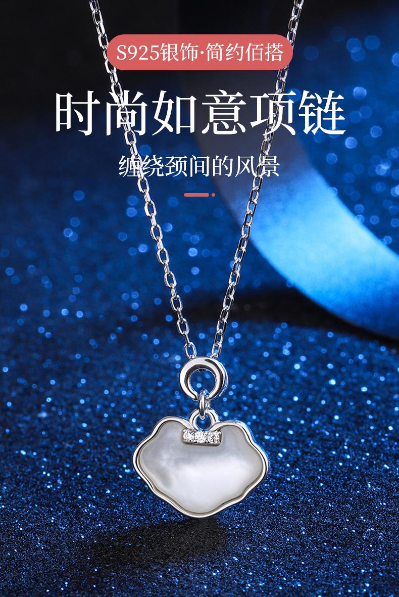 Collar Guofeng s925 de plata esterlina Ruyi con concha y diamante, cadena de clavícula con candado de paz, colgante elegante y retro de moda nacional