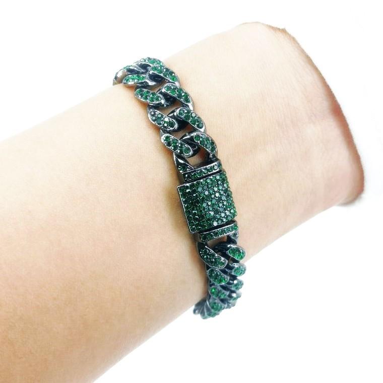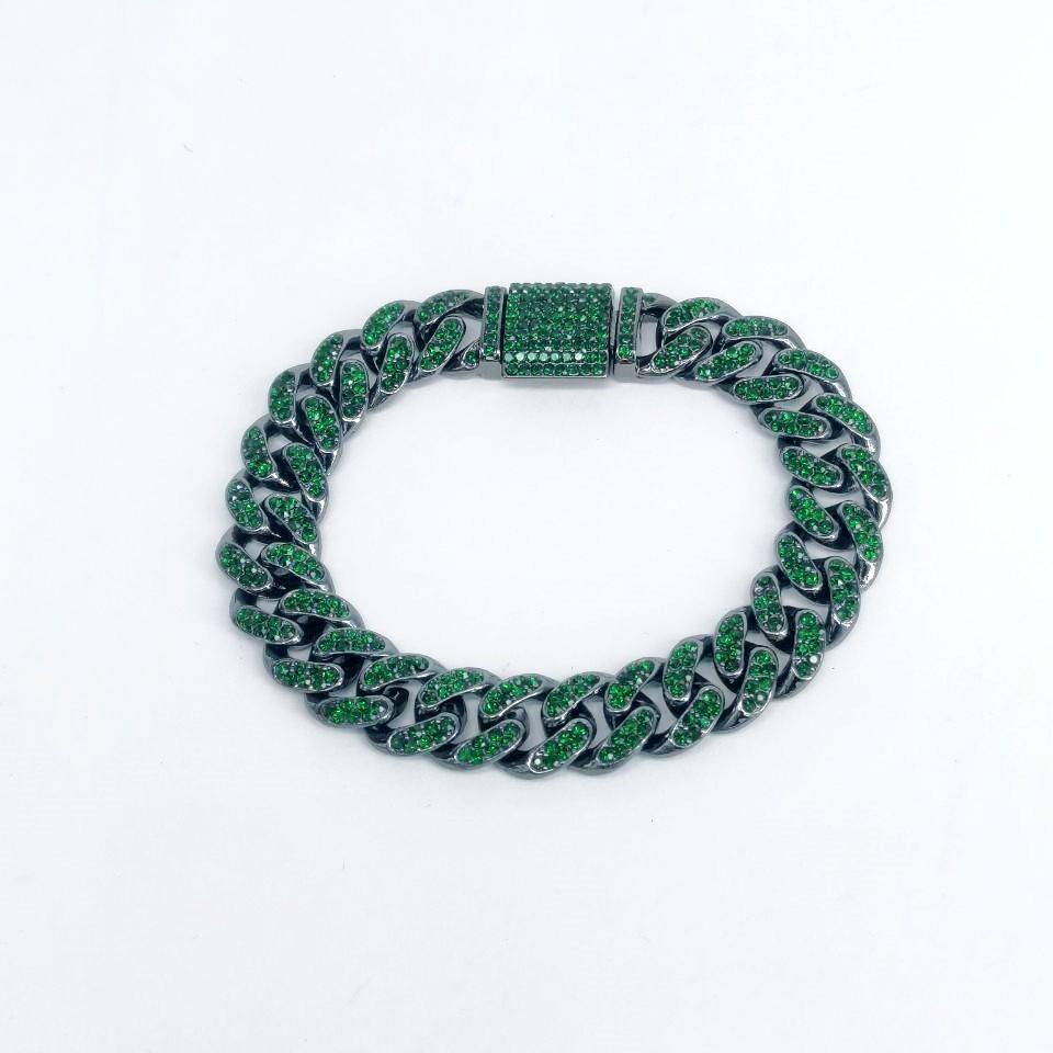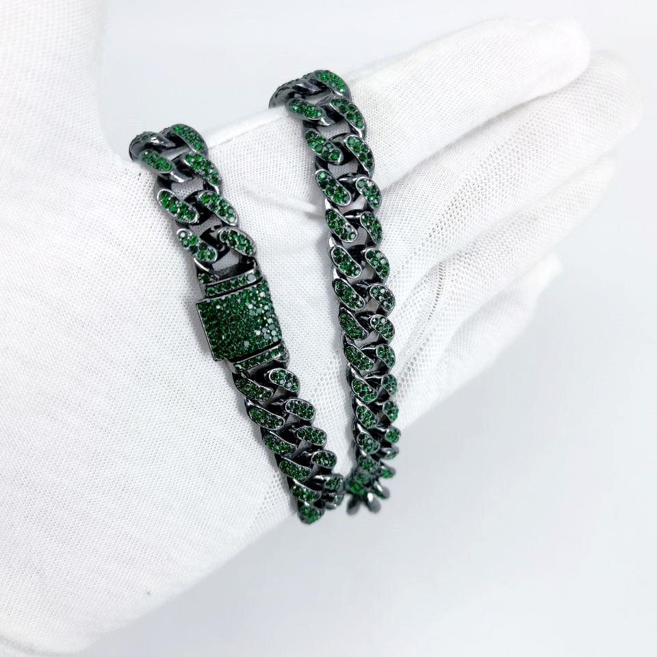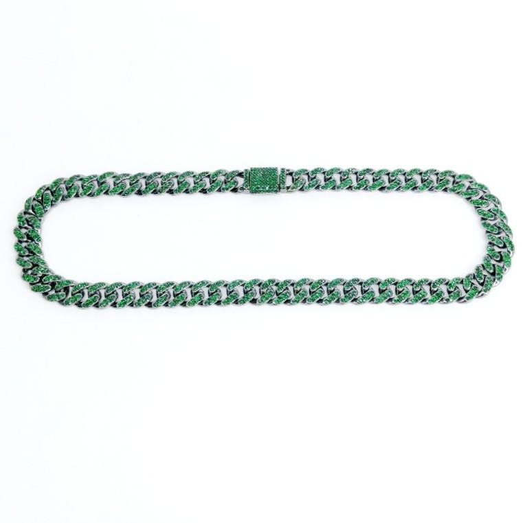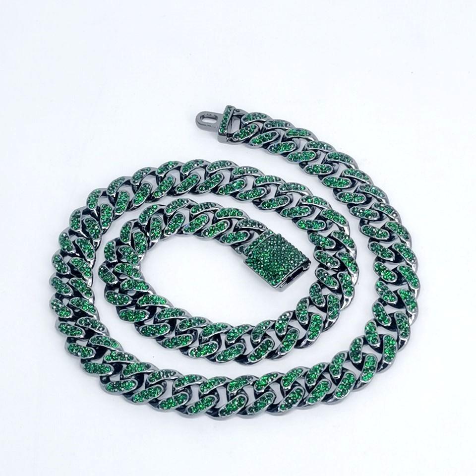 Collar de Aleación para Hombre con Aretes de Esmeralda Redondos de 12 mm Europeos y Americanos, Cabeza Flip, Rap Transfronterizo, Hip Hop, Cadena Cubana