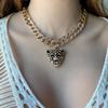 Collar con colgante de cabeza de leopardo y diamantes de imitación, estilo europeo y americano, con cadena cubana, 20360