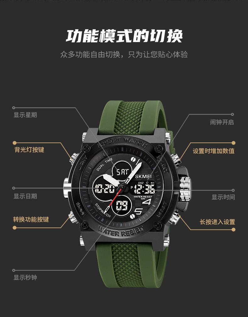 Reloj electrónico Skmei de doble movimiento, nuevo, multifuncional, deportivo, con doble pantalla, informal, para hombre.
