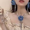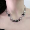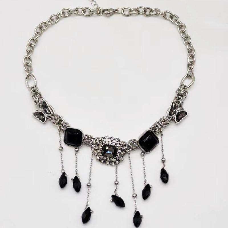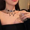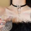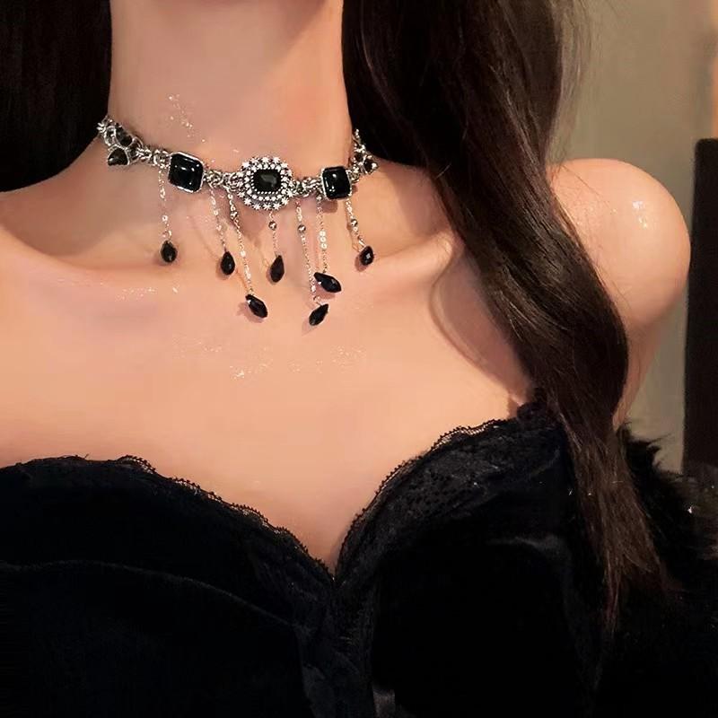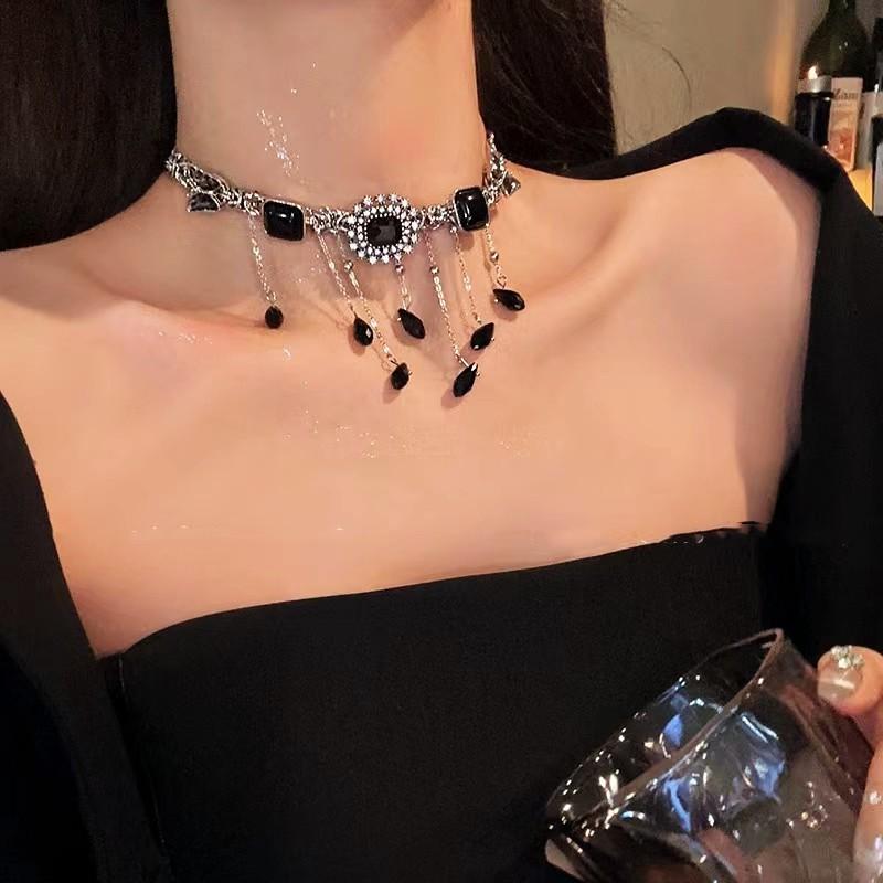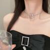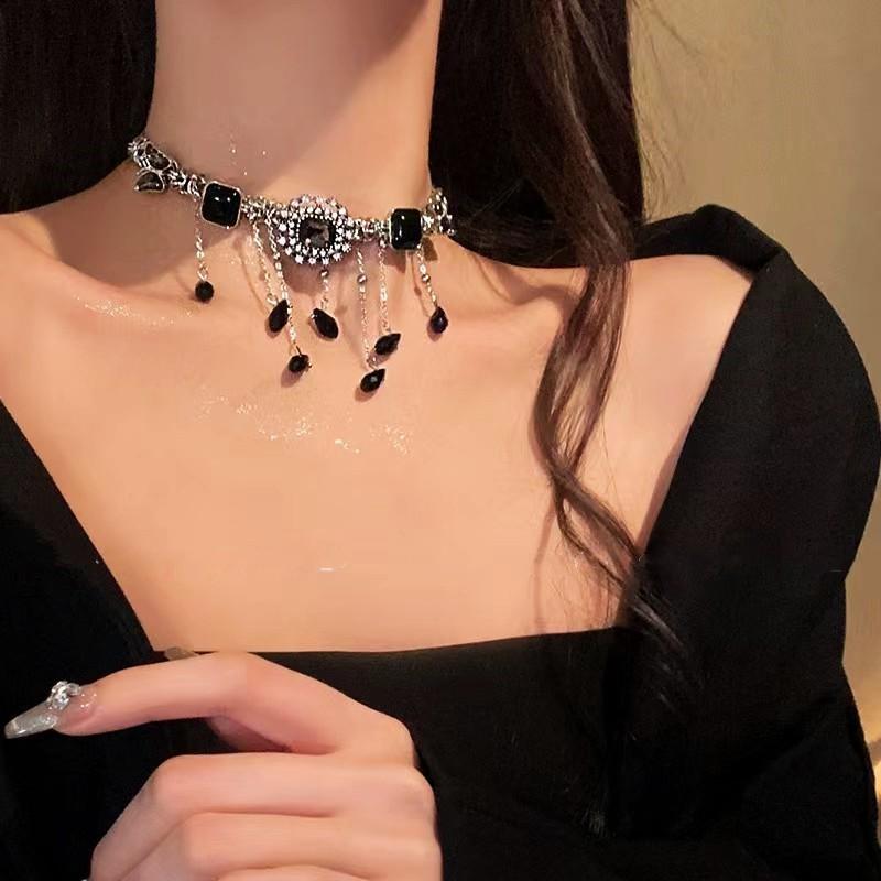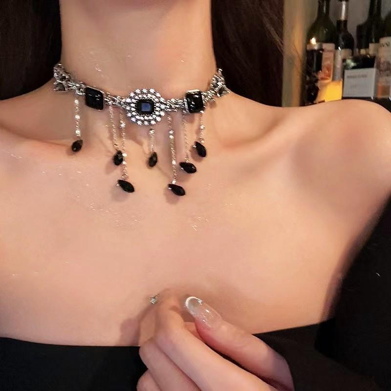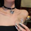 Collar de borla de diamantes de imitación negros con forma de mariposa de alta calidad, ligero y lujoso, con botón cuadrado de diamante, estilo retro, estilo nicho, dulce, moderno y atractivo para chicas.