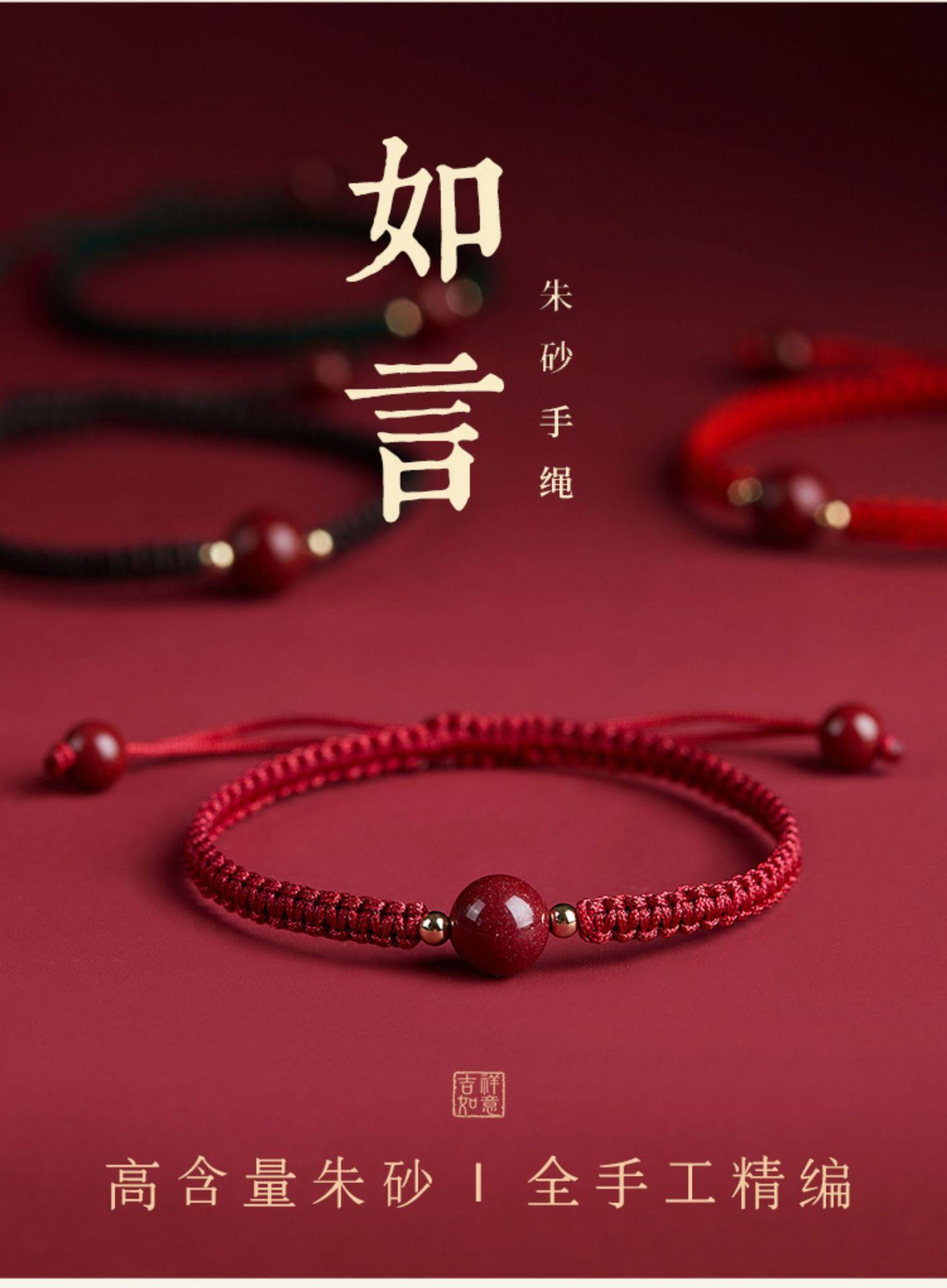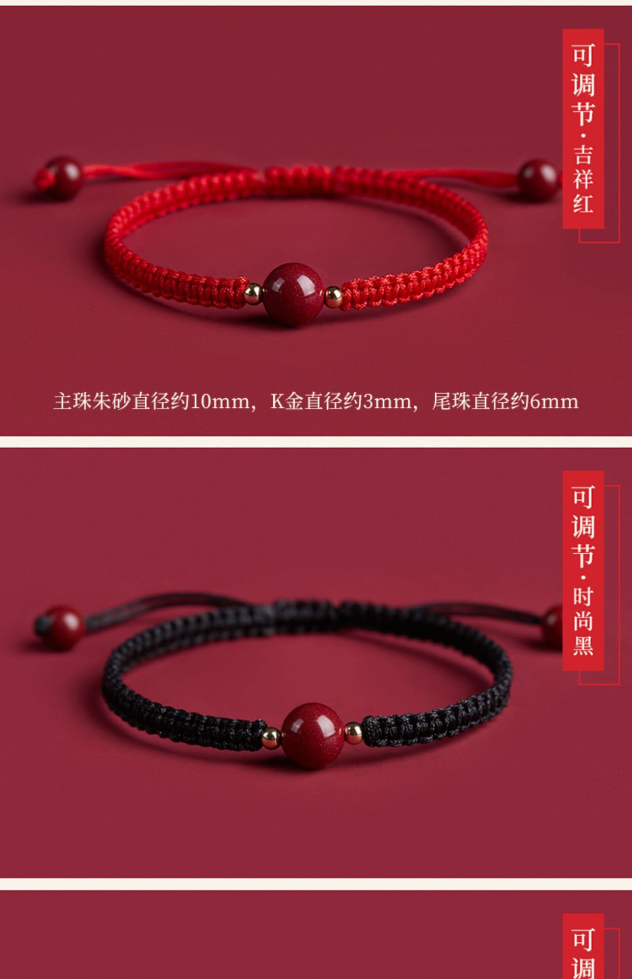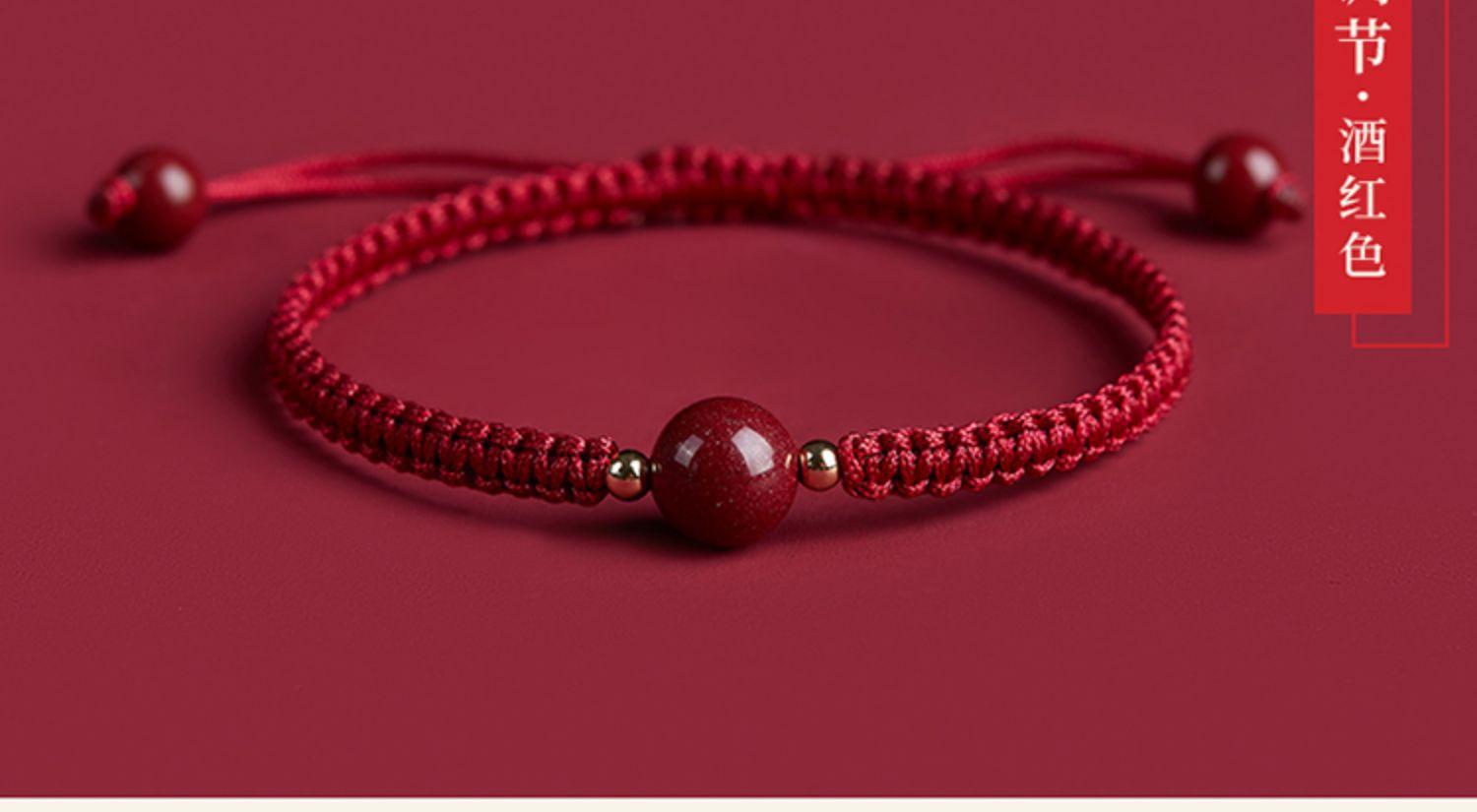 Pulsera de pareja de cuerda roja de arena dorada púrpura, pulsera de año de nacimiento para novias estudiantes, pulsera tejida de cinabrio de alto contenido al por mayor