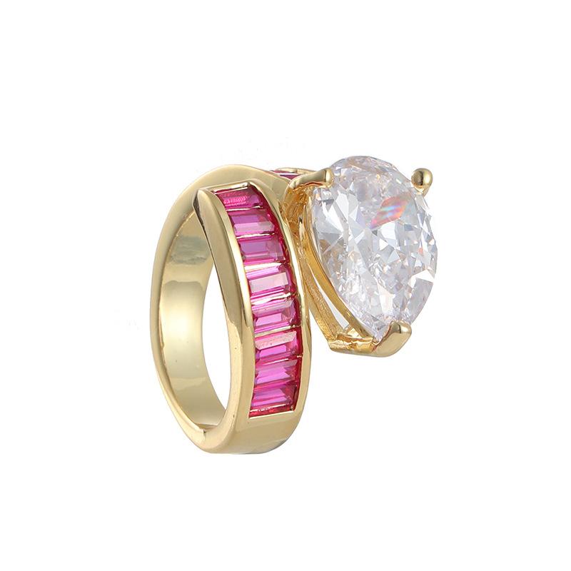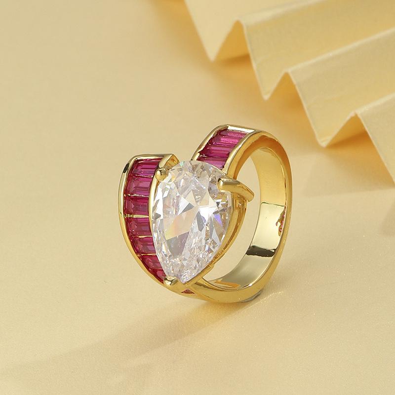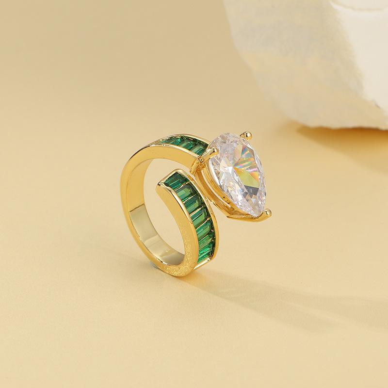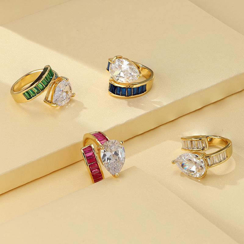 Compra Nueva moda transfronteriza cobre chapado en oro real micro incrustado circón alto color geométrico amor circón anillo abierto al por mayor en Joom.pro