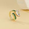 Nueva moda transfronteriza cobre chapado en oro real micro incrustado circón alto color geométrico amor circón anillo abierto