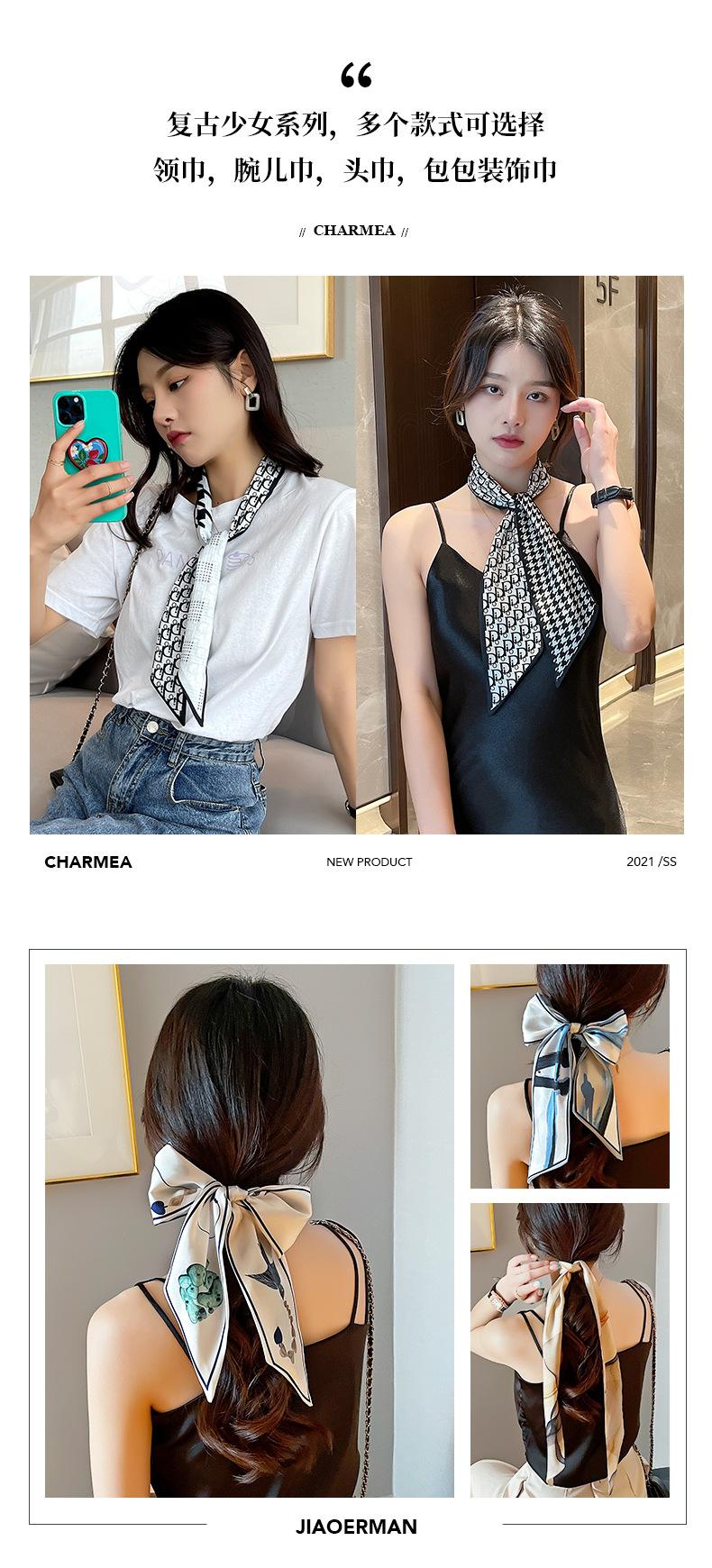 Versión coreana de la bufanda de seda pequeña Joker de primavera para mujer, bufanda de seda con lazo largo para bolso, bufanda de seda europea y americana, venta al por mayor digital