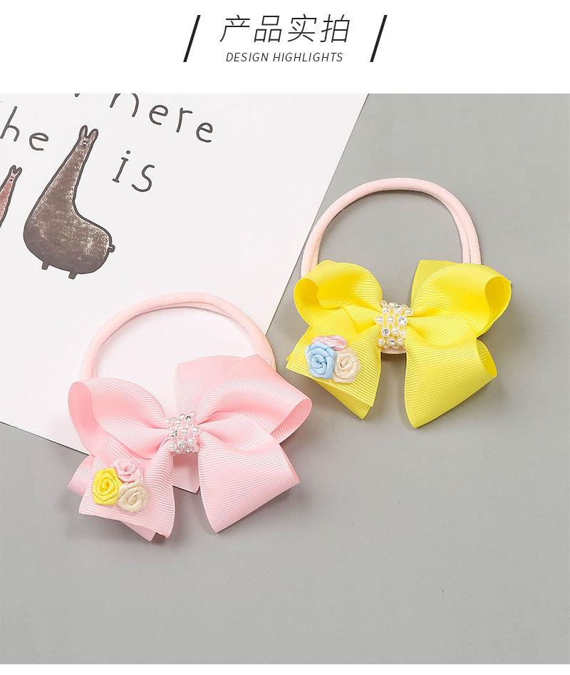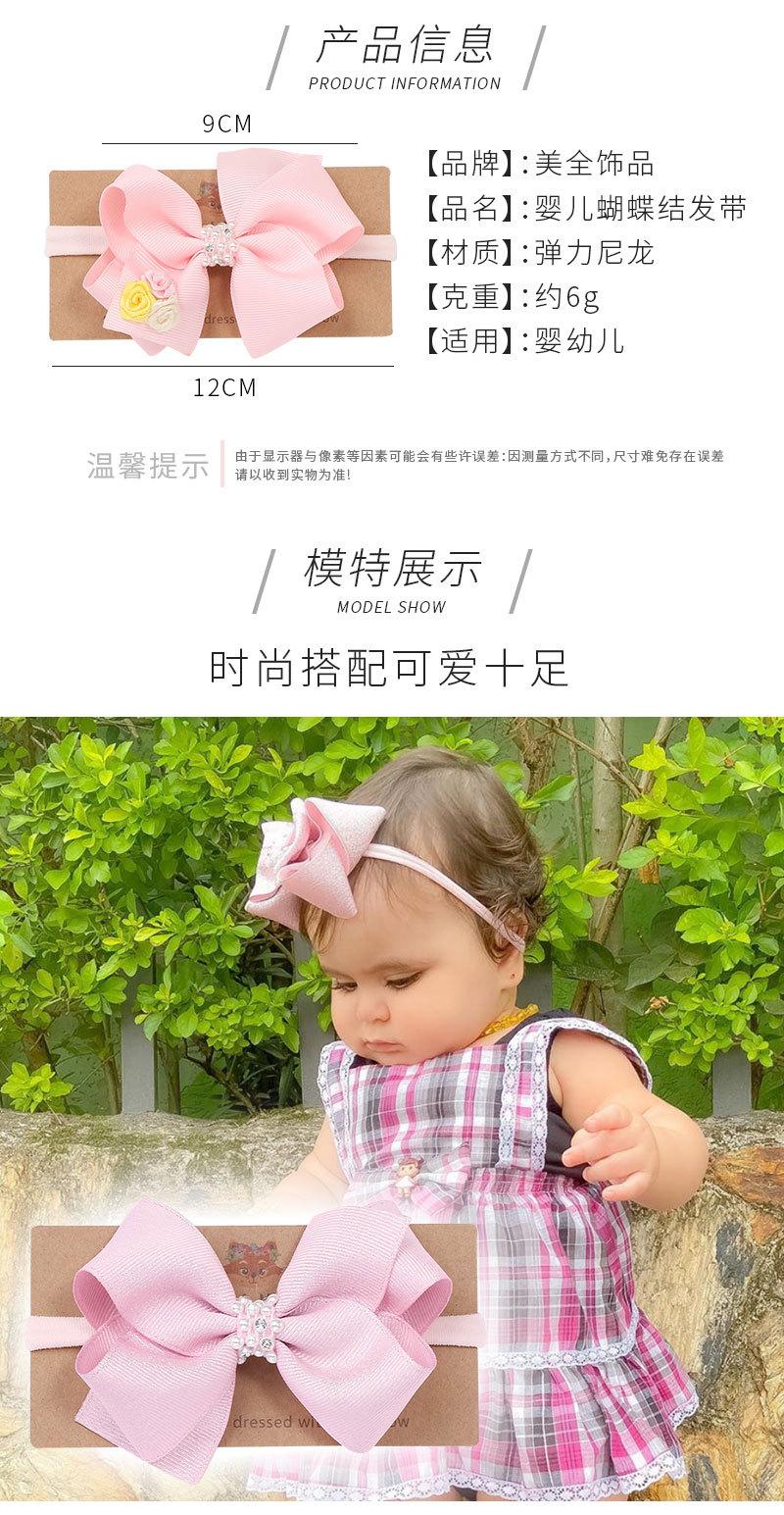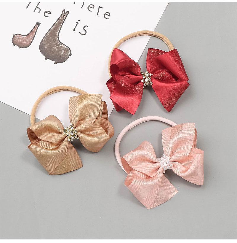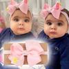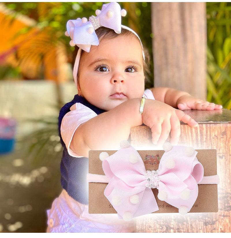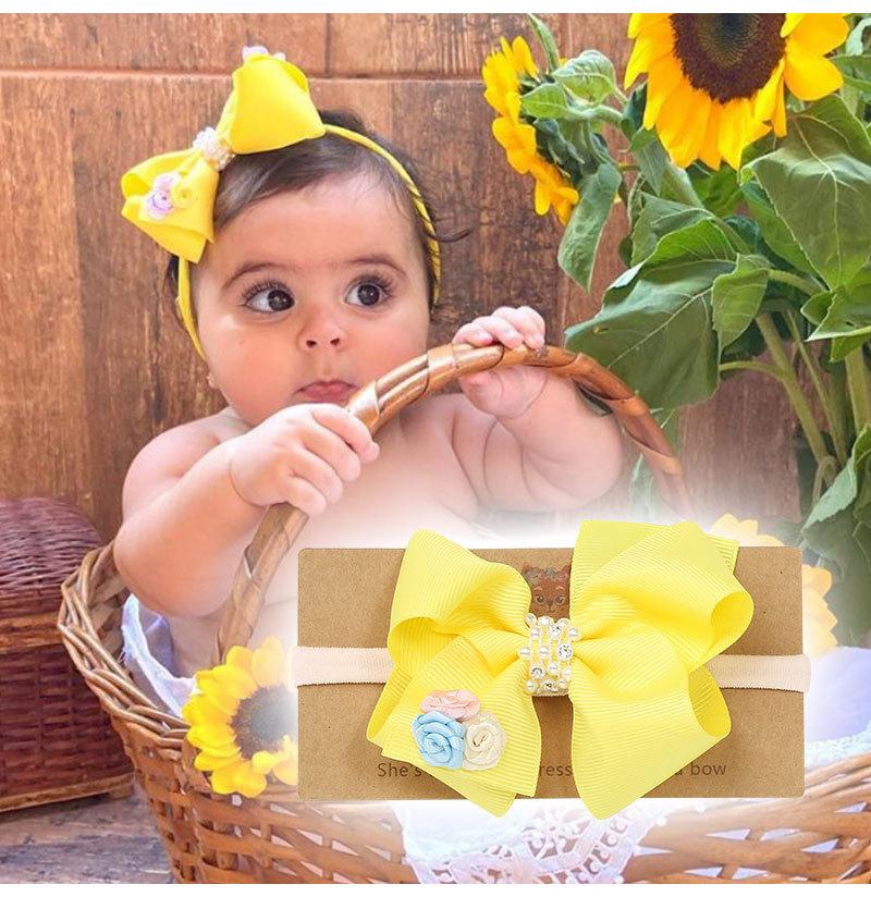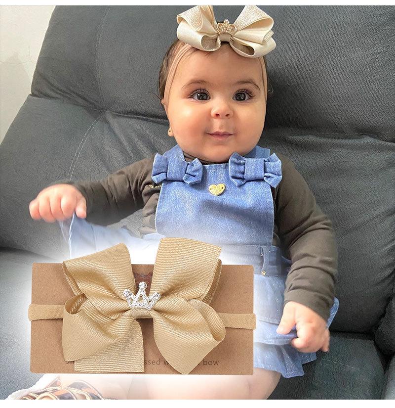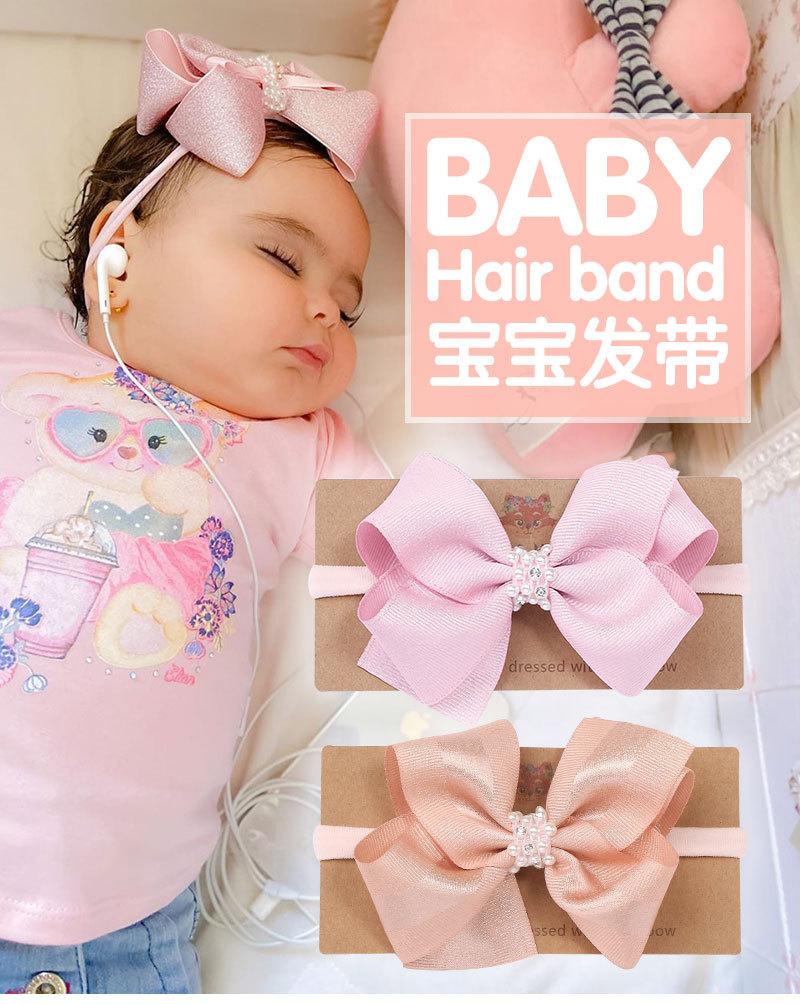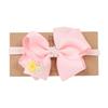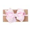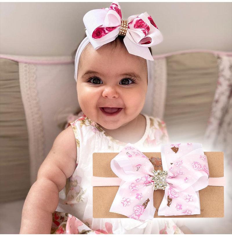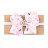 Cinta para el pelo con lazo grande para bebé, corona de cuentas, diadema elástica con flores, accesorios para el cabello para niños con estampado en caliente