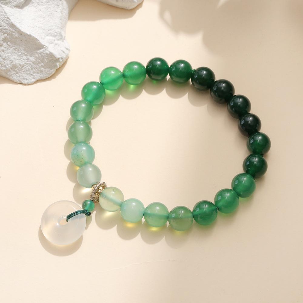 Pulsera de ágata verde degradado para mujer, diseño fresco Mori elegante y sencillo, calcedonia, hebilla de seguridad, pulsera retro
