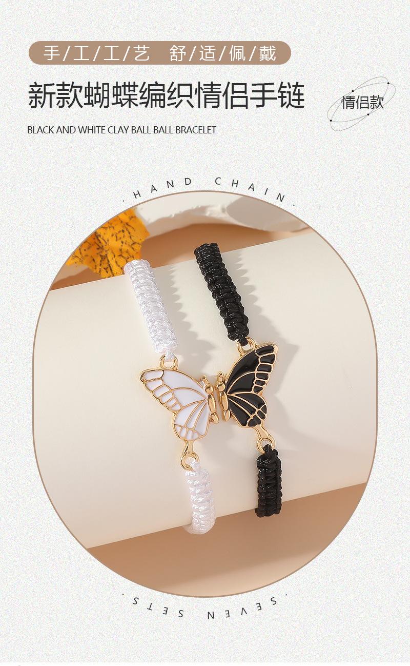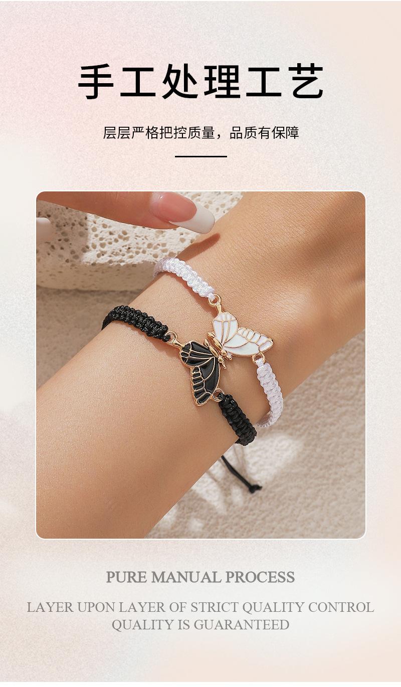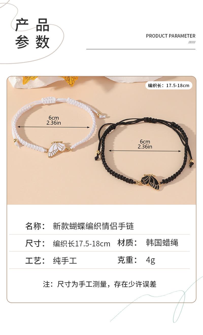 Nueva Pulsera Tejida con Cuerda de Cera de Corea del Sur Hecha a Mano Cuerda Tejida Mariposa Pulsera de Pareja Temperamento Simple Regalo para Novia