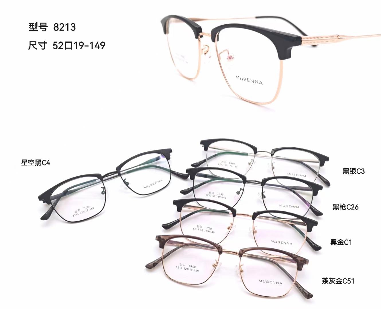 Montura de gafas estilo coreano informal de moda TR90 con diseño de cejas anchas, estilo retro clásico 8213
