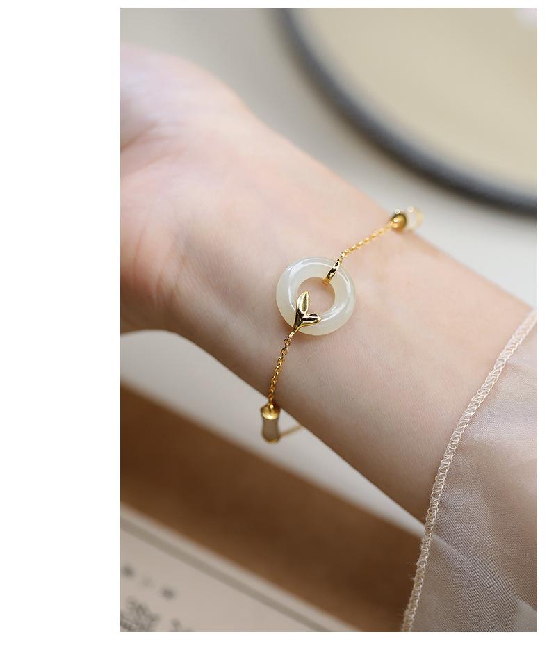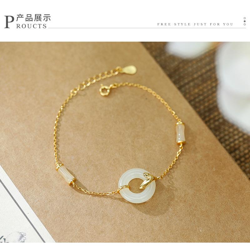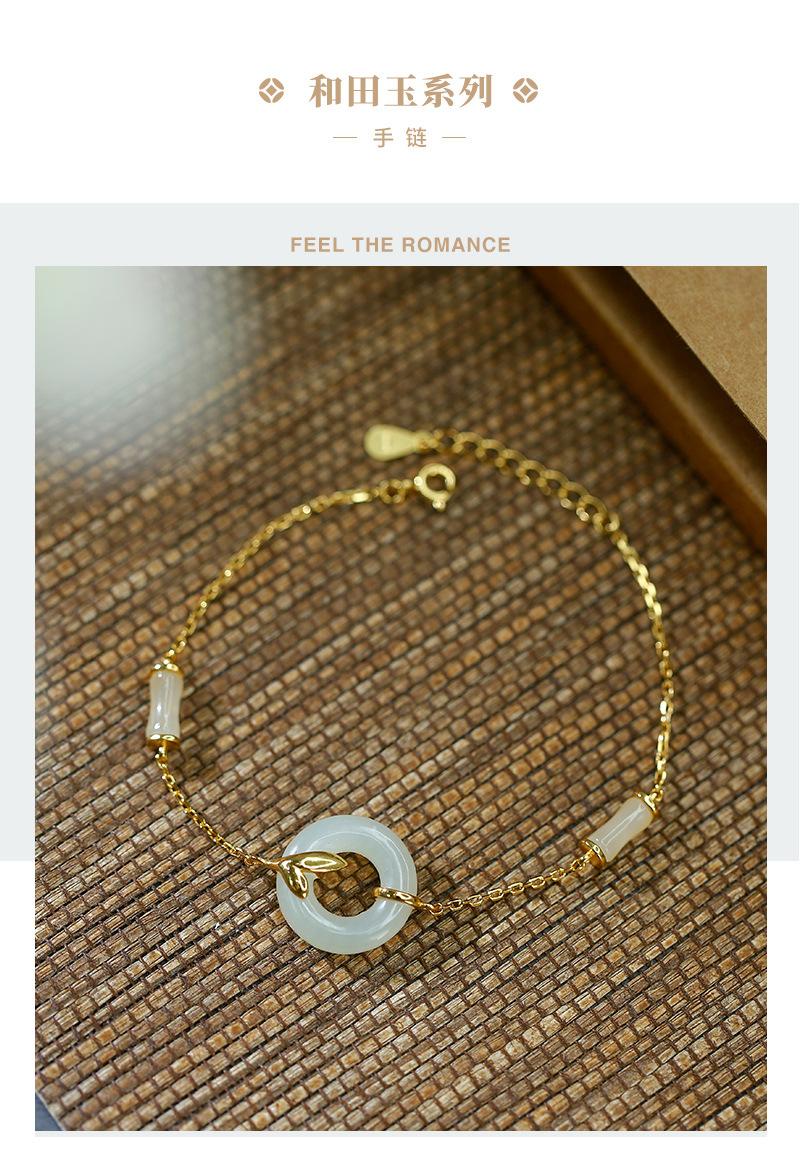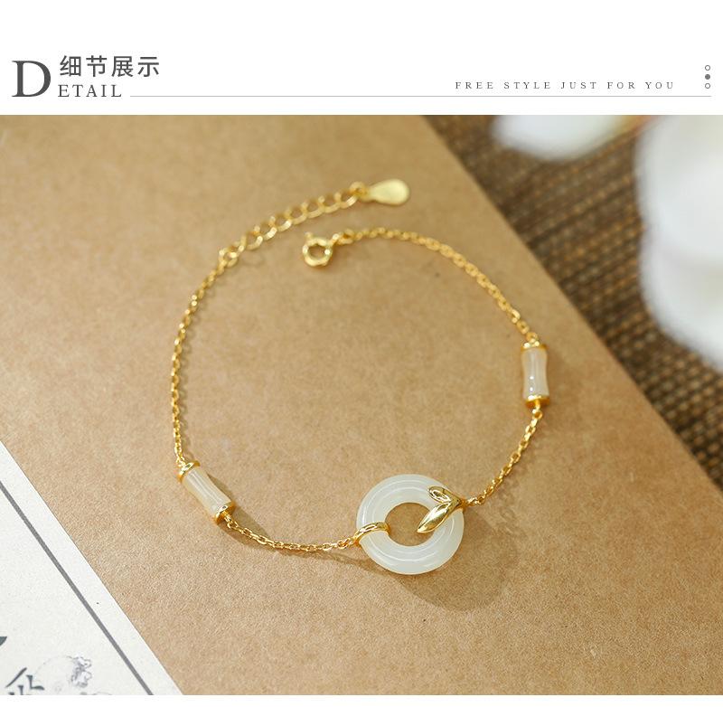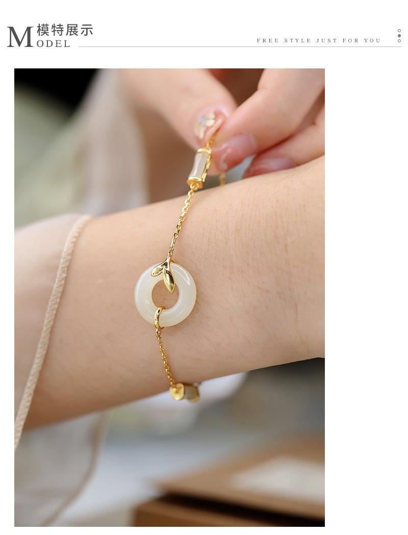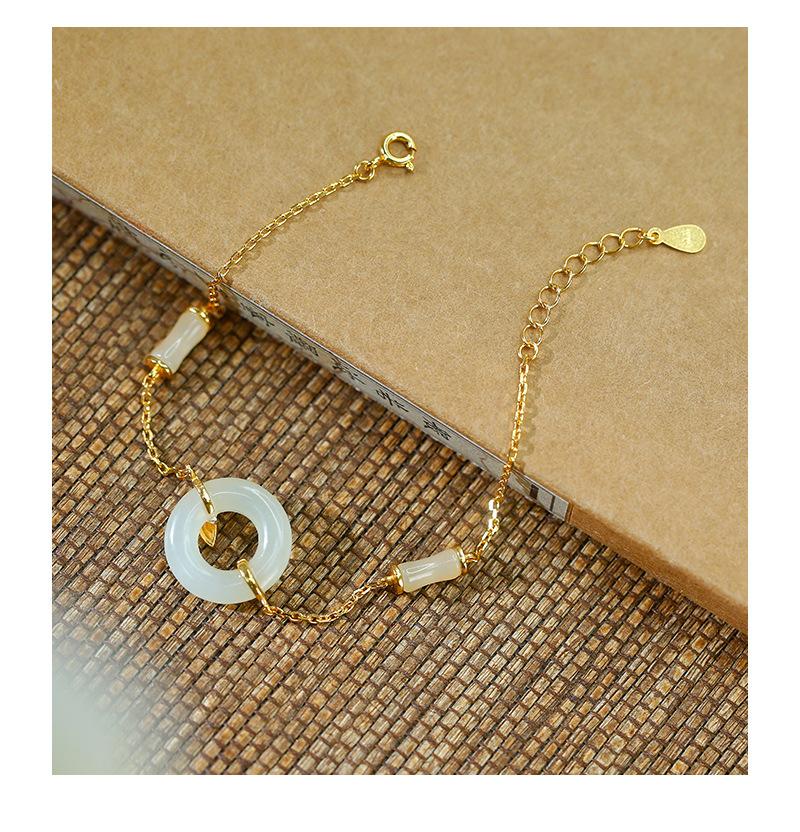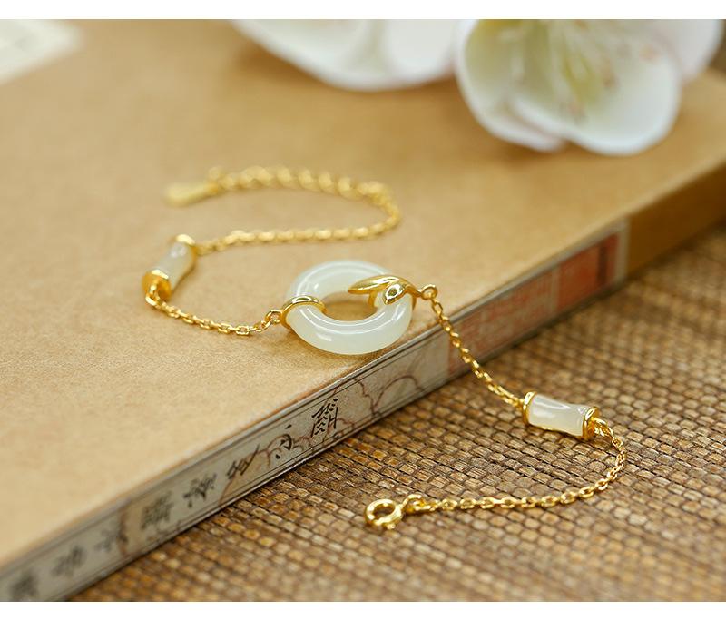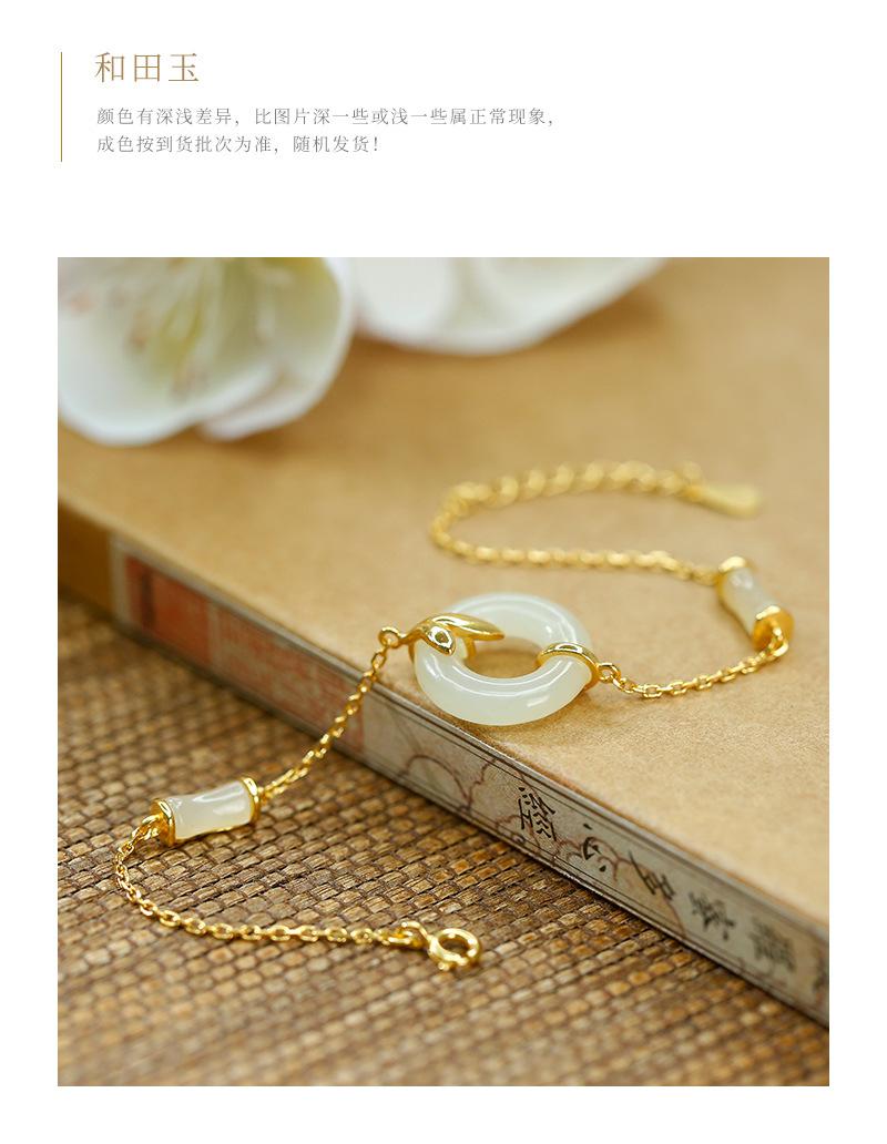 Pulsera con hebilla de seguridad de jade hetiano bañada en oro y plata S925, exquisita y sencilla, estilo chino antiguo, estilo hanfu, moda nacional, belleza oriental