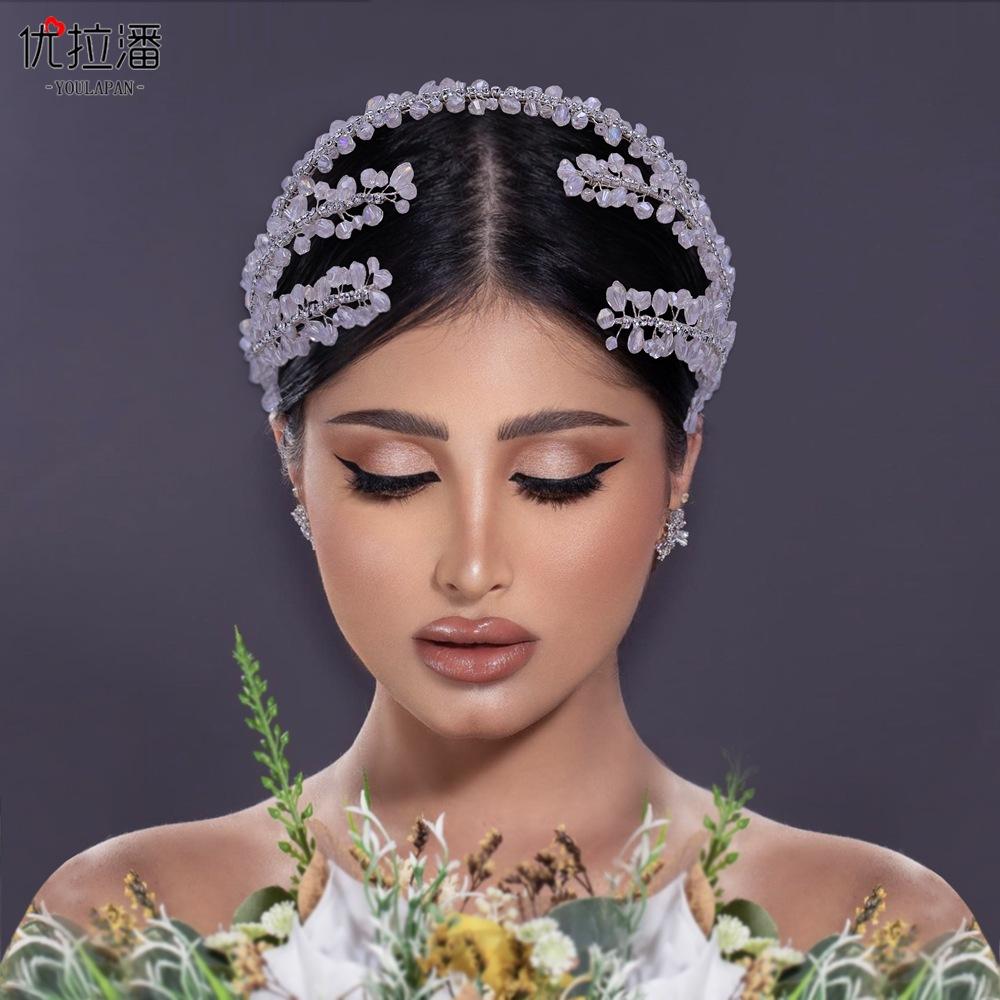 Compra Youlapan Hp382 Tiara Nupcial Estilo Bosque Accesorios para Vestido de Novia Diadema de Cristal Hecha a Mano Forma Recortada Europea y Americana al por mayor en Joom.pro