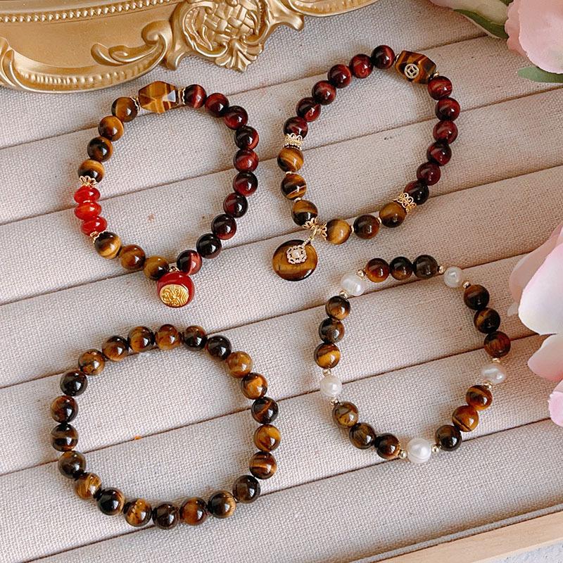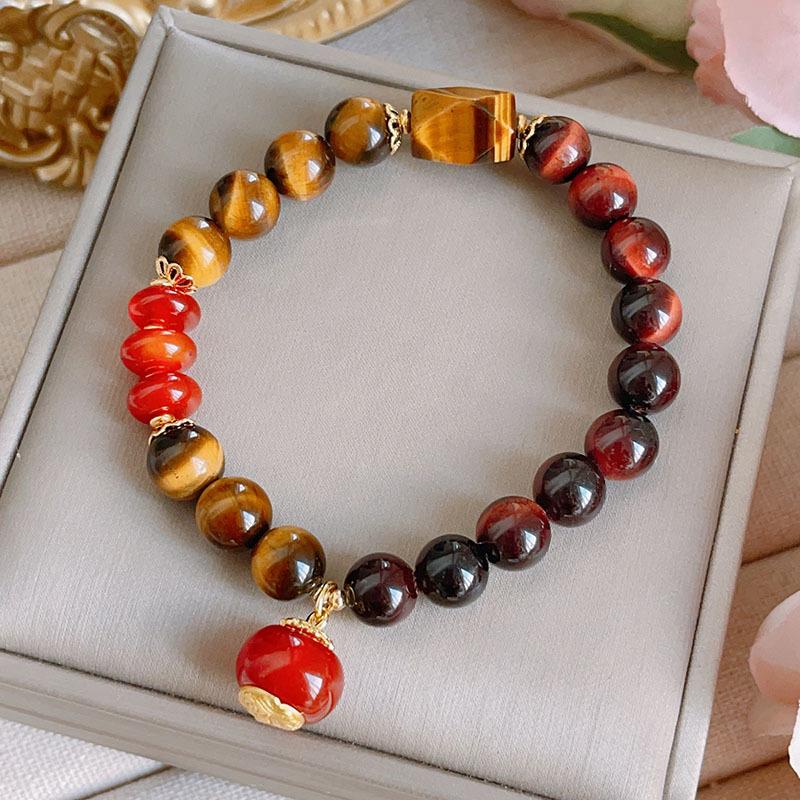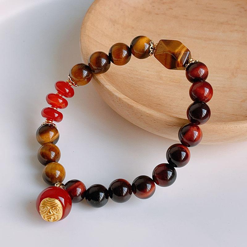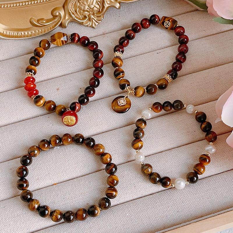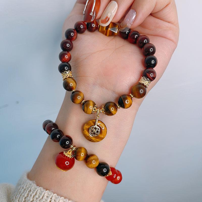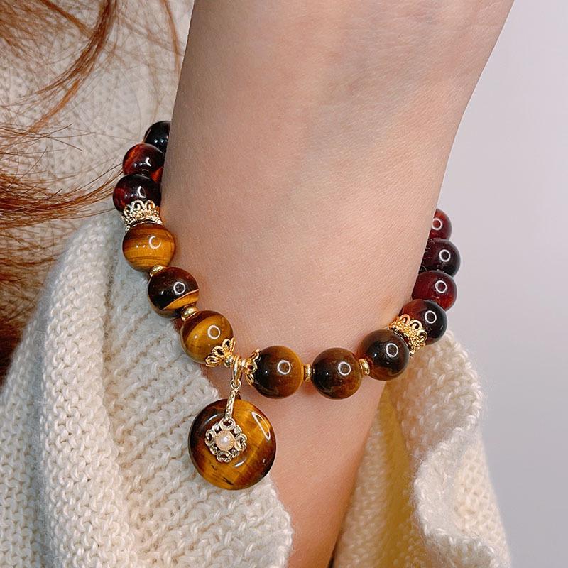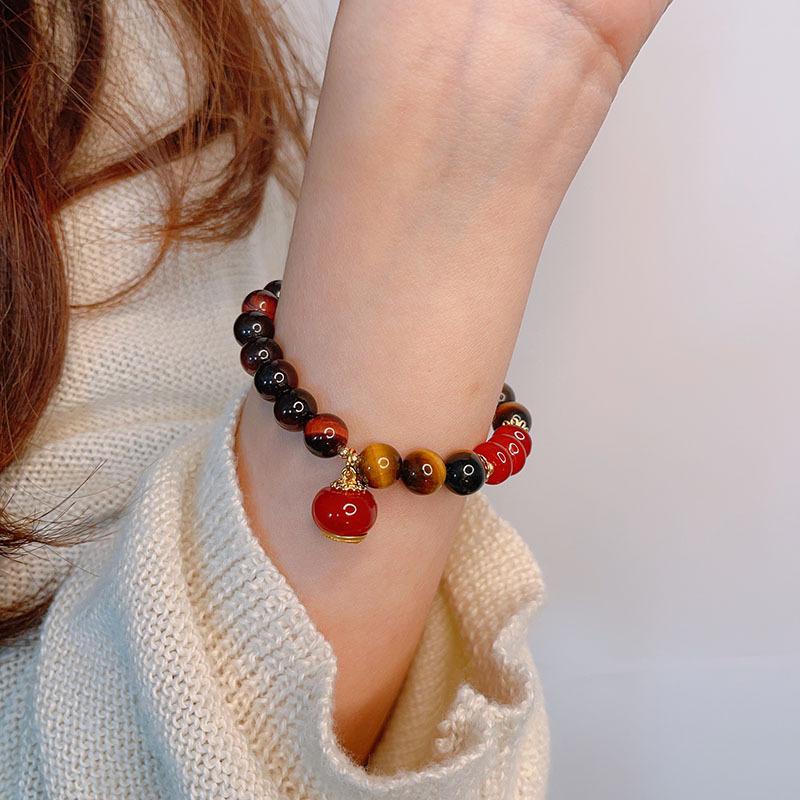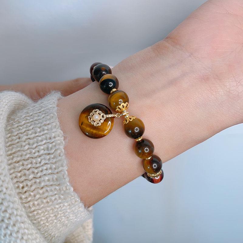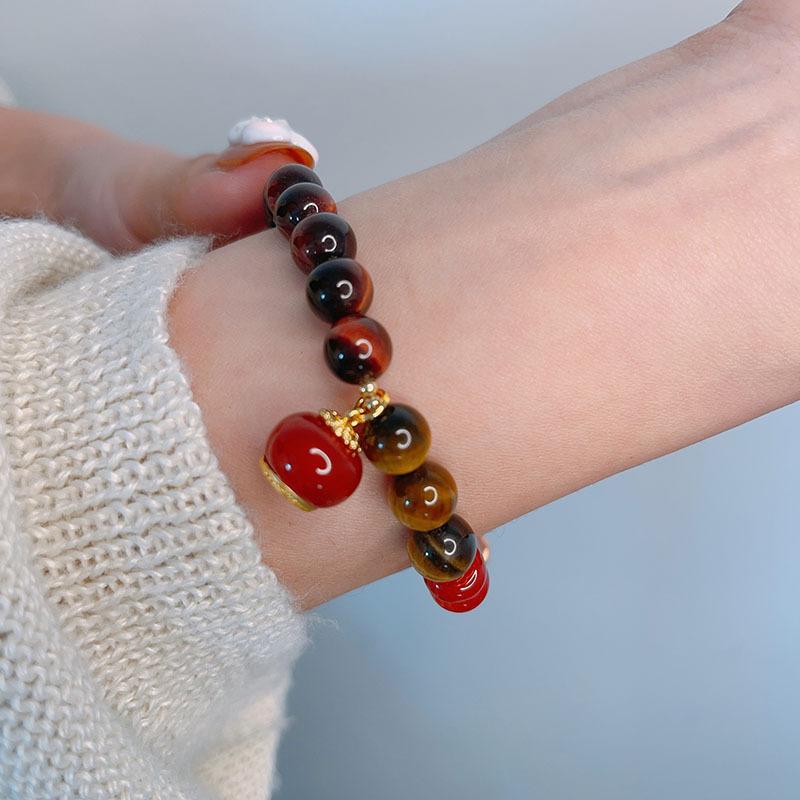 Pulsera de piedra Ojo de Tigre natural estilo celebridad en línea retro simple hebilla de seguridad colgante de manzana pulsera anillo liso pulsera