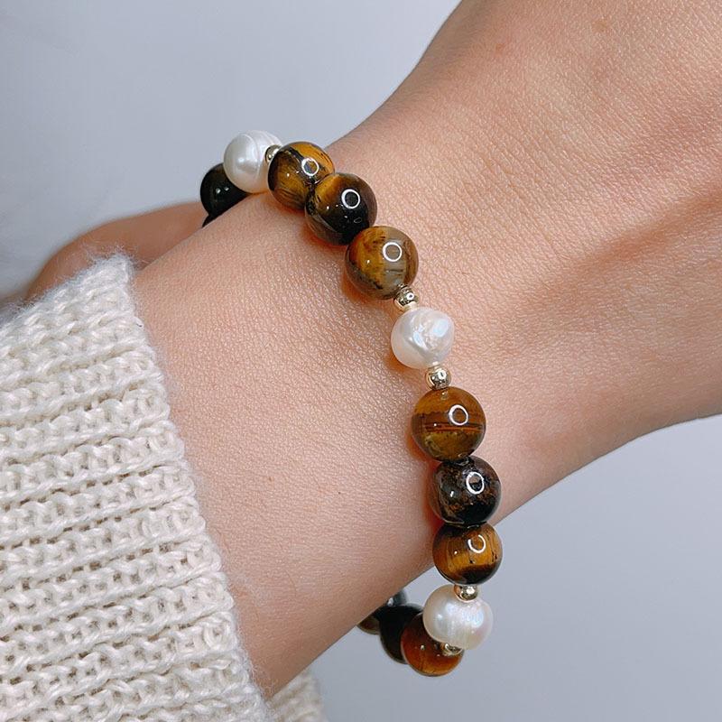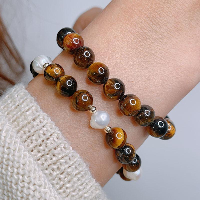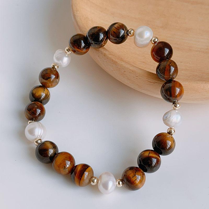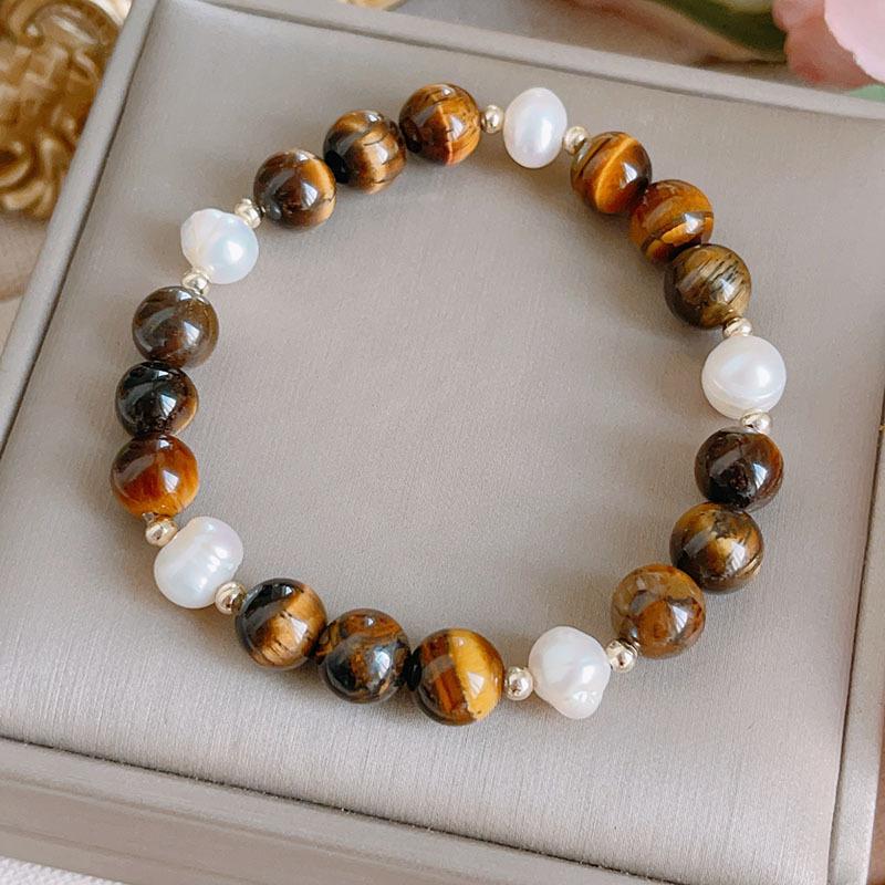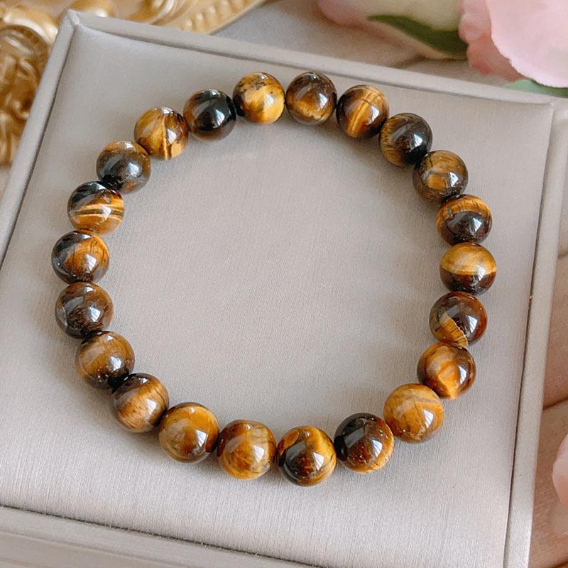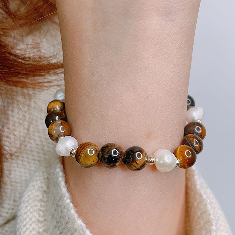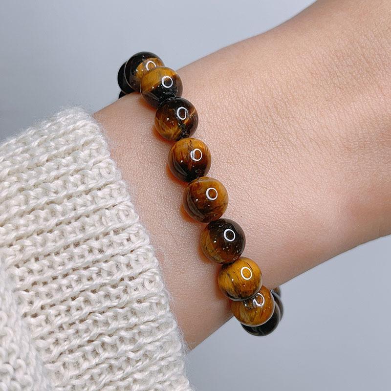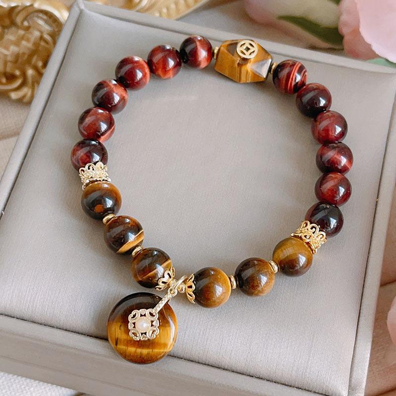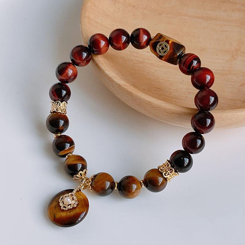 Pulsera de piedra Ojo de Tigre natural estilo celebridad en línea retro simple hebilla de seguridad colgante de manzana pulsera anillo liso pulsera