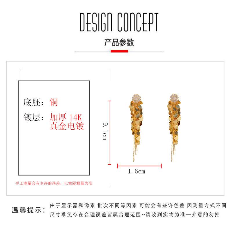 Gold-zircon flower metal sequins tassel (thick gold plating)