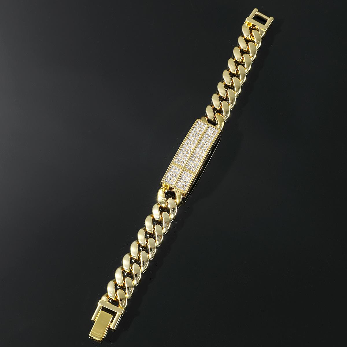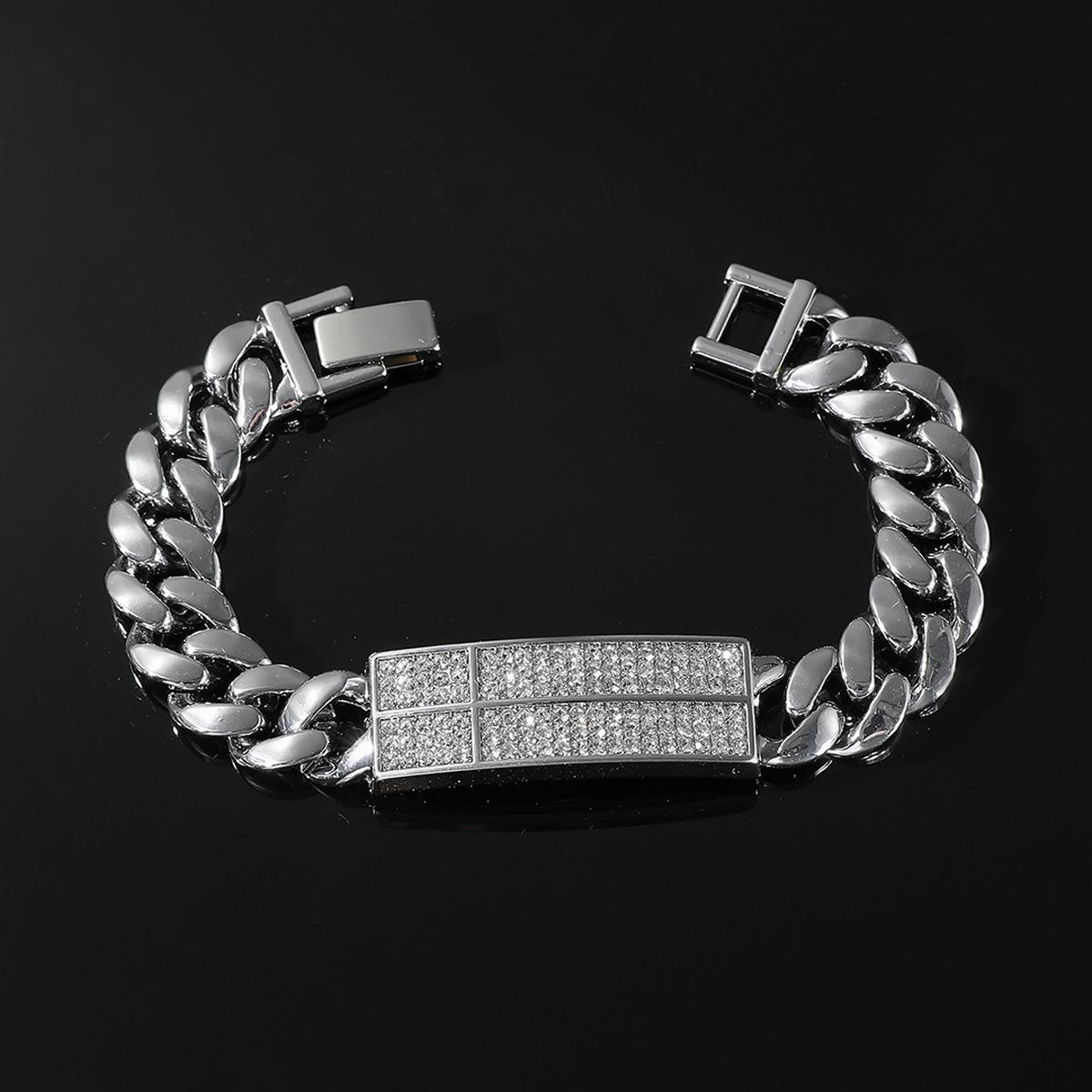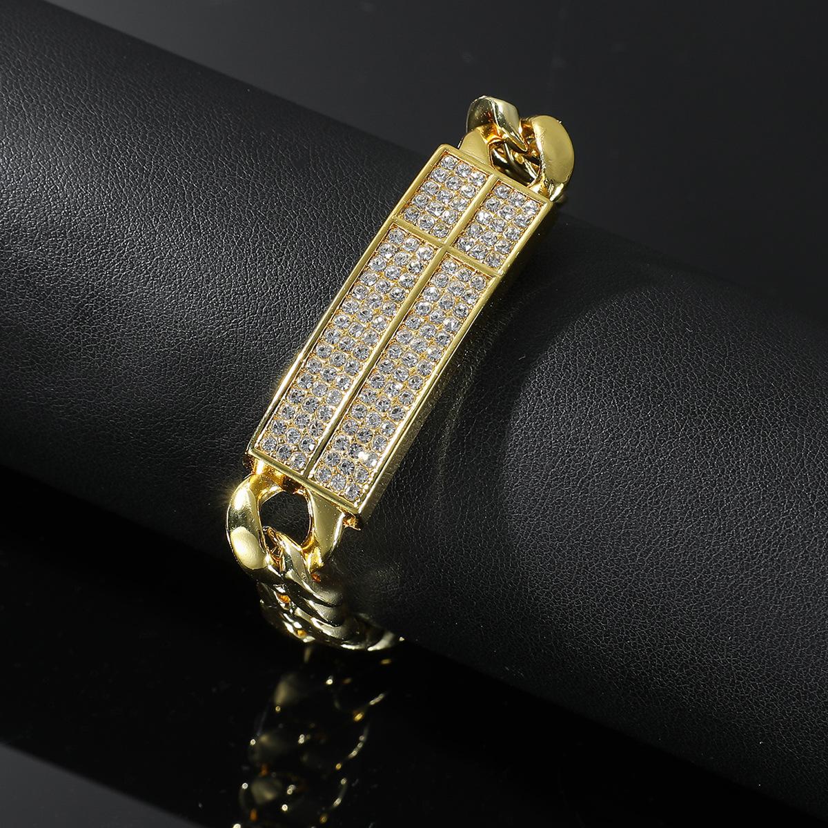 | Pulsera de hombre con forma de barra de diamantes, cadena cubana de hip-hop de gran venta en Europa y América, accesorios de moda hip-hop de 15 mm de ancho. |